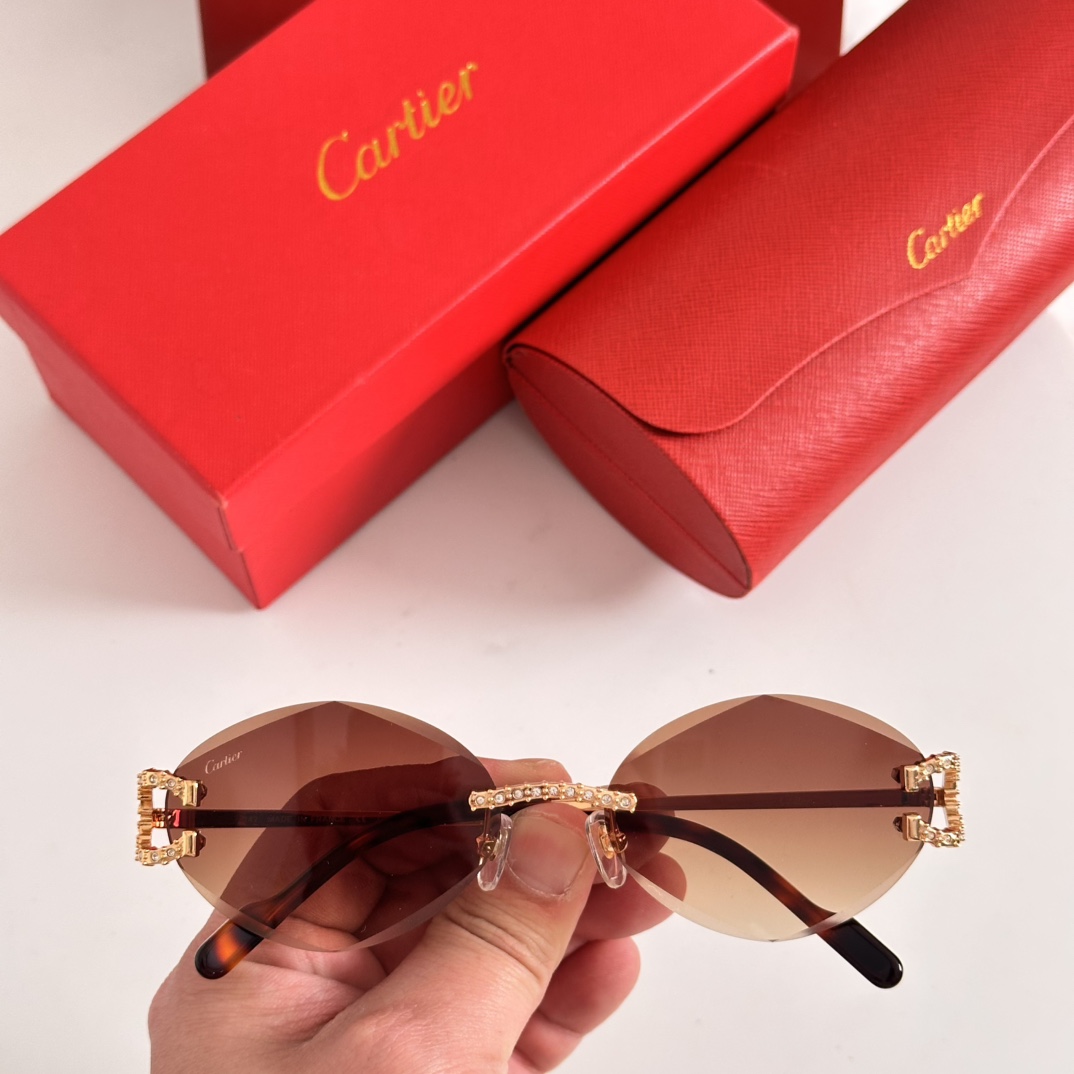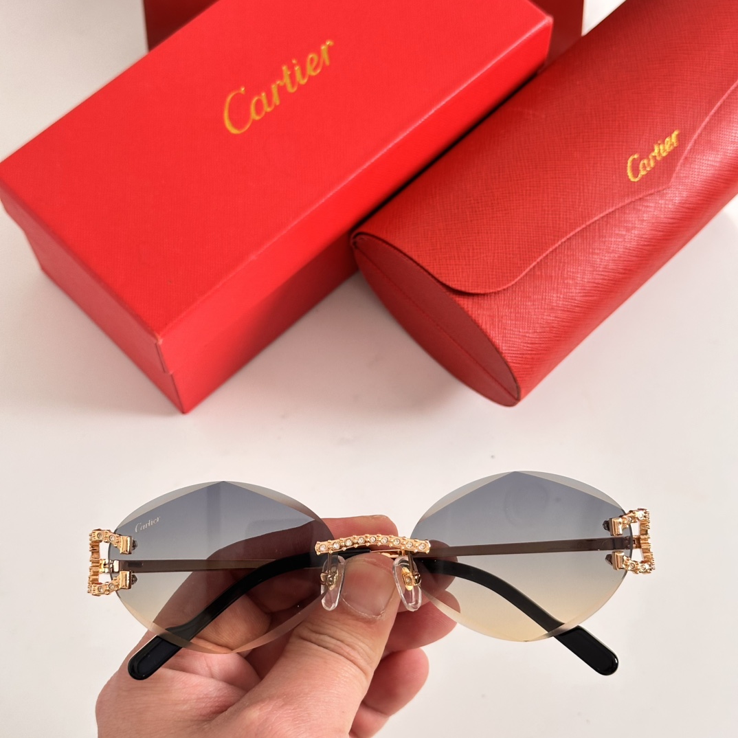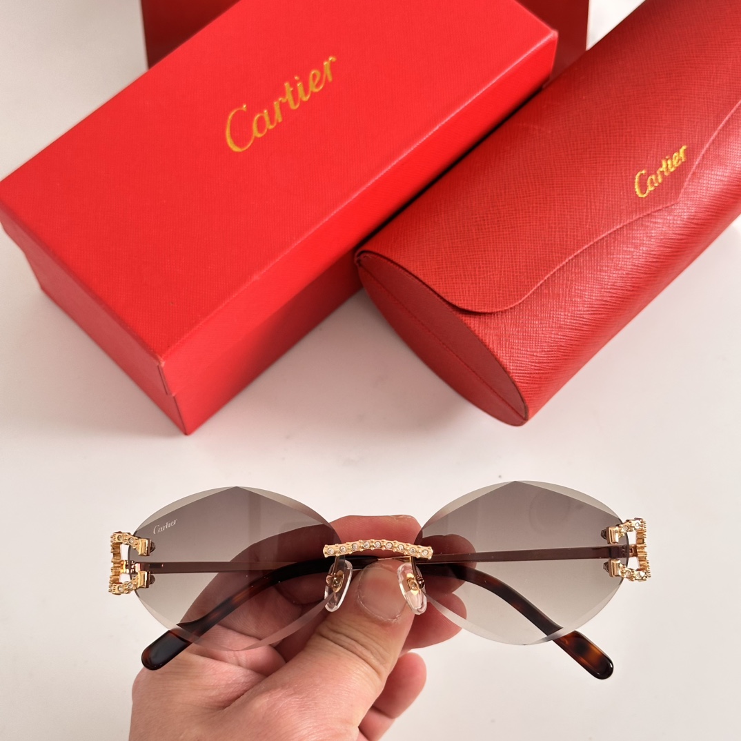 这款太阳眼镜是AAAAA 1:1 质量 (非常棒). 使用了和原版一模一样的材料. 商标部分也保持了和卡地亚/Cartier一样. 图片拍摄是实物太阳眼镜拍摄, 您所收到的实物保证和我们图片一模一样.