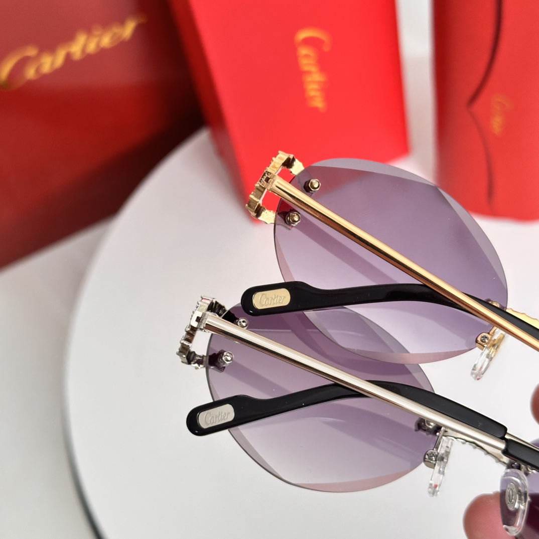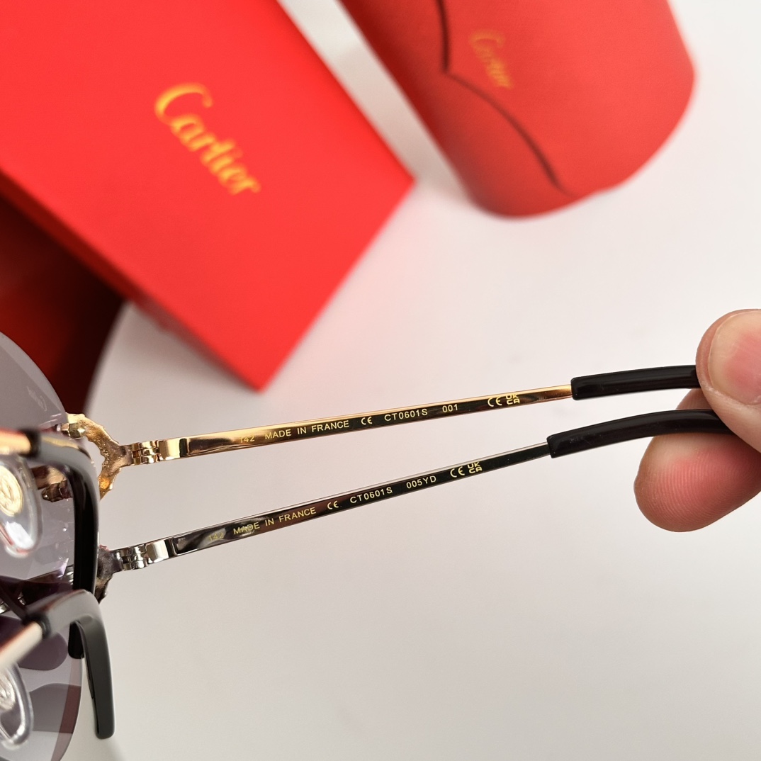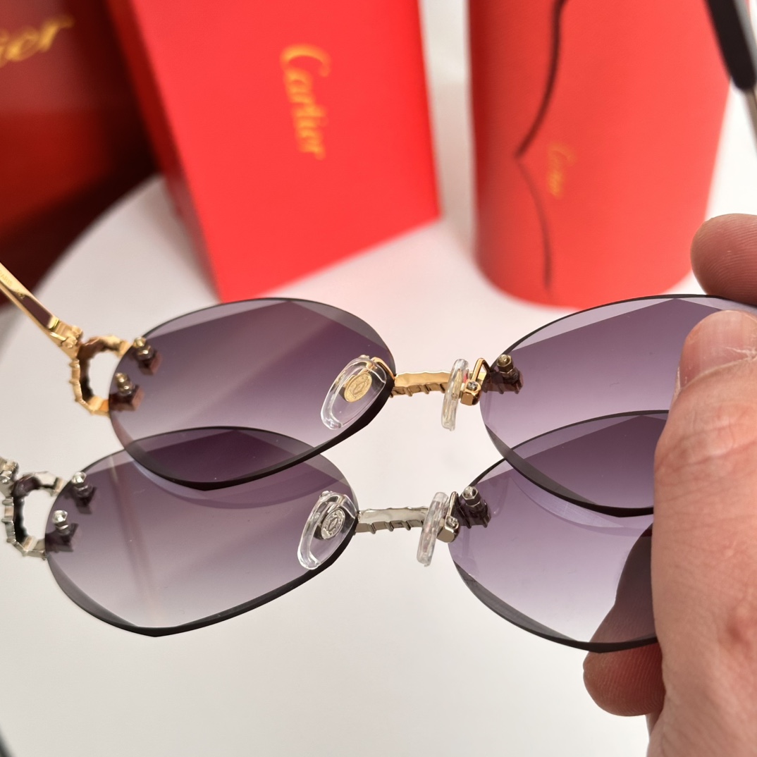 这款太阳眼镜是AAAAA 1:1 质量 (非常棒). 使用了和原版一模一样的材料. 商标部分也保持了和卡地亚/Cartier一样. 图片拍摄是实物太阳眼镜拍摄, 您所收到的实物保证和我们图片一模一样.