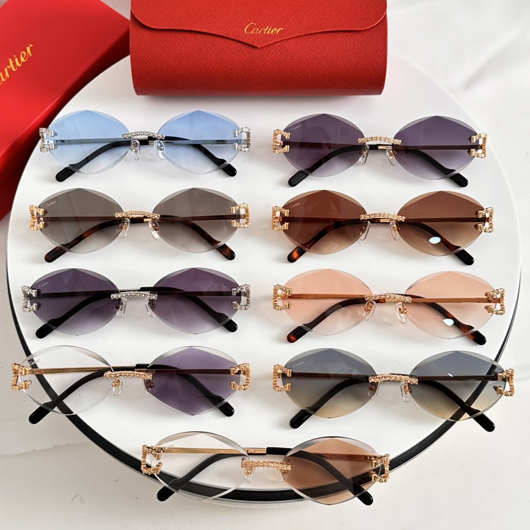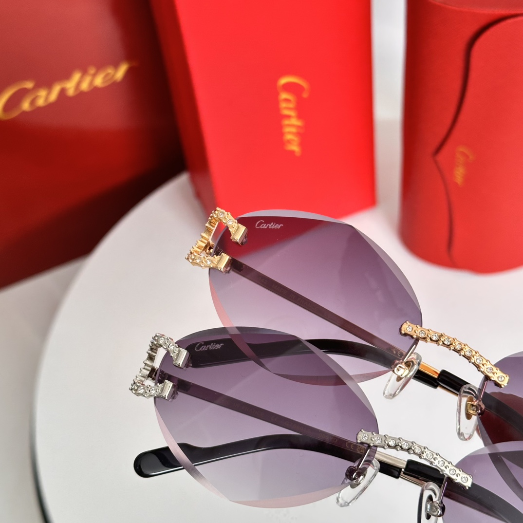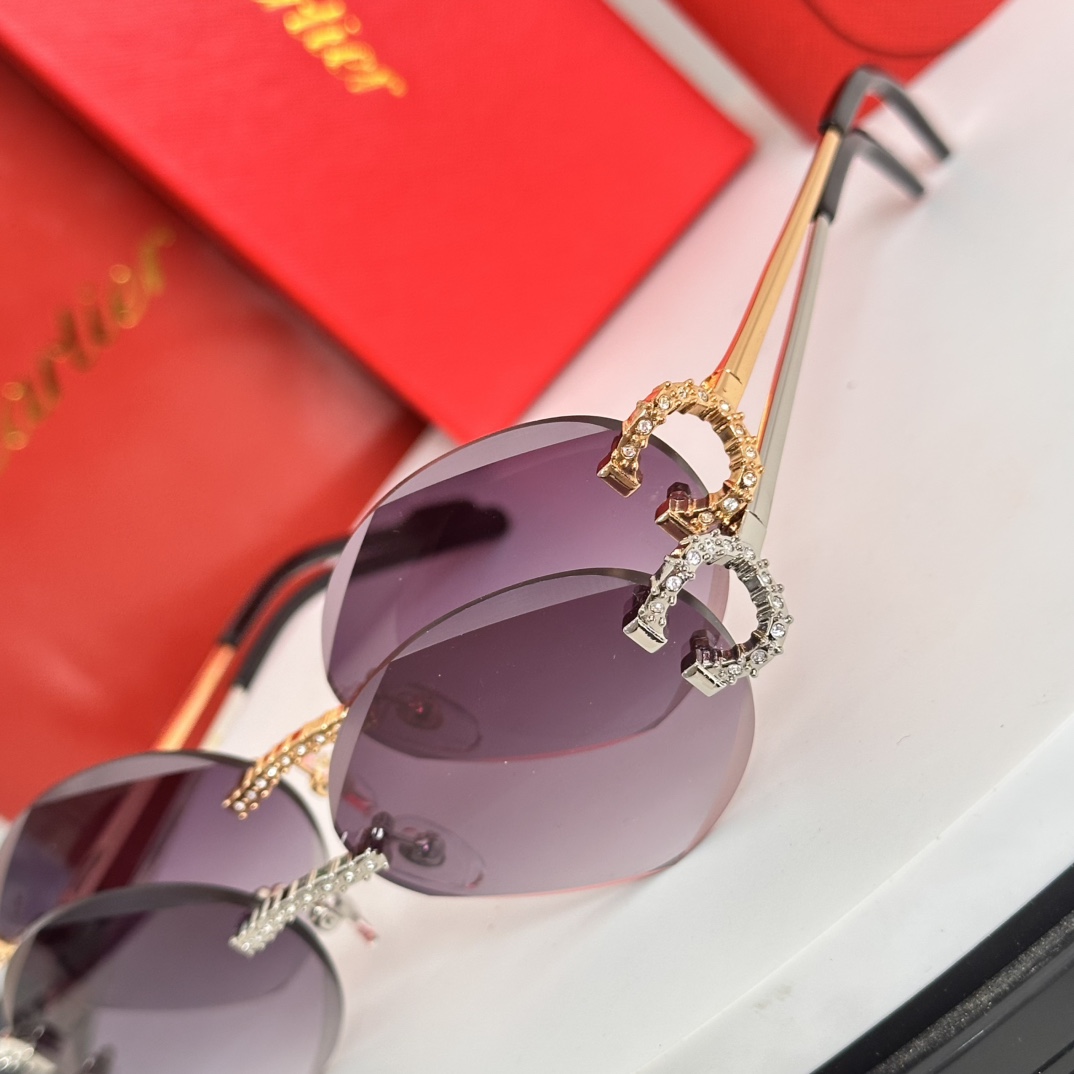 这款太阳眼镜是AAAAA 1:1 质量 (非常棒). 使用了和原版一模一样的材料. 商标部分也保持了和卡地亚/Cartier一样. 图片拍摄是实物太阳眼镜拍摄, 您所收到的实物保证和我们图片一模一样.