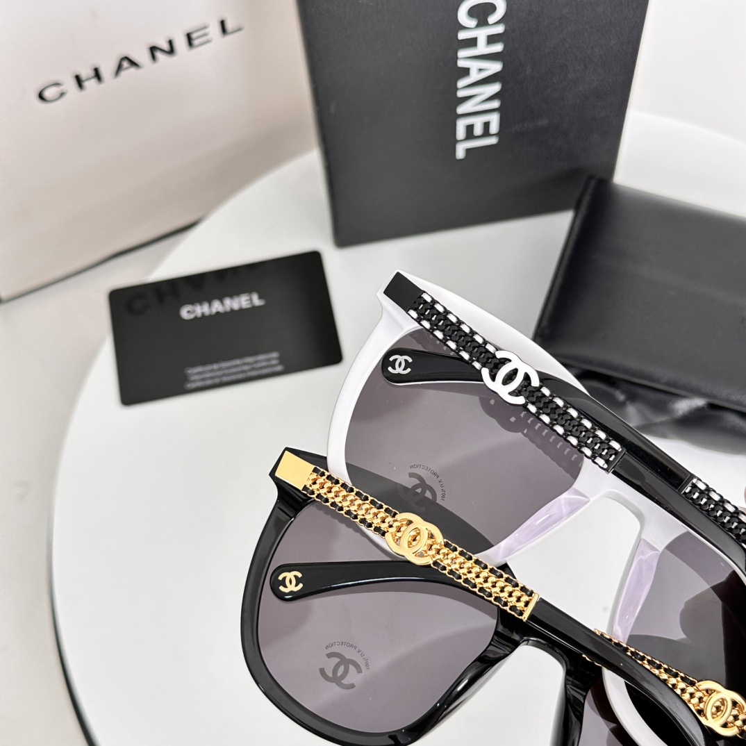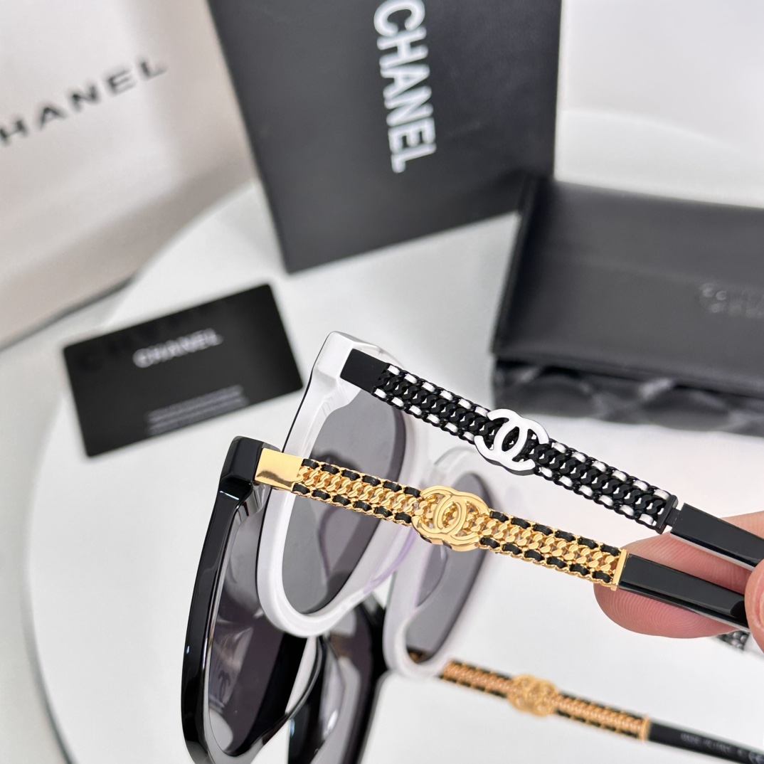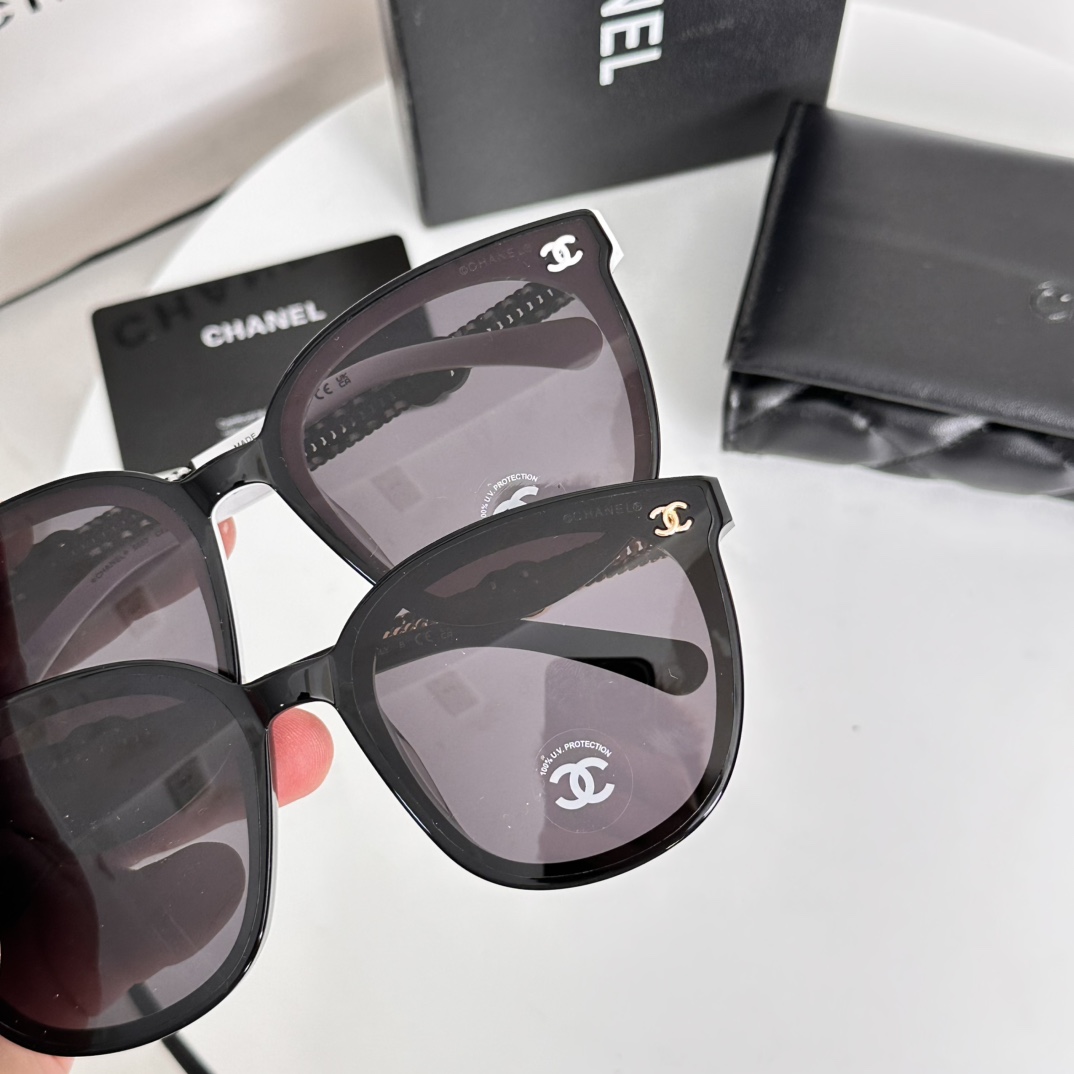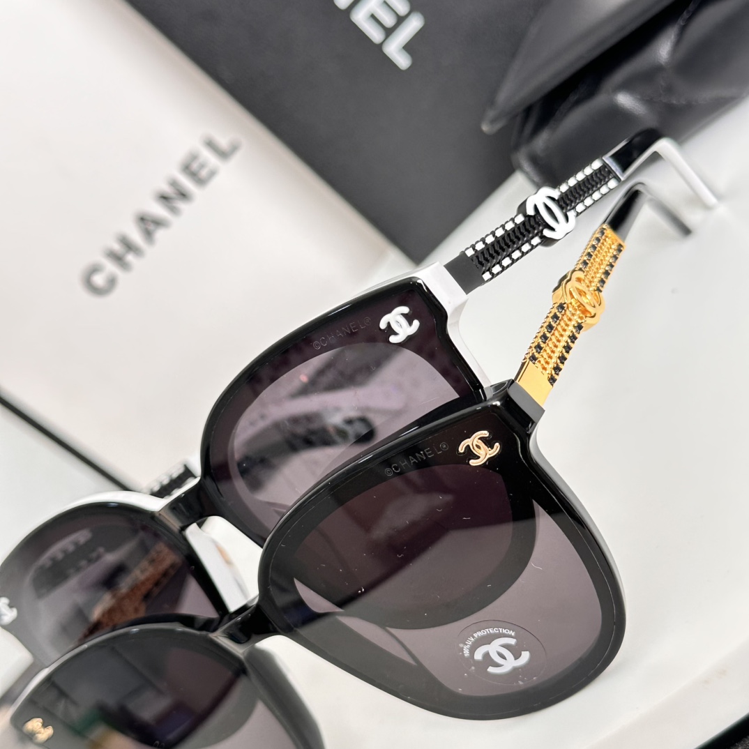 这款太阳眼镜是AAAAA 1:1 质量 (非常棒). 使用了和原版一模一样的材料. 商标部分也保持了和香奈儿/Chanel一样. 图片拍摄是实物太阳眼镜拍摄, 您所收到的实物保证和我们图片一模一样.