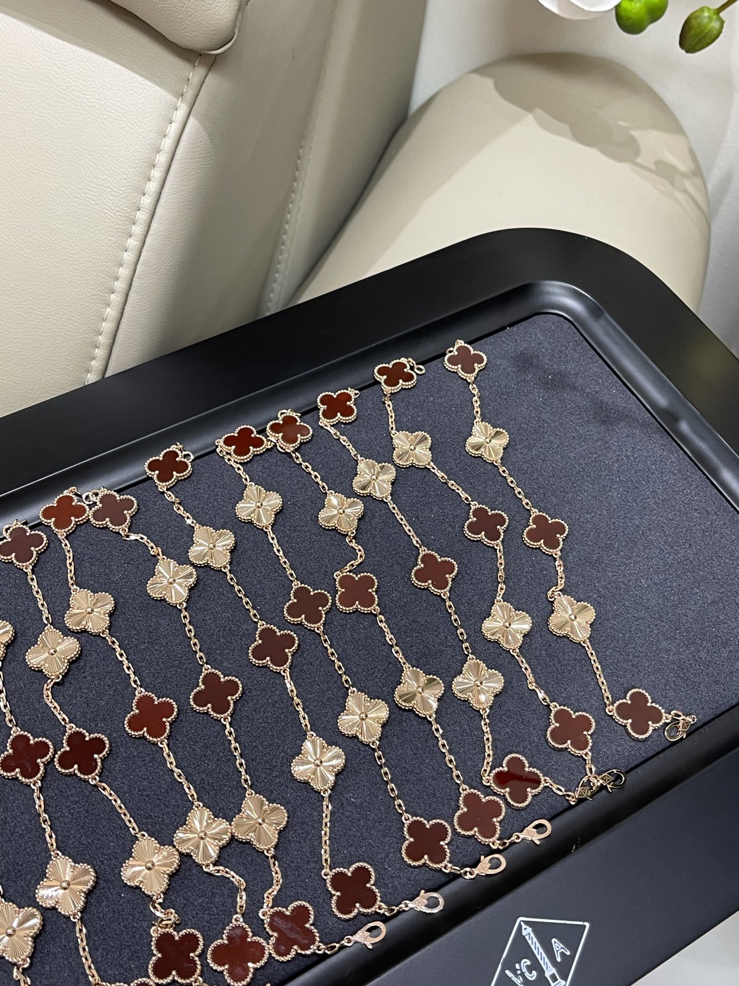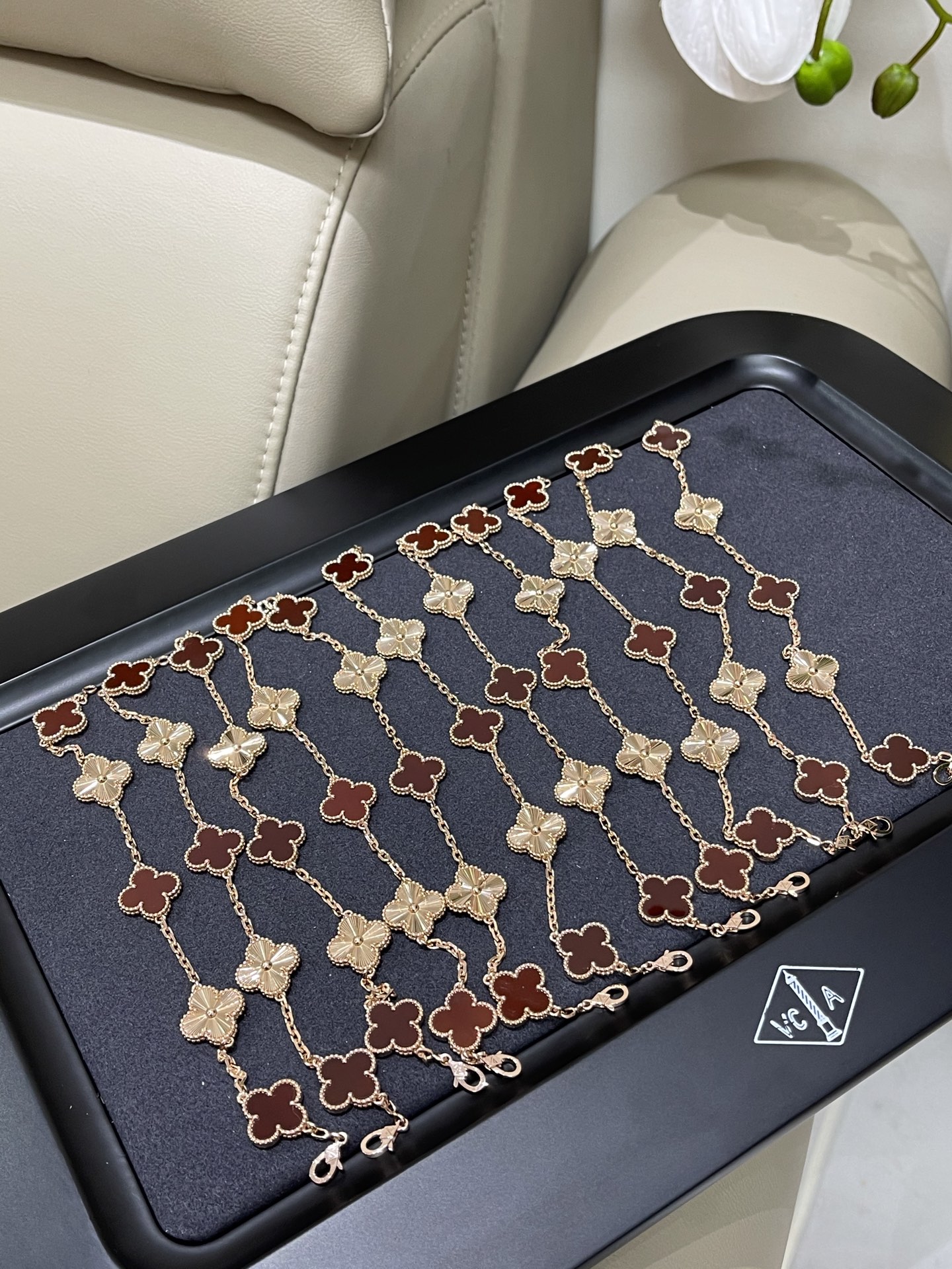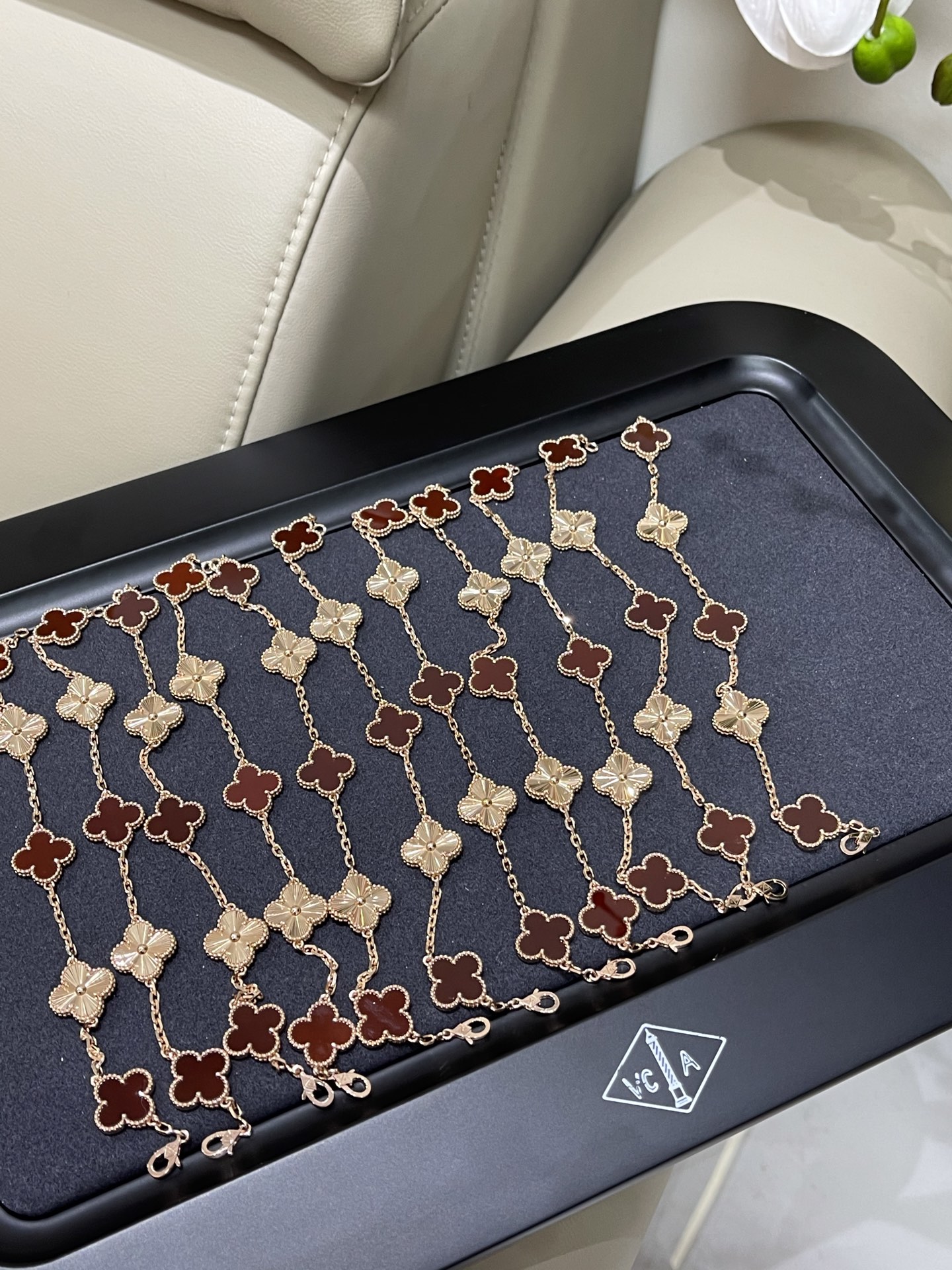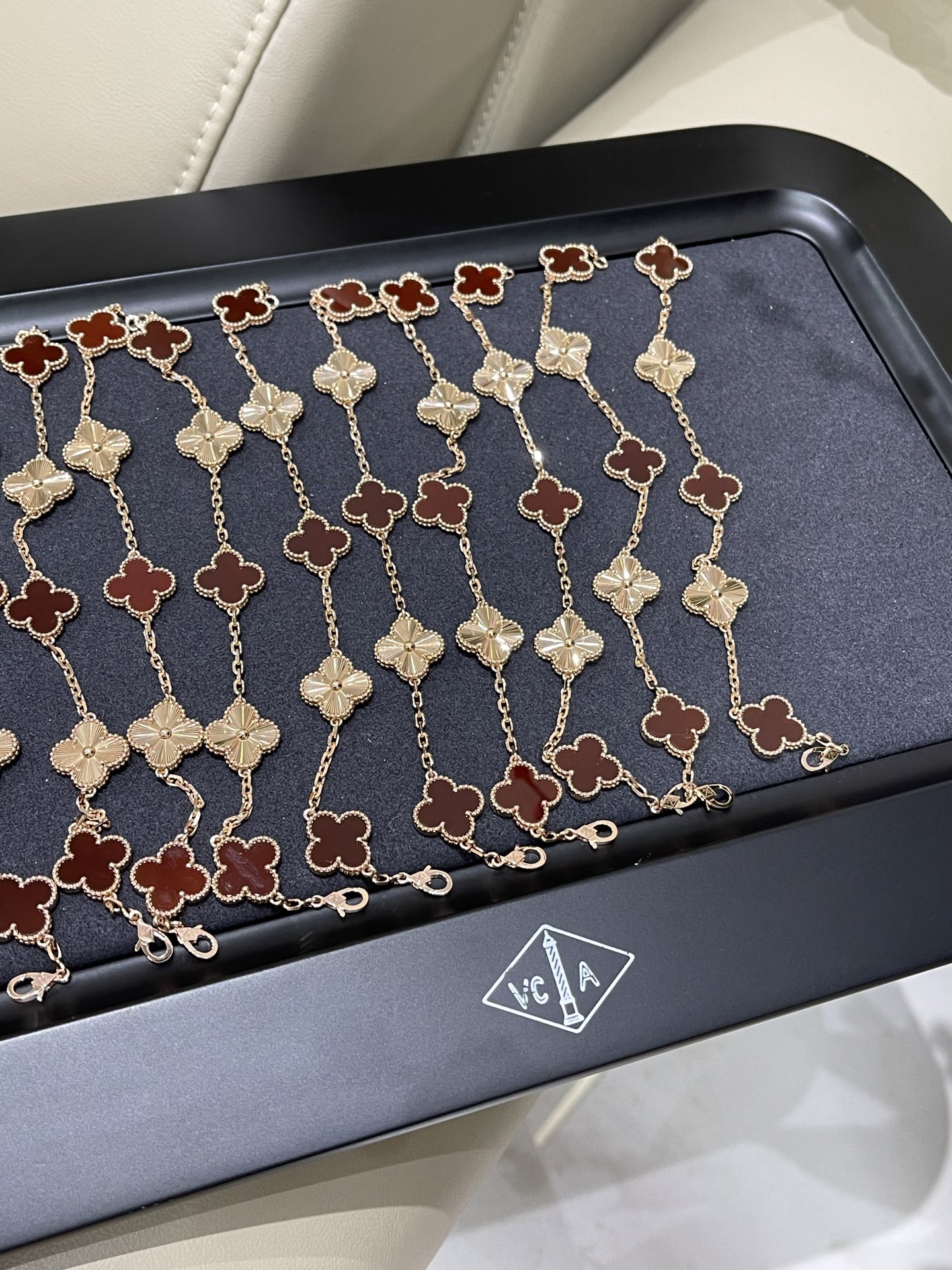 这款首饰是AAAAA 1:1 质量 (非常棒). 使用了和原版一模一样的材料. 商标部分也保持了和一样. 图片拍摄是实物首饰拍摄, 您所收到的实物保证和我们图片一模一样.