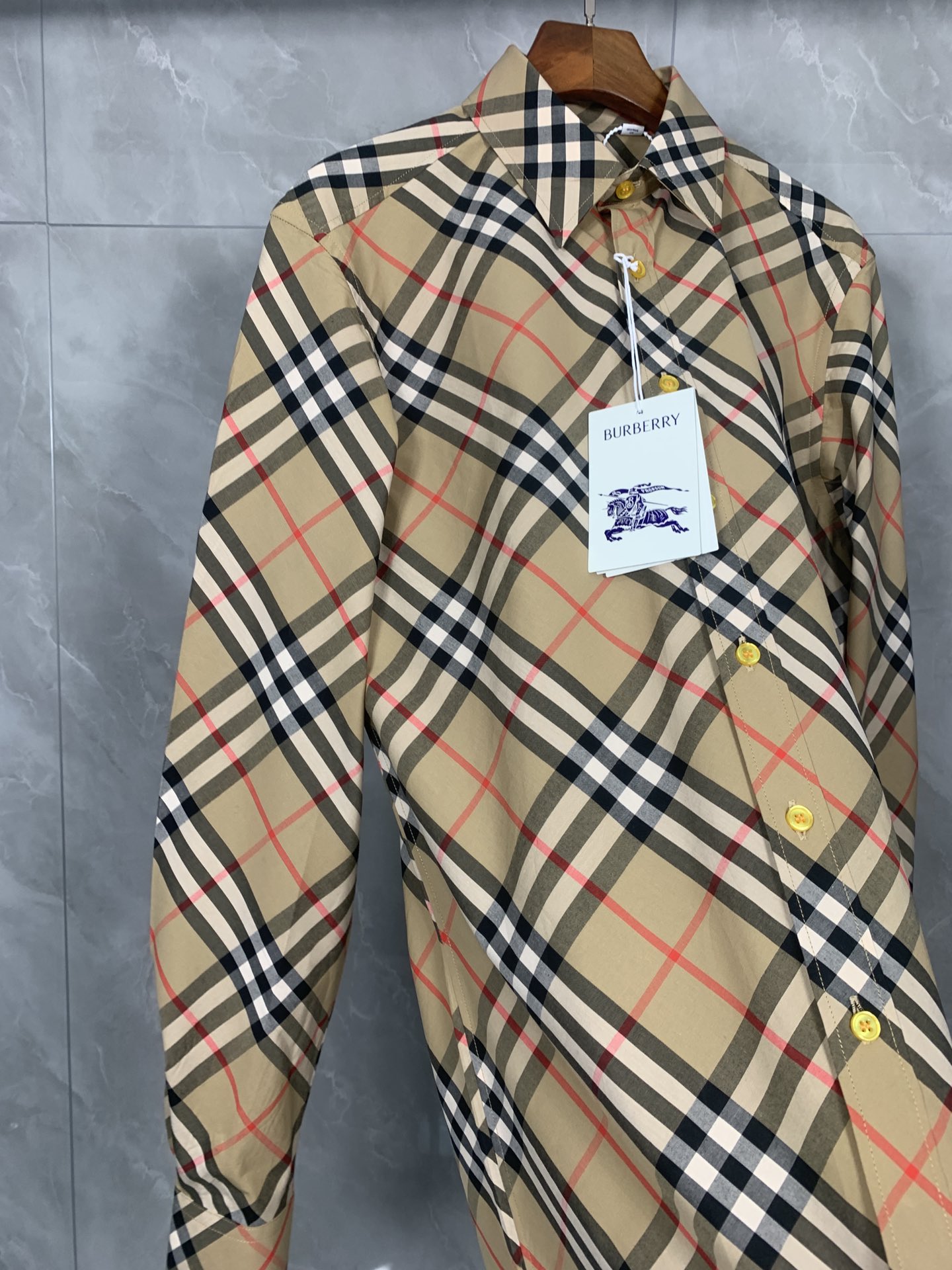 这款衣服是AAAAA 1:1 质量 (非常棒). 使用了和原版一模一样的材料. 商标部分也保持了和巴宝莉/Burberry一样. 图片拍摄是实物衣服拍摄, 您所收到的实物保证和我们图片一模一样.