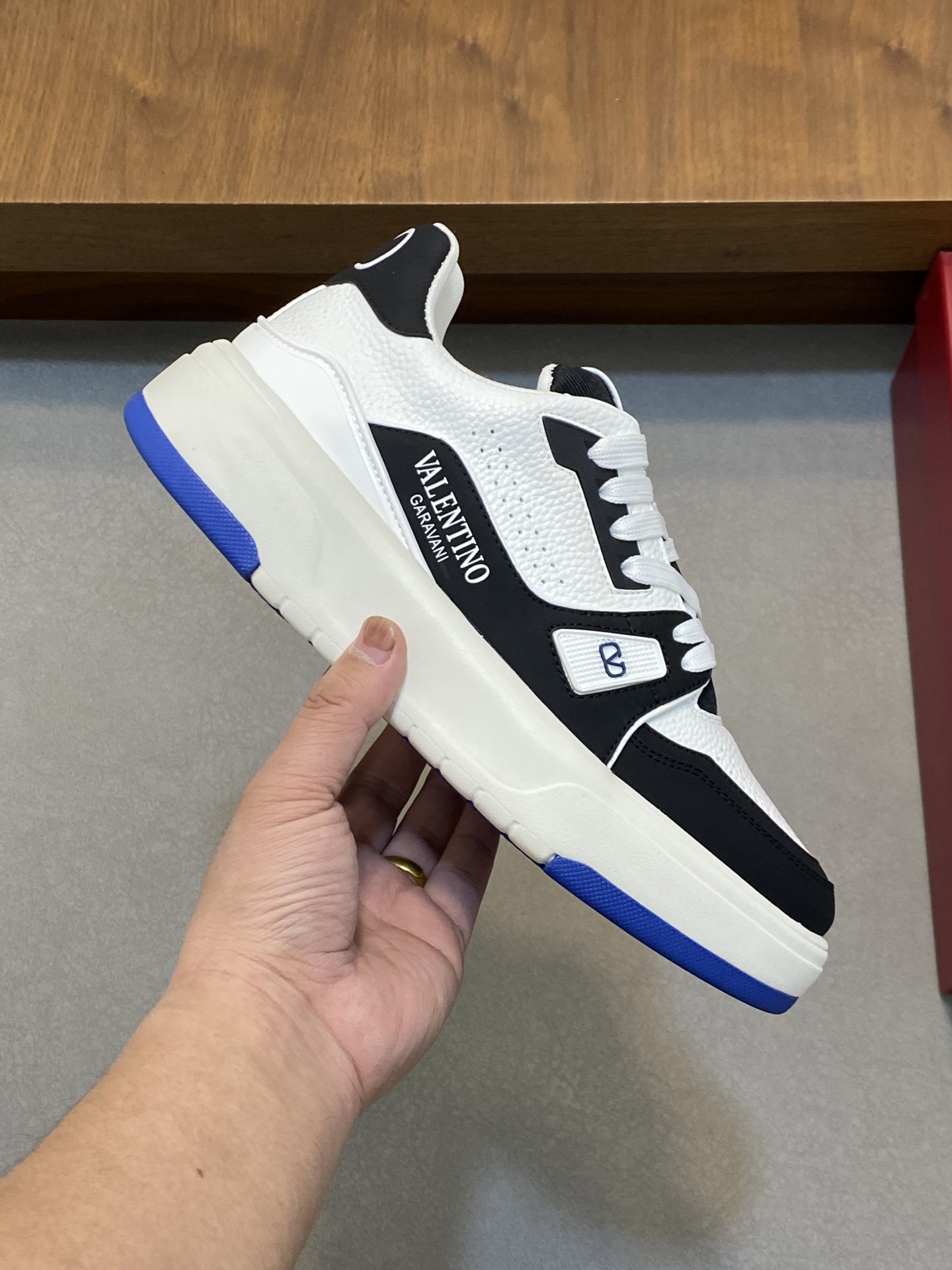 这款鞋子是AAAAA 1:1 质量 (非常棒). 使用了和原版一模一样的材料. 商标部分也保持了和华伦天奴/Valentino一样. 图片拍摄是实物鞋子拍摄, 您所收到的实物保证和我们图片一模一样.