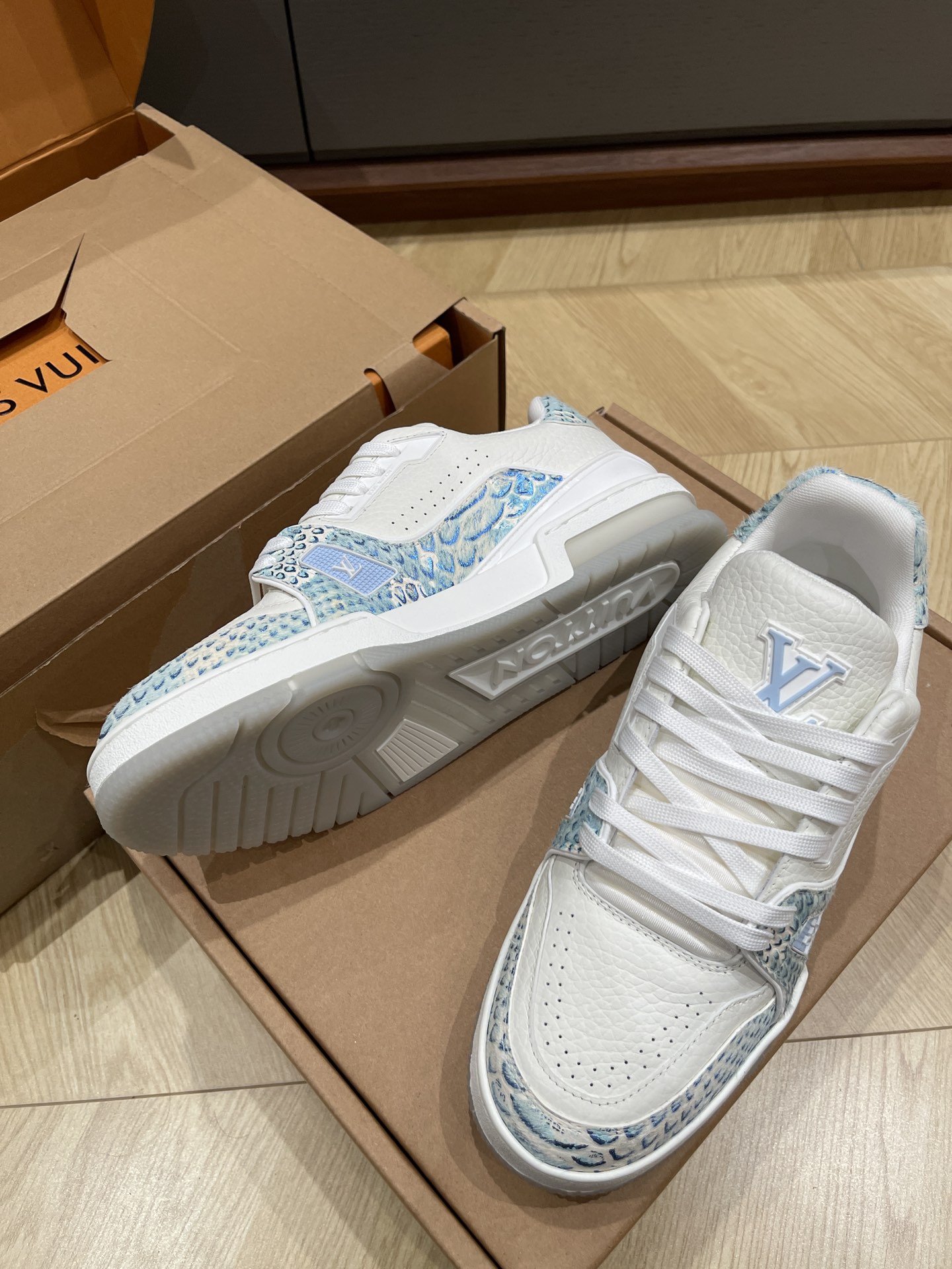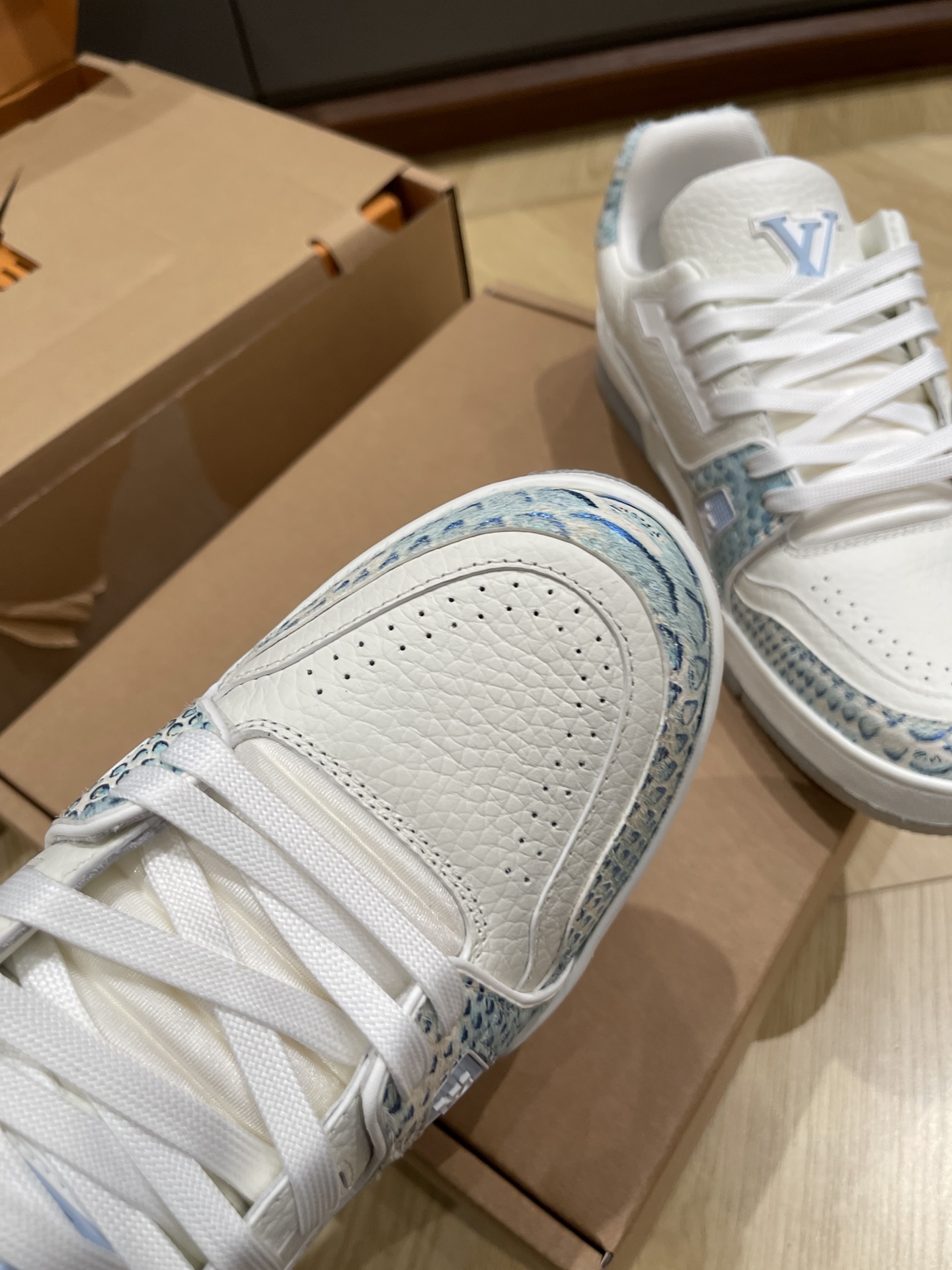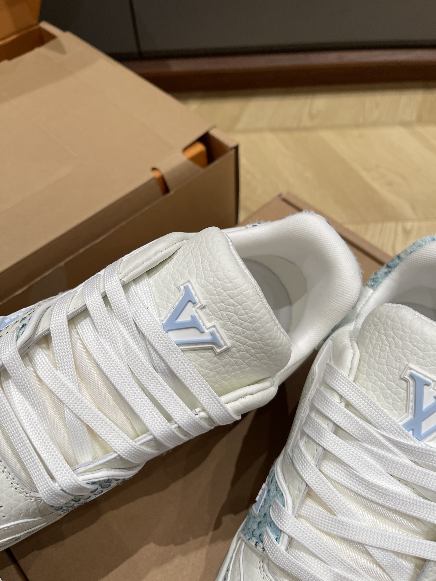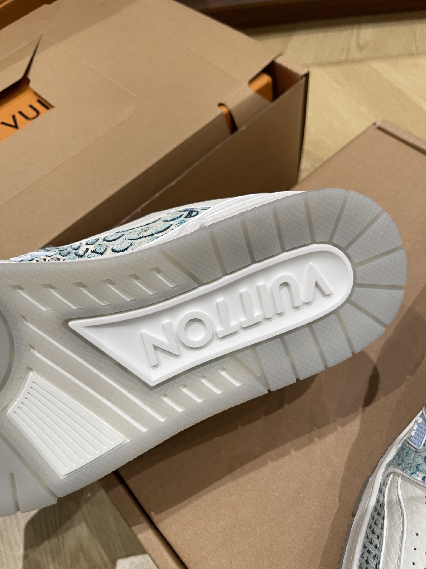 这款鞋子是AAAAA 1:1 质量 (非常棒). 使用了和原版一模一样的材料. 商标部分也保持了和路易威登/Louis Vuitton一样. 图片拍摄是实物鞋子拍摄, 您所收到的实物保证和我们图片一模一样.
