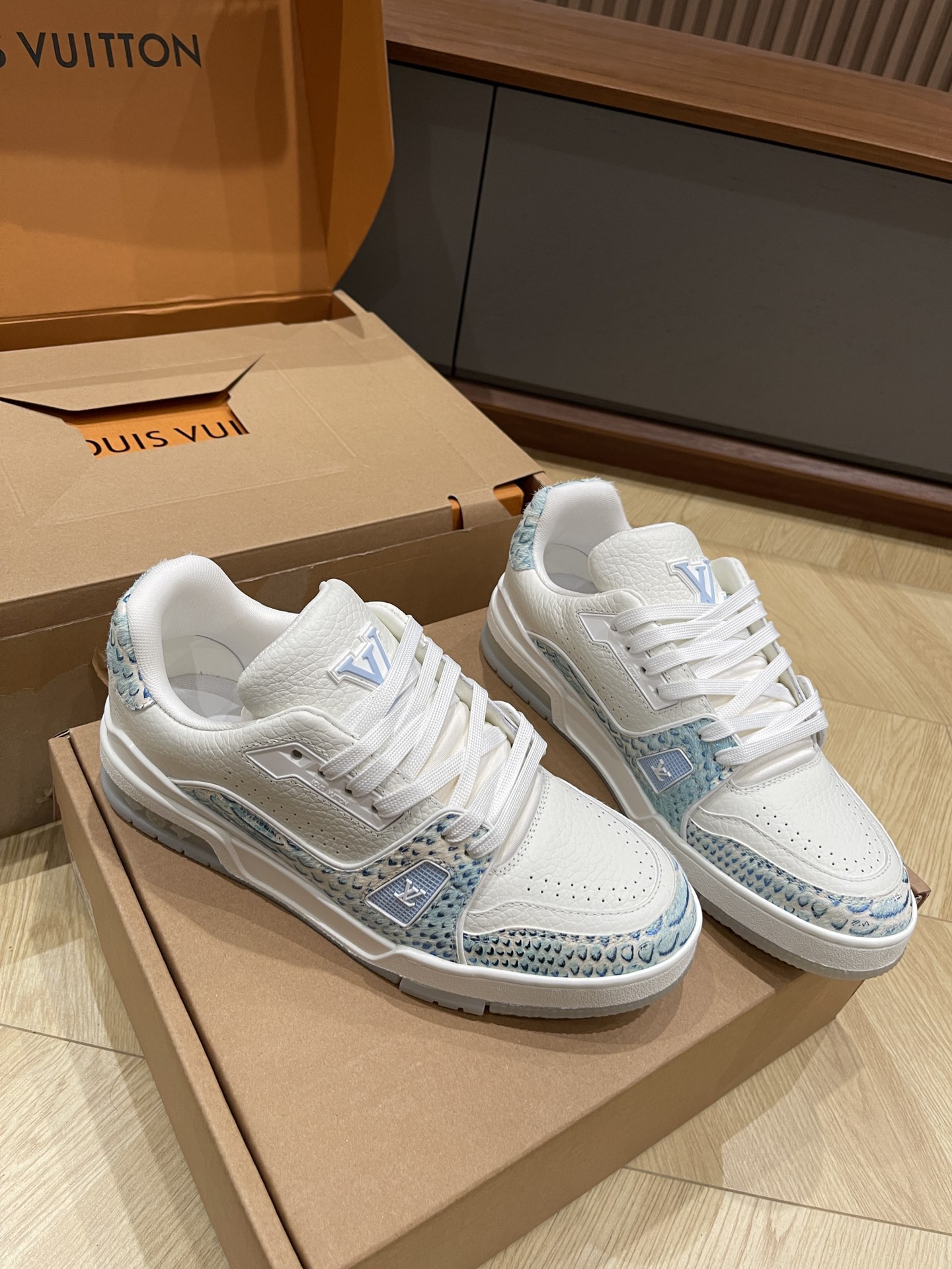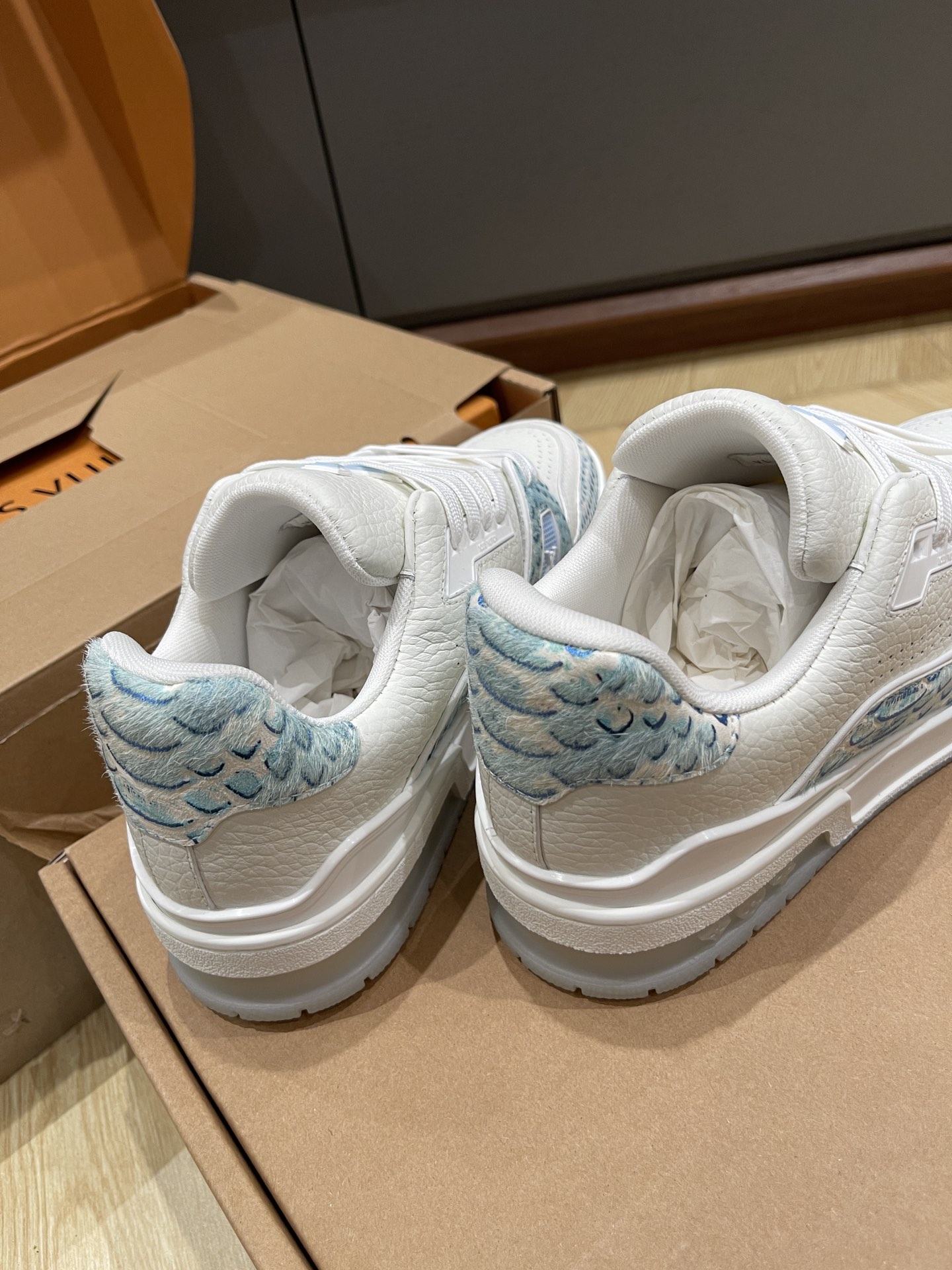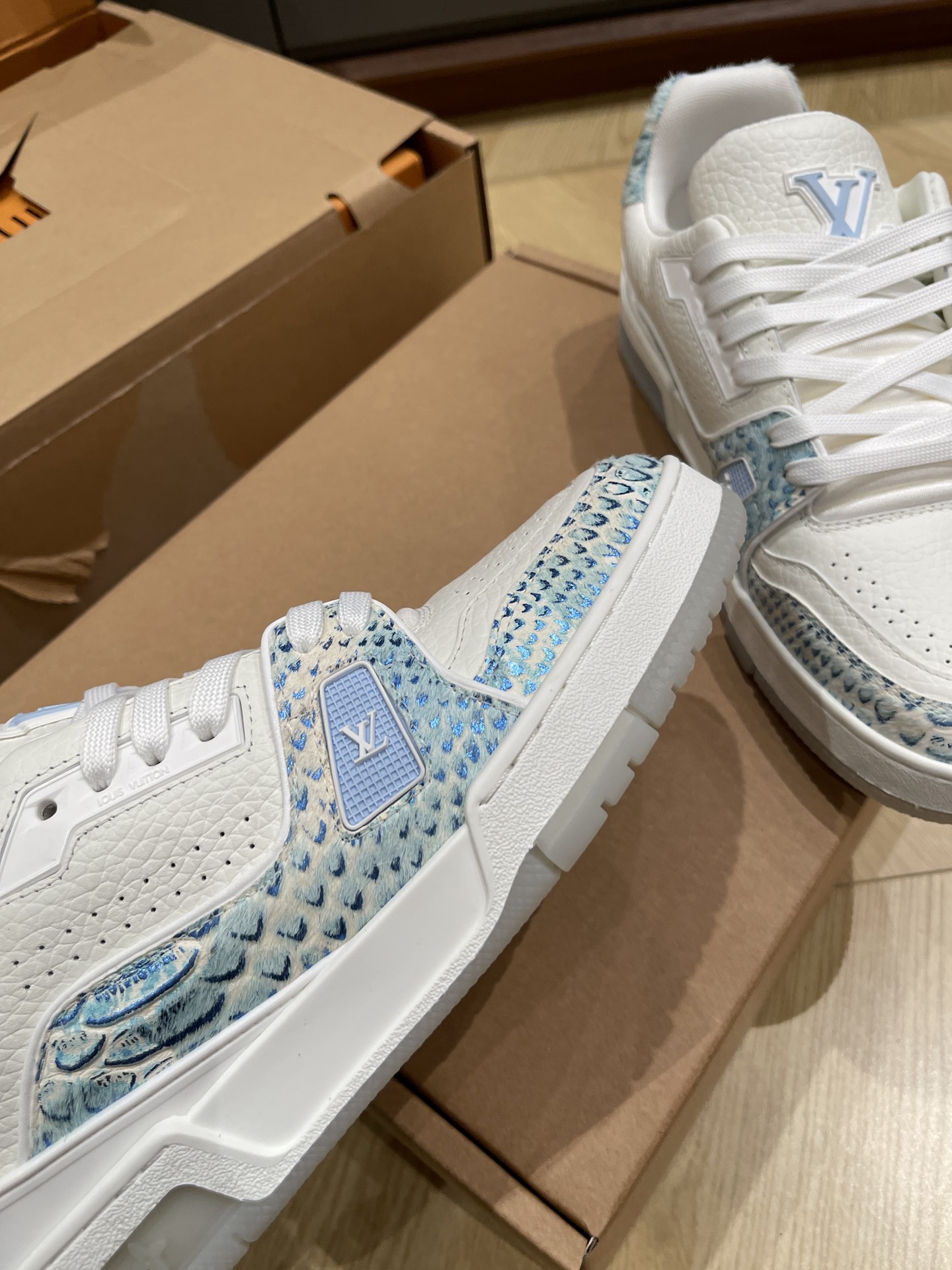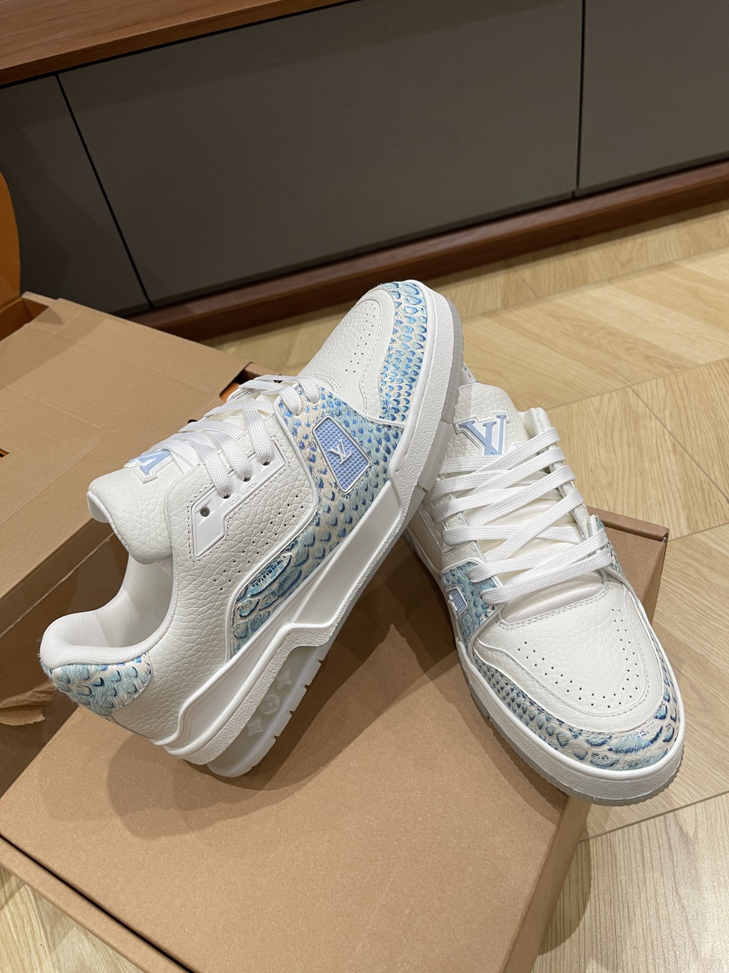 这款鞋子是AAAAA 1:1 质量 (非常棒). 使用了和原版一模一样的材料. 商标部分也保持了和路易威登/Louis Vuitton一样. 图片拍摄是实物鞋子拍摄, 您所收到的实物保证和我们图片一模一样.