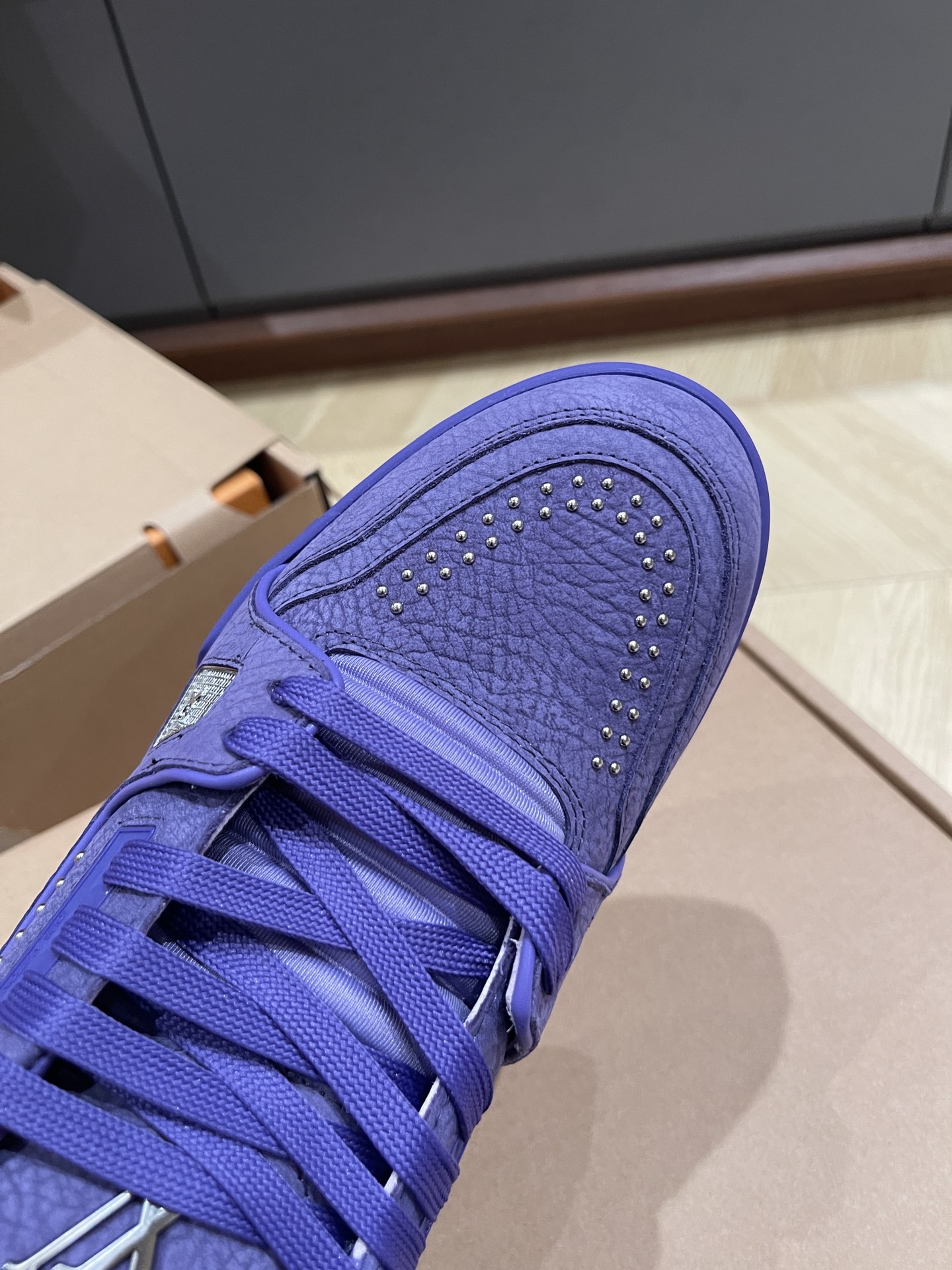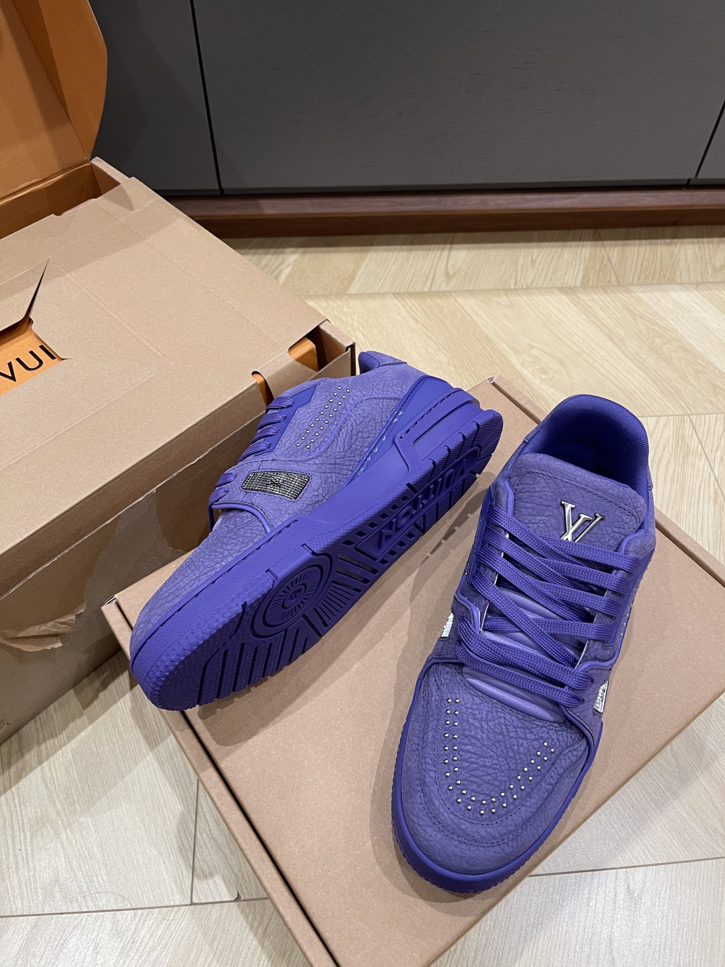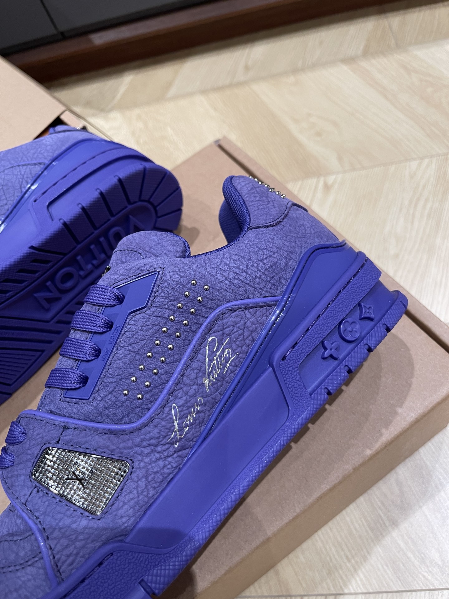 这款鞋子是AAAAA 1:1 质量 (非常棒). 使用了和原版一模一样的材料. 商标部分也保持了和路易威登/Louis Vuitton一样. 图片拍摄是实物鞋子拍摄, 您所收到的实物保证和我们图片一模一样.