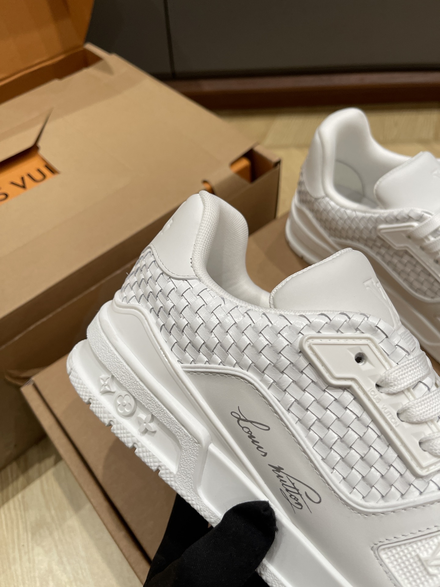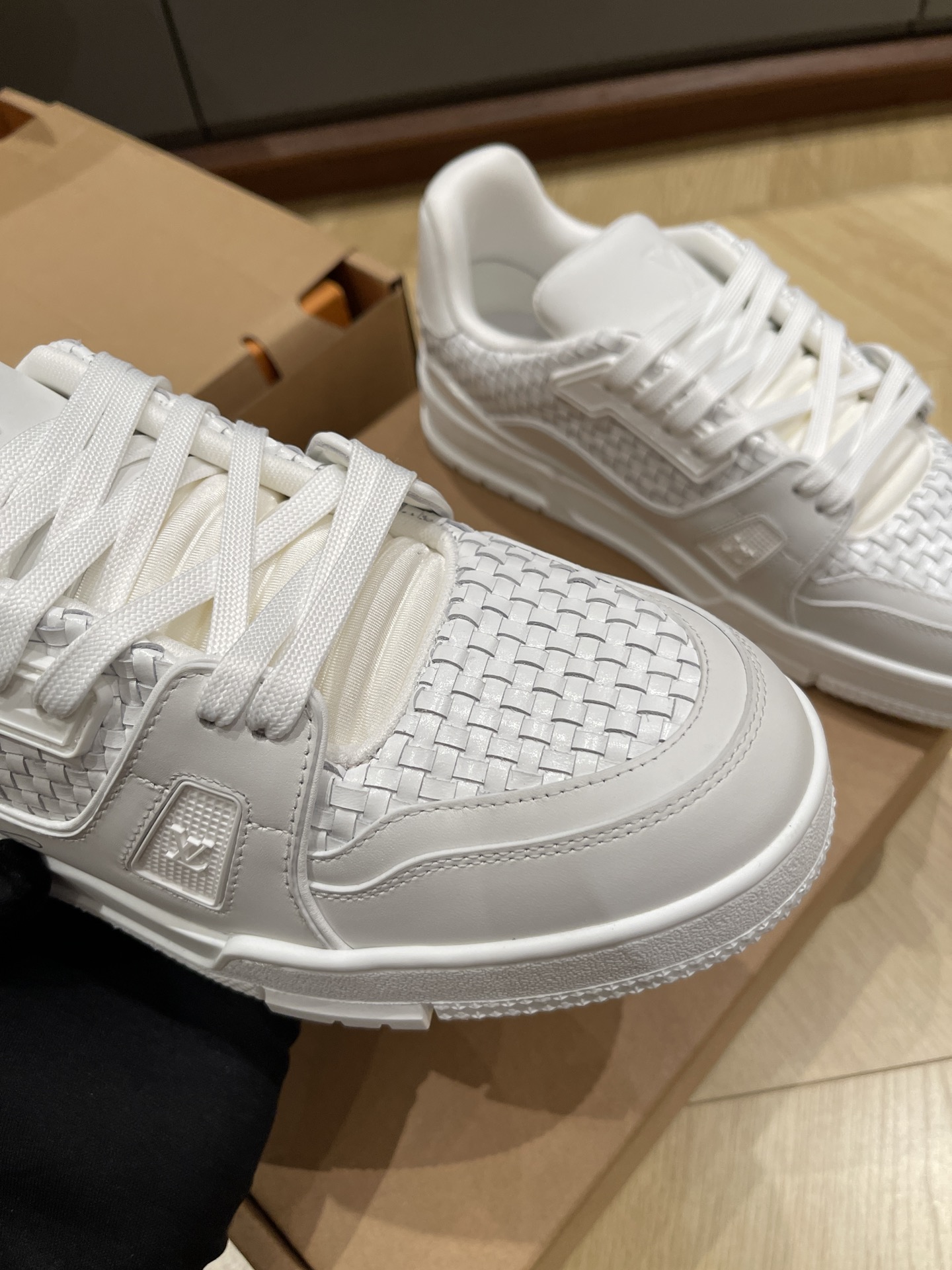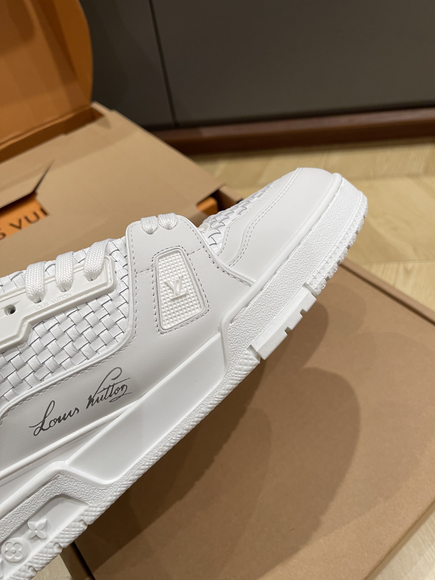 这款鞋子是AAAAA 1:1 质量 (非常棒). 使用了和原版一模一样的材料. 商标部分也保持了和路易威登/Louis Vuitton一样. 图片拍摄是实物鞋子拍摄, 您所收到的实物保证和我们图片一模一样.