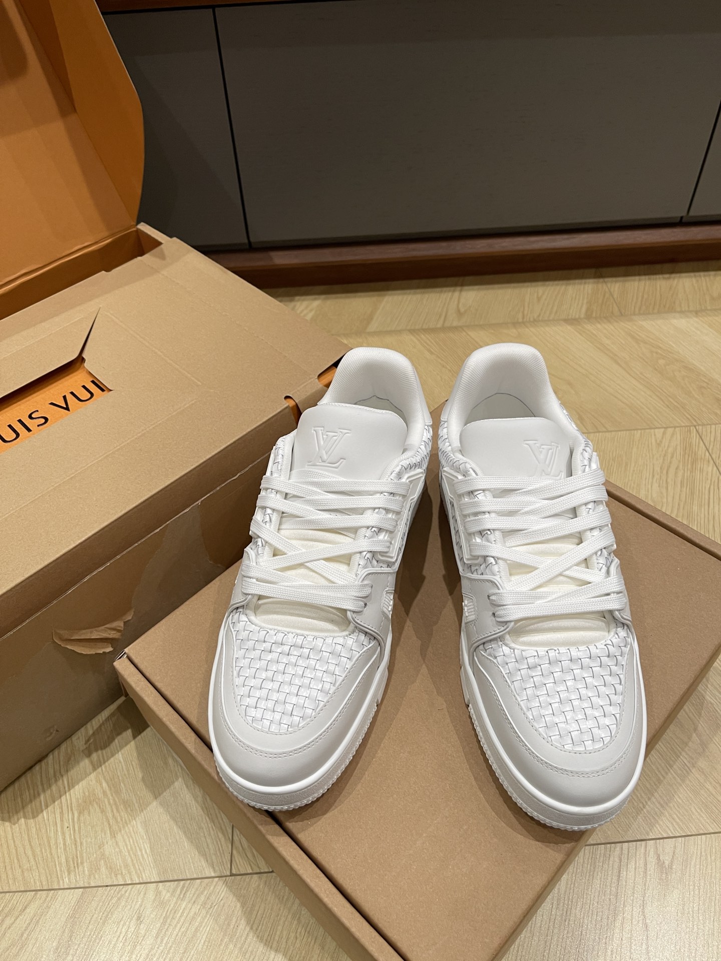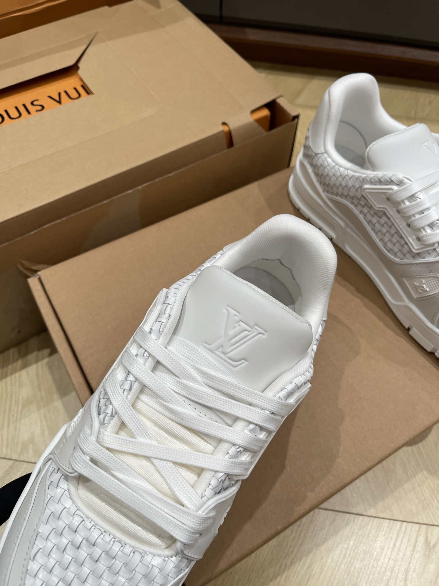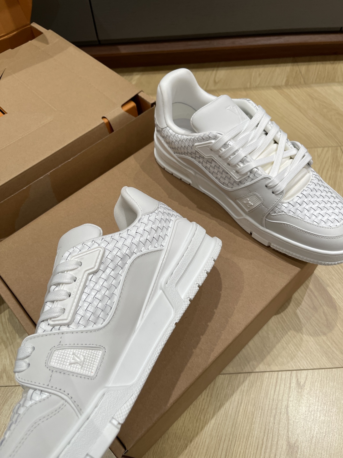 这款鞋子是AAAAA 1:1 质量 (非常棒). 使用了和原版一模一样的材料. 商标部分也保持了和路易威登/Louis Vuitton一样. 图片拍摄是实物鞋子拍摄, 您所收到的实物保证和我们图片一模一样.