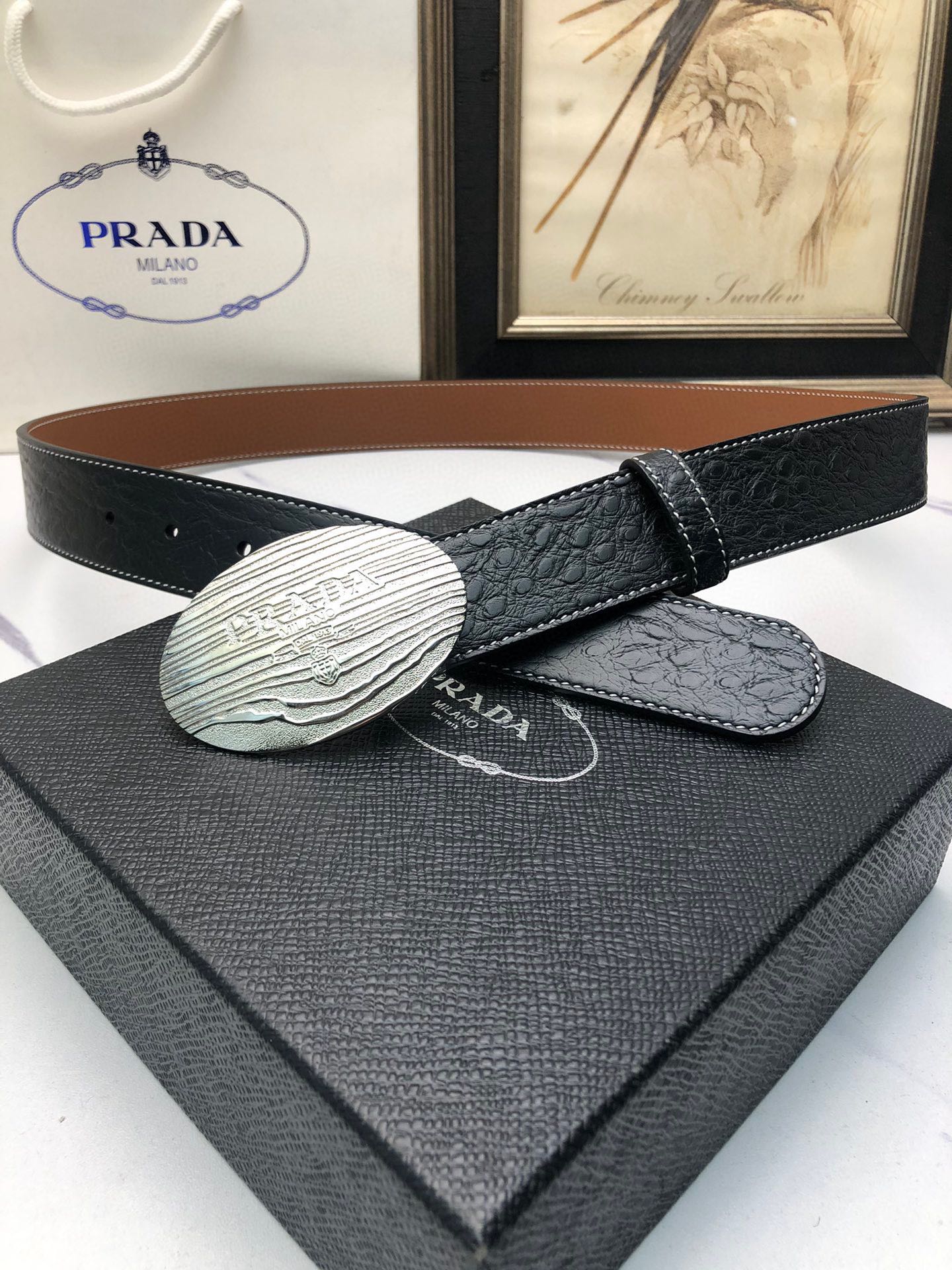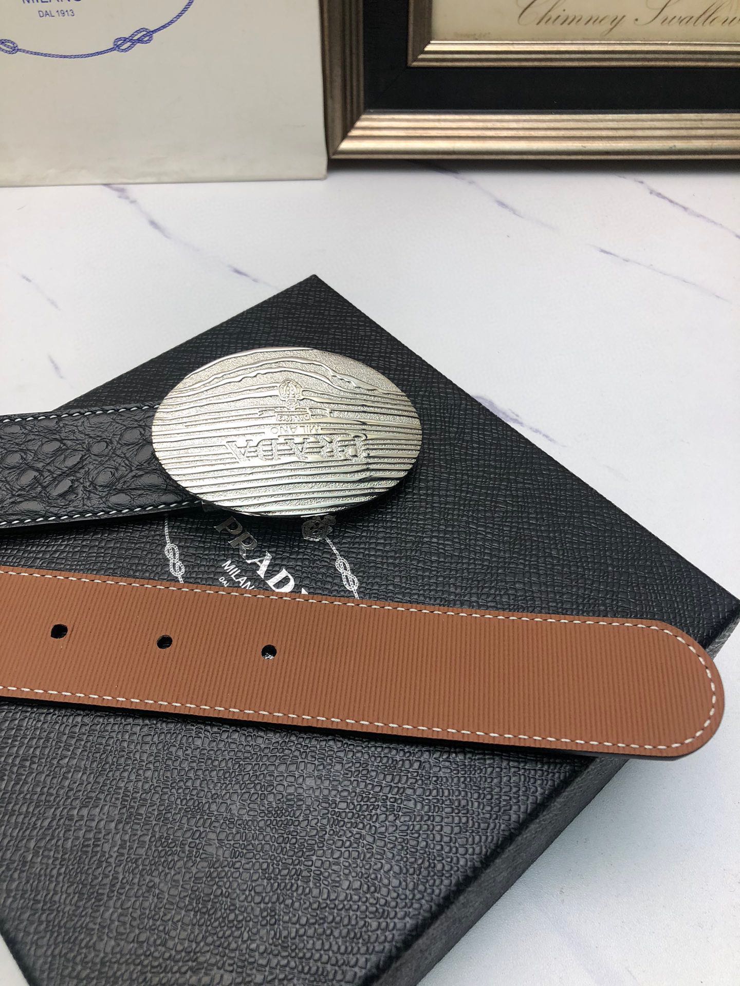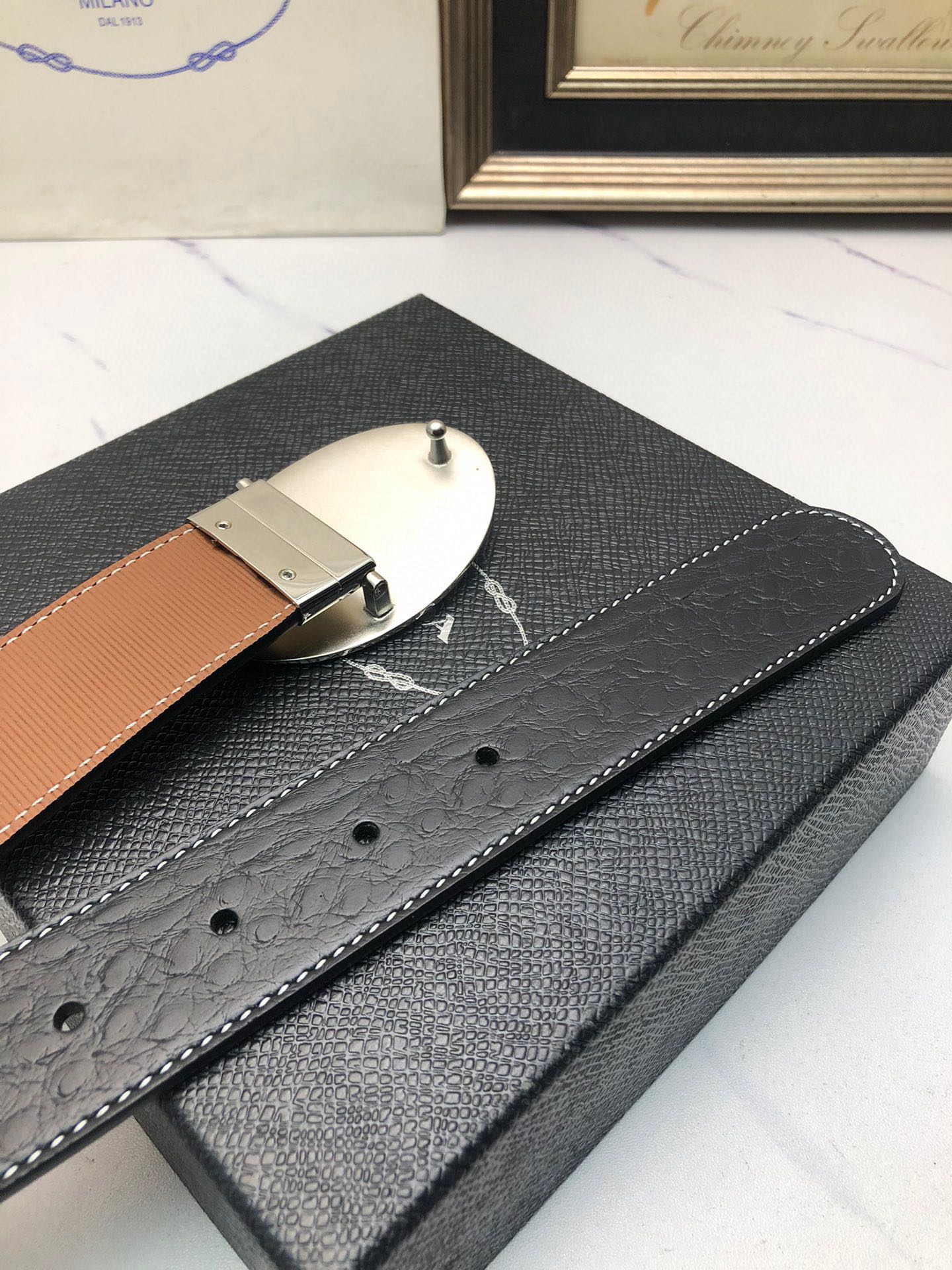 这款皮带是AAAAA 1:1 质量 (非常棒). 使用了和原版一模一样的材料. 商标部分也保持了和普拉达/Prada一样. 图片拍摄是实物皮带拍摄, 您所收到的实物保证和我们图片一模一样.