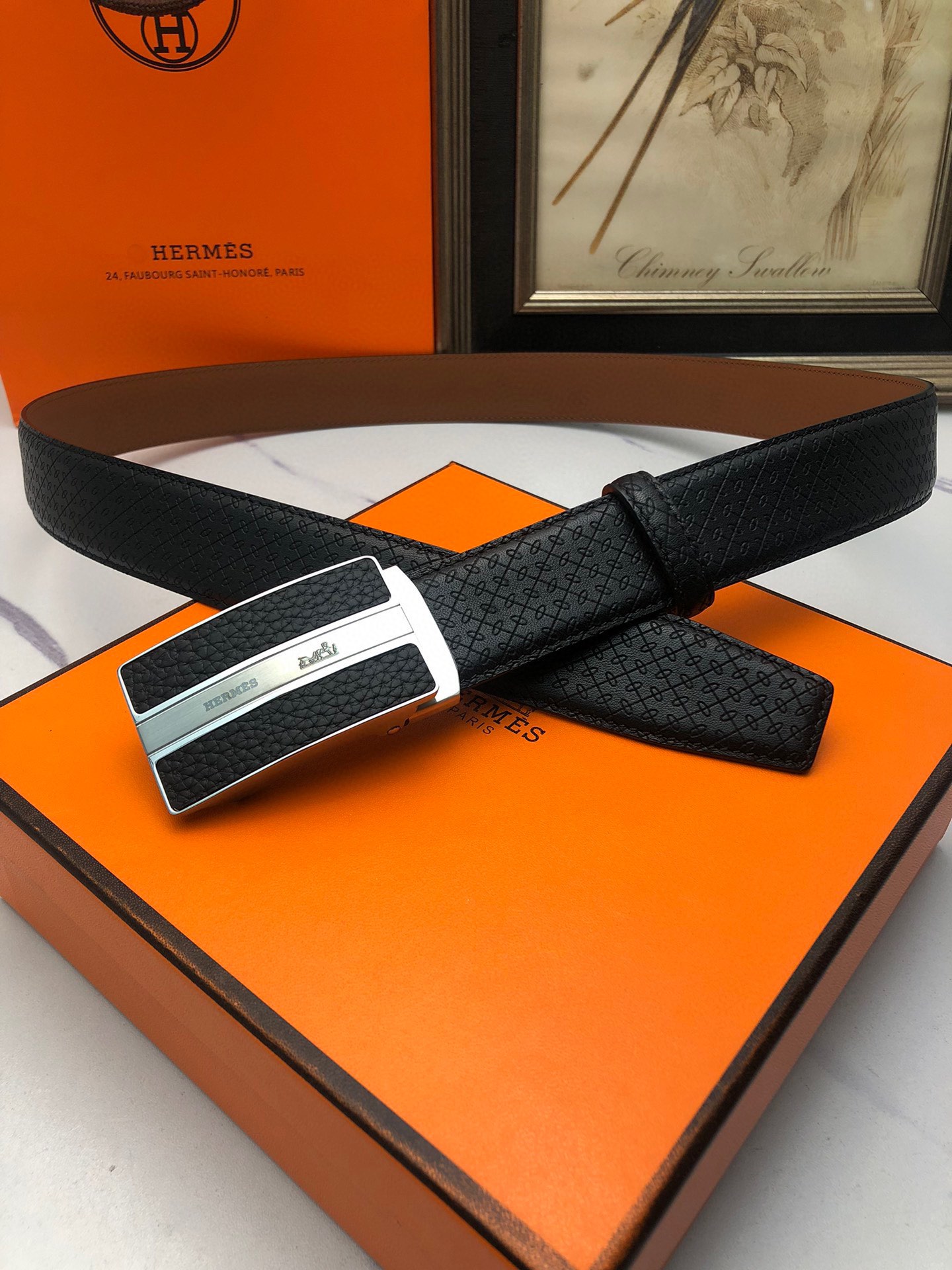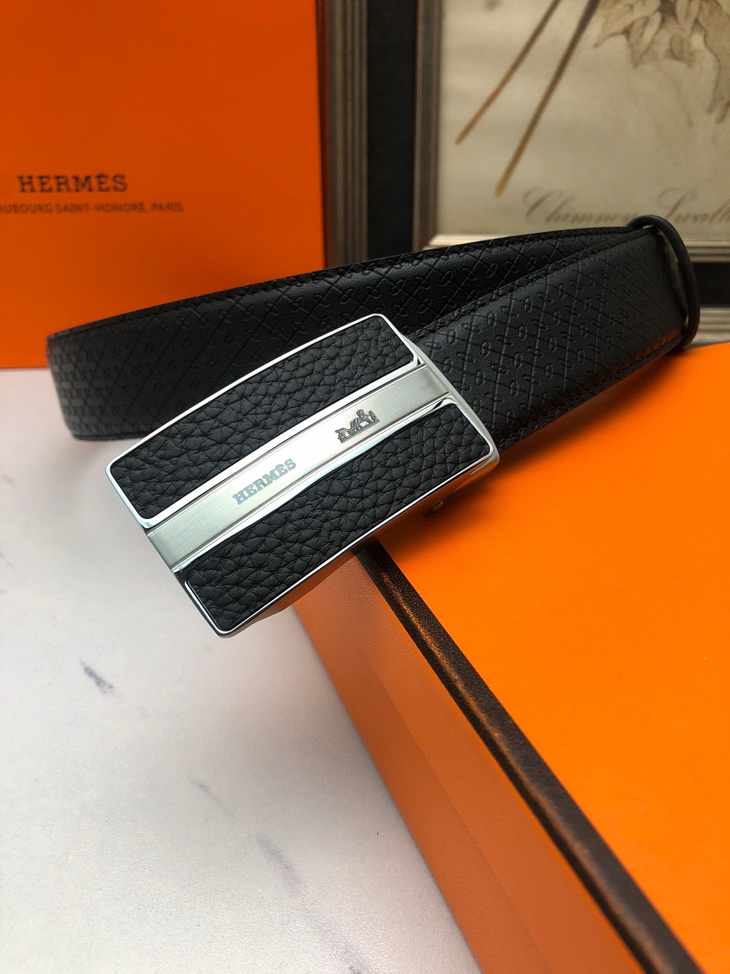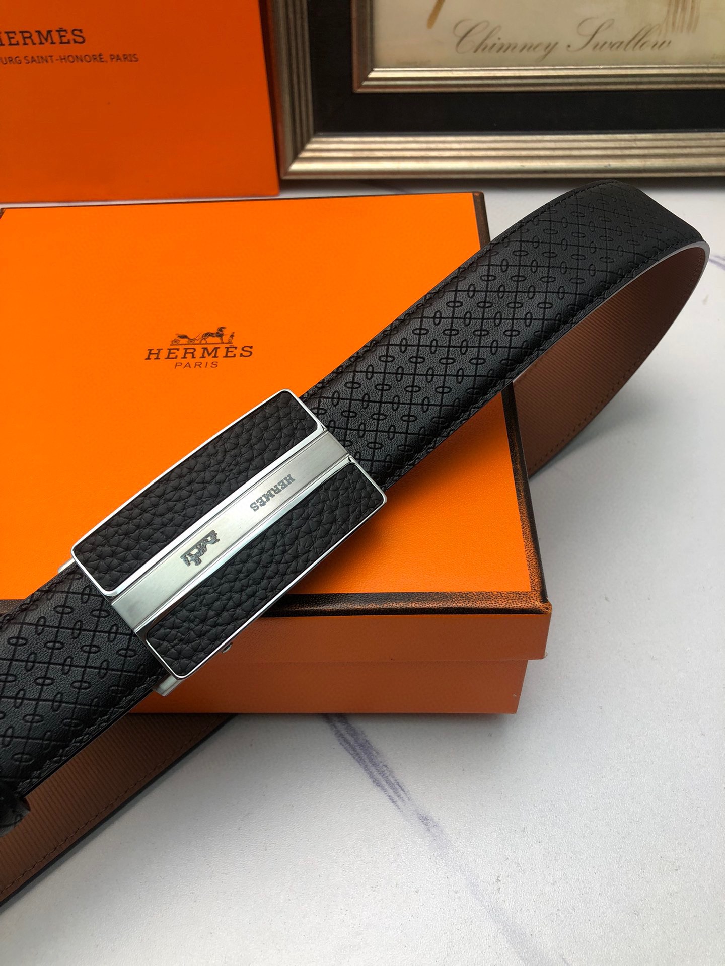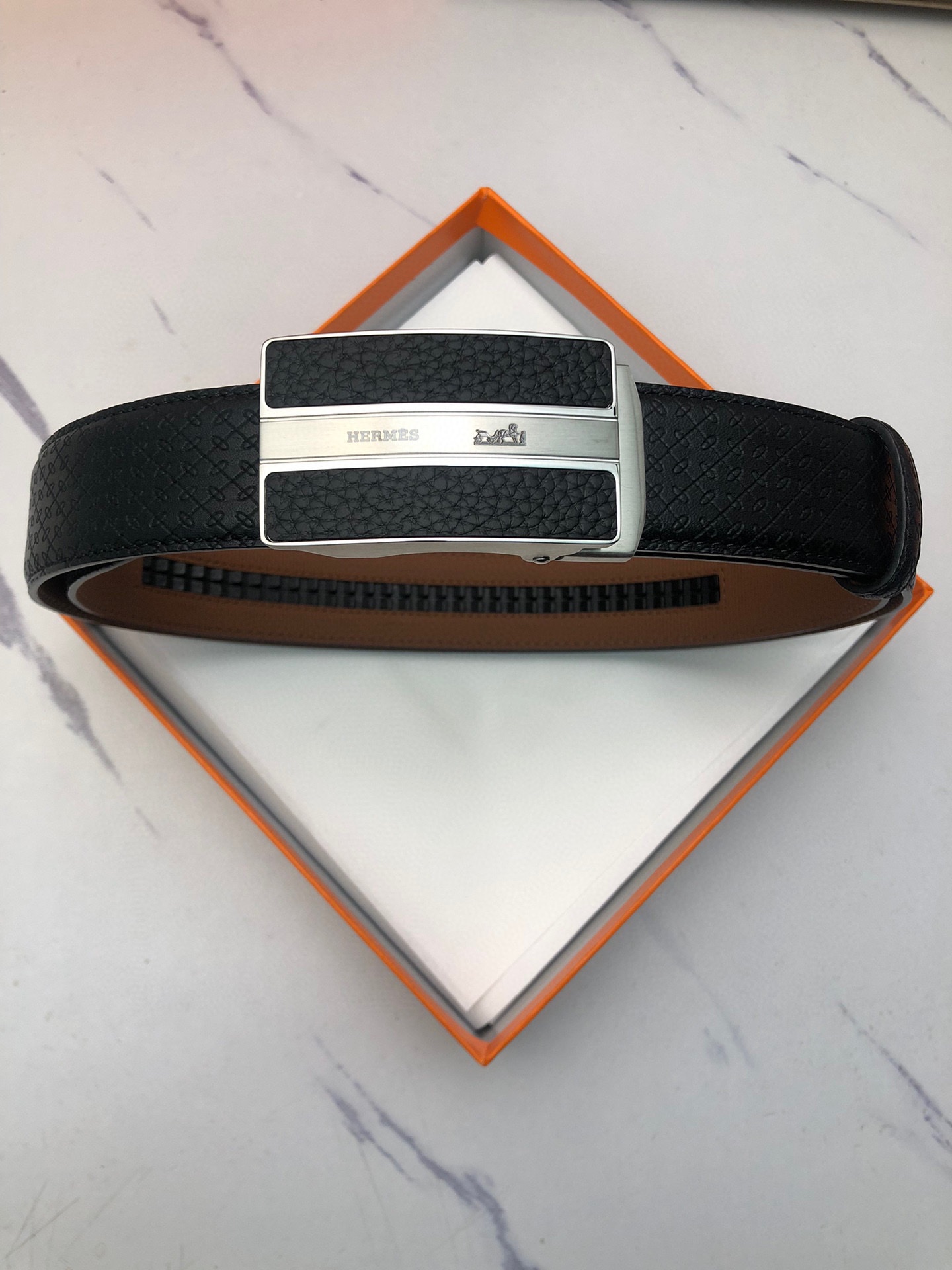 这款皮带是AAAAA 1:1 质量 (非常棒). 使用了和原版一模一样的材料. 商标部分也保持了和爱马仕/Hermes一样. 图片拍摄是实物皮带拍摄, 您所收到的实物保证和我们图片一模一样.