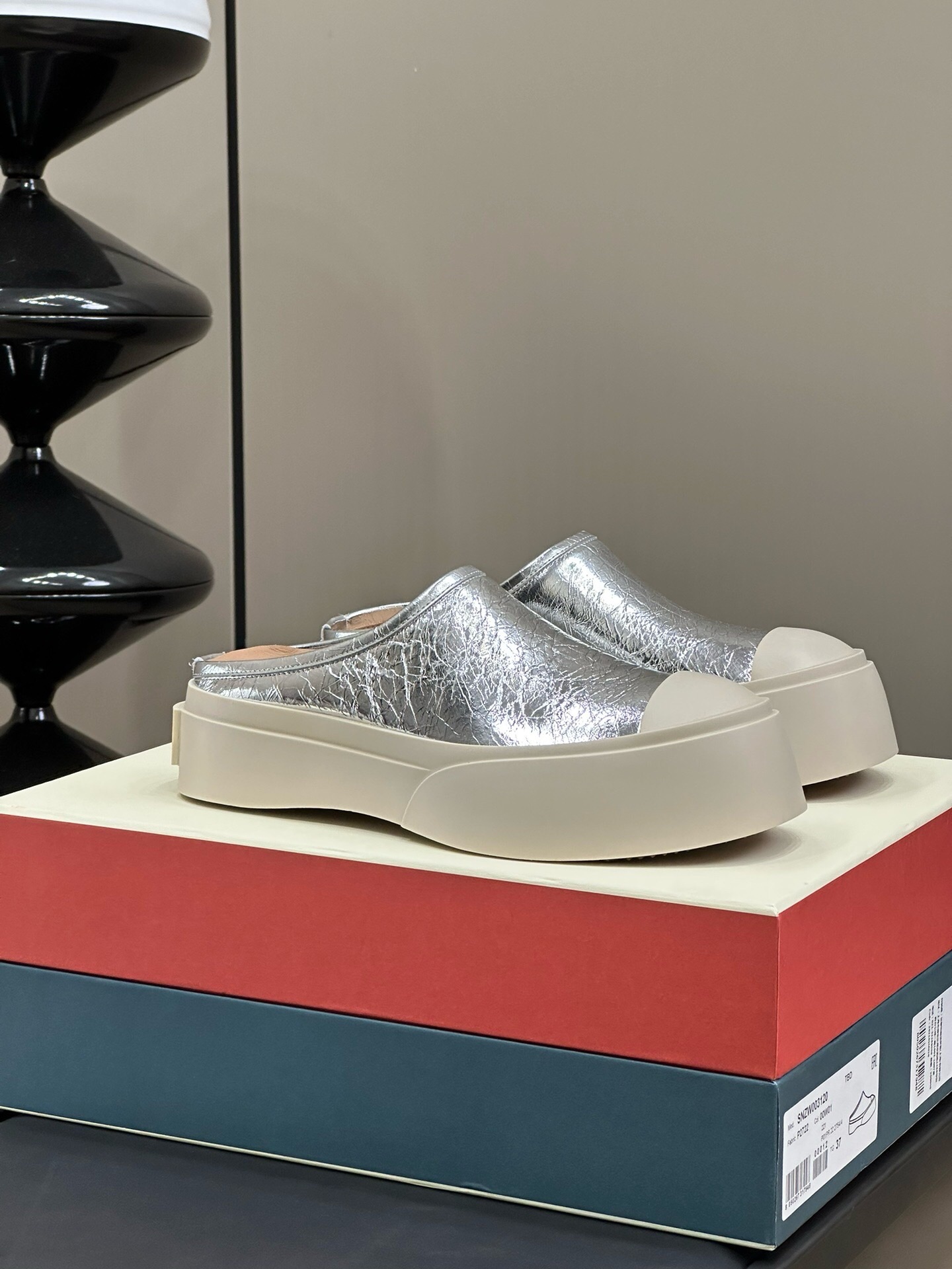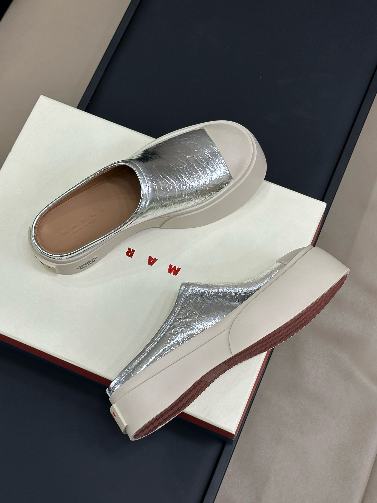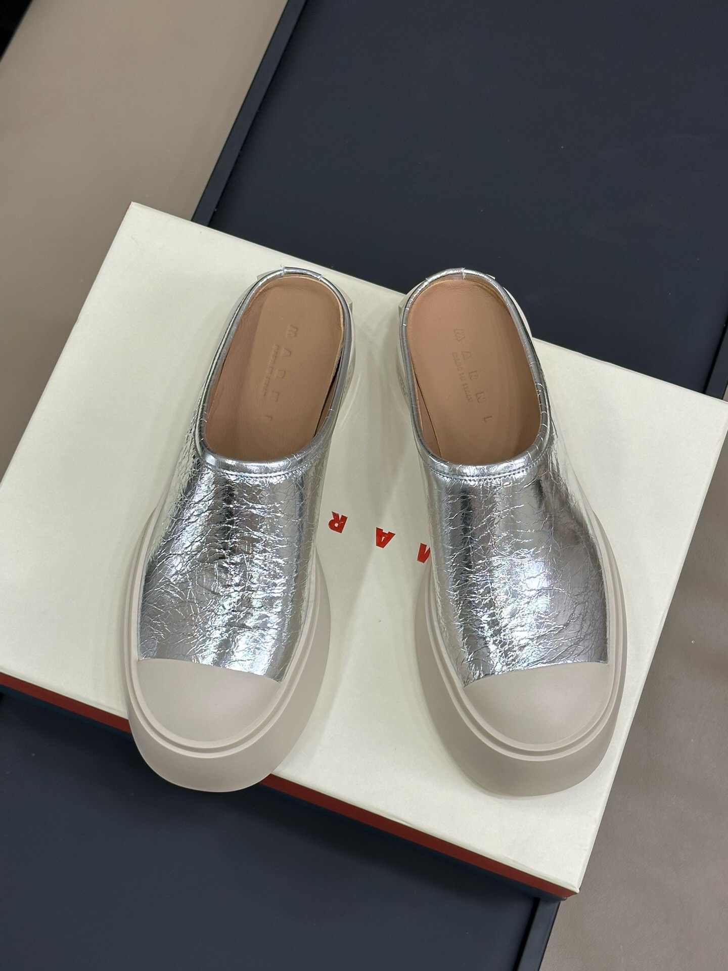 这款鞋子是AAAAA 1:1 质量 (非常棒). 使用了和原版一模一样的材料. 商标部分也保持了和马尔尼/Marni一样. 图片拍摄是实物鞋子拍摄, 您所收到的实物保证和我们图片一模一样.