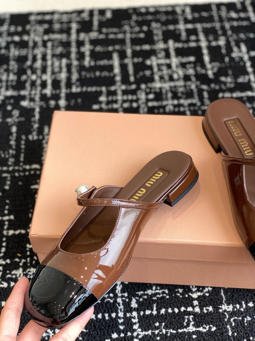 这款鞋子是AAAAA 1:1 质量 (非常棒). 使用了和原版一模一样的材料. 商标部分也保持了和缪缪/Miu Miu一样. 图片拍摄是实物鞋子拍摄, 您所收到的实物保证和我们图片一模一样.