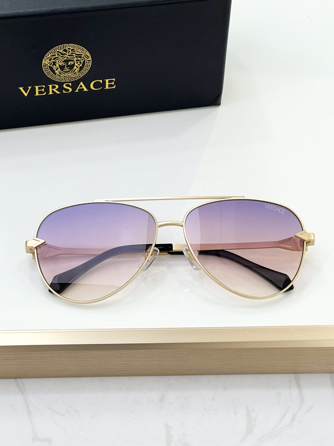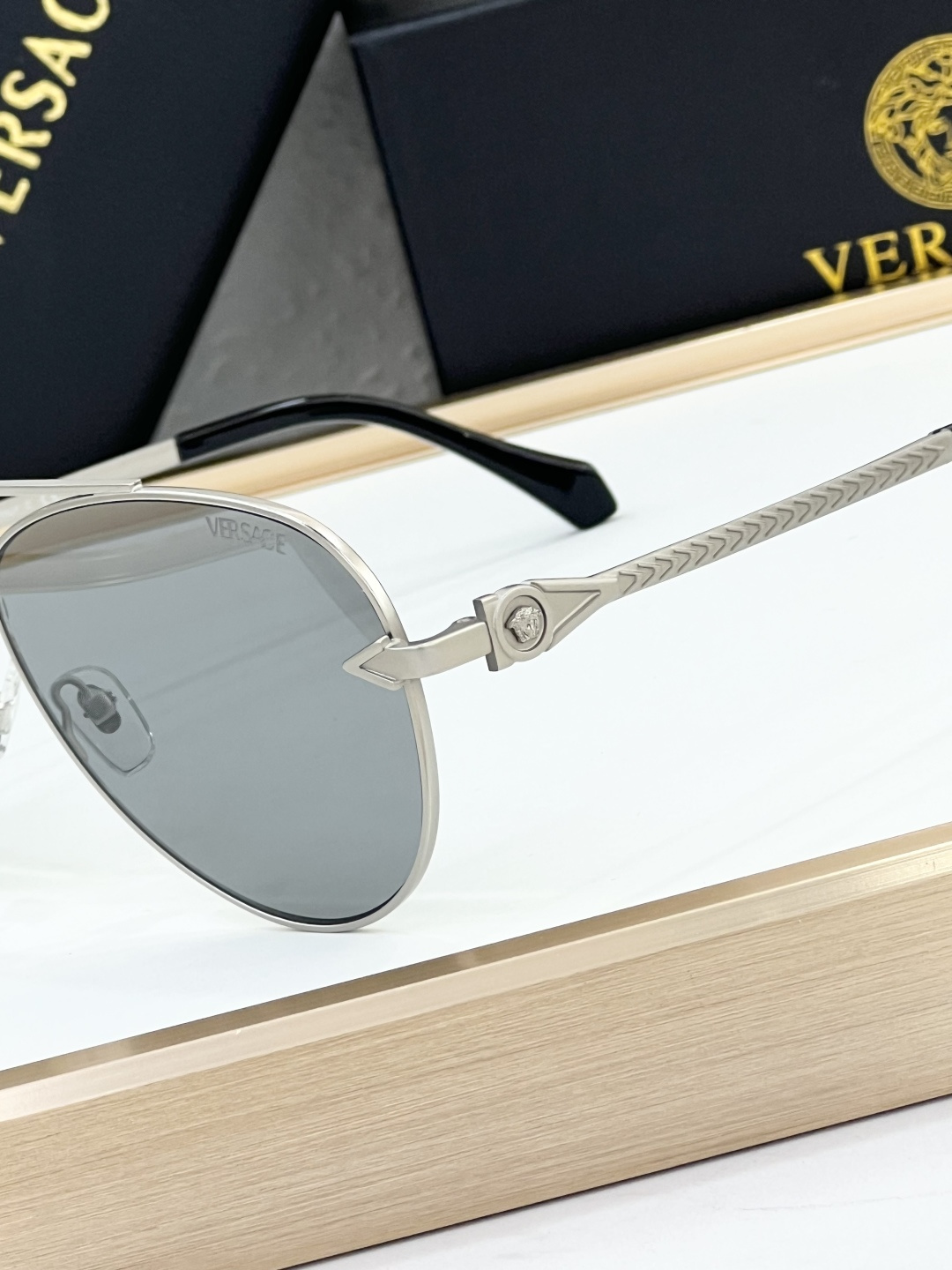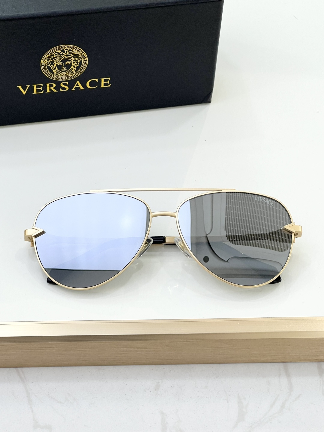 这款太阳眼镜是AAAAA 1:1 质量 (非常棒). 使用了和原版一模一样的材料. 商标部分也保持了和范思哲/Versace一样. 图片拍摄是实物太阳眼镜拍摄, 您所收到的实物保证和我们图片一模一样.