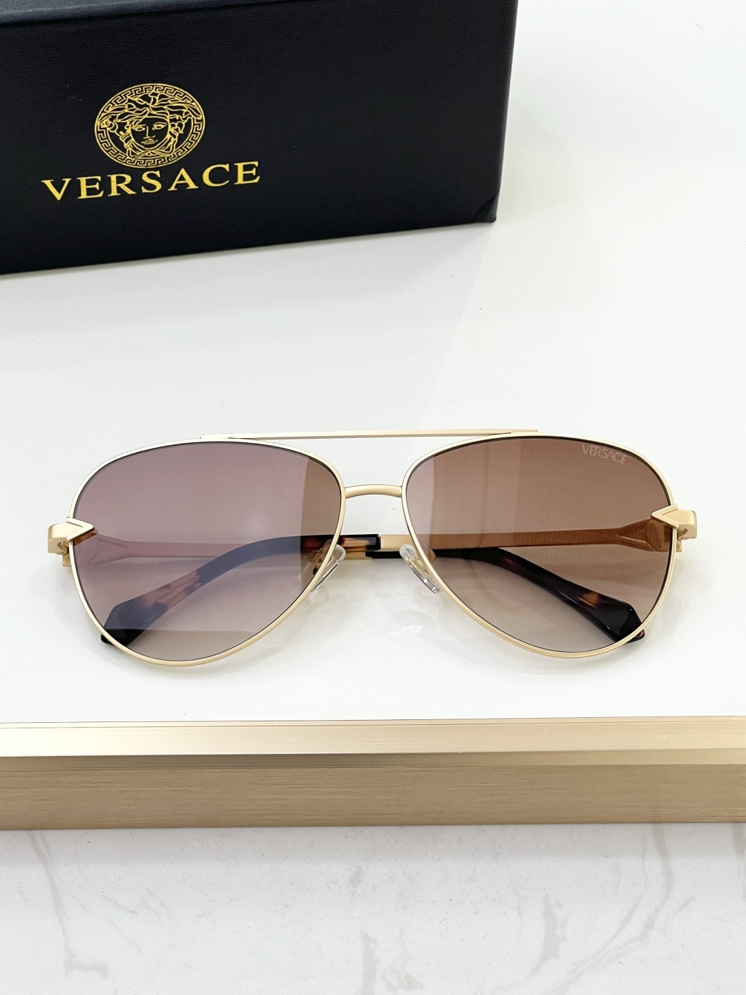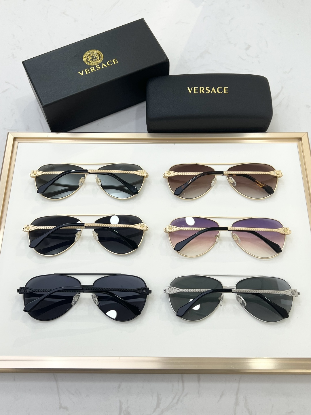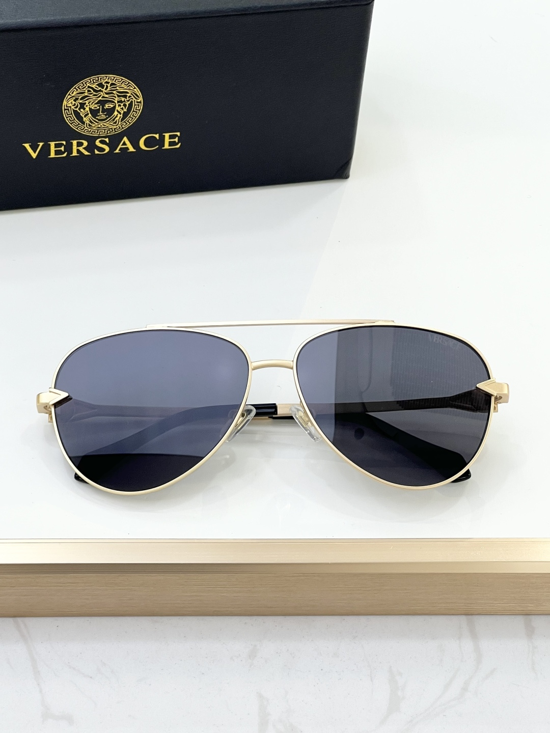 这款太阳眼镜是AAAAA 1:1 质量 (非常棒). 使用了和原版一模一样的材料. 商标部分也保持了和范思哲/Versace一样. 图片拍摄是实物太阳眼镜拍摄, 您所收到的实物保证和我们图片一模一样.