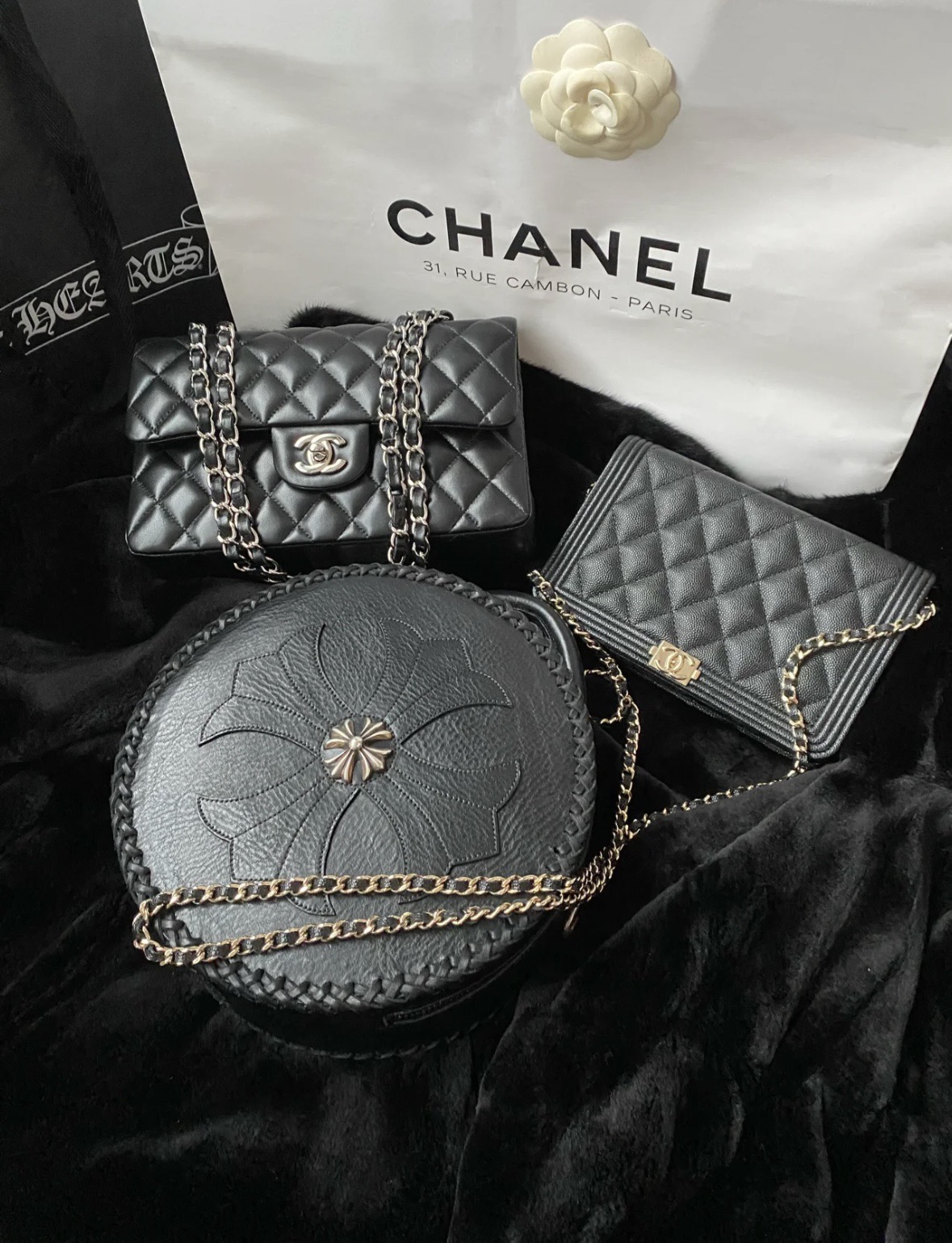 这款包包是AAAAA 1:1 质量 (非常棒). 使用了和原版一模一样的材料. 商标部分也保持了和克罗心/Chrome Hearts一样. 图片拍摄是实物包包拍摄, 您所收到的实物保证和我们图片一模一样.