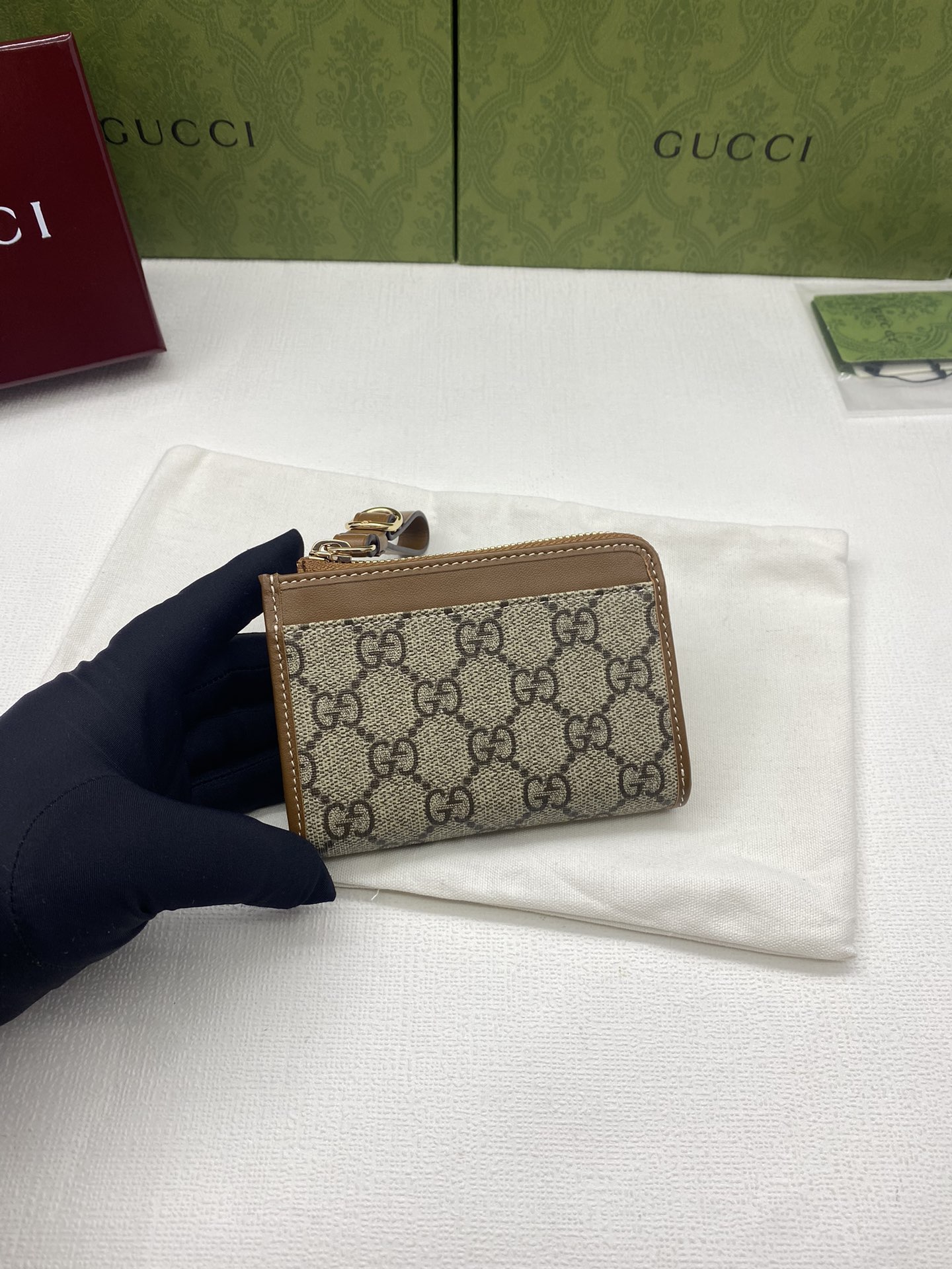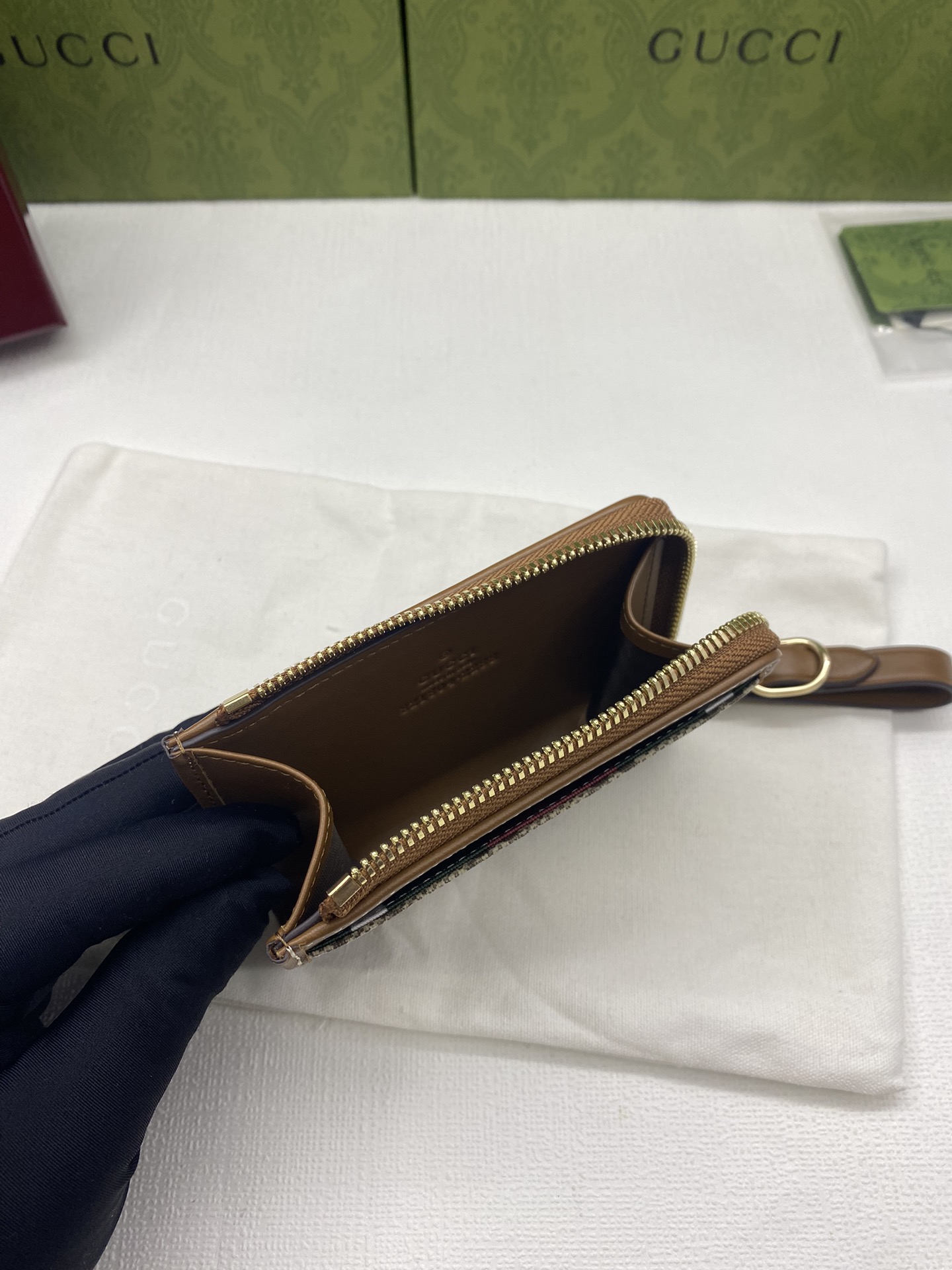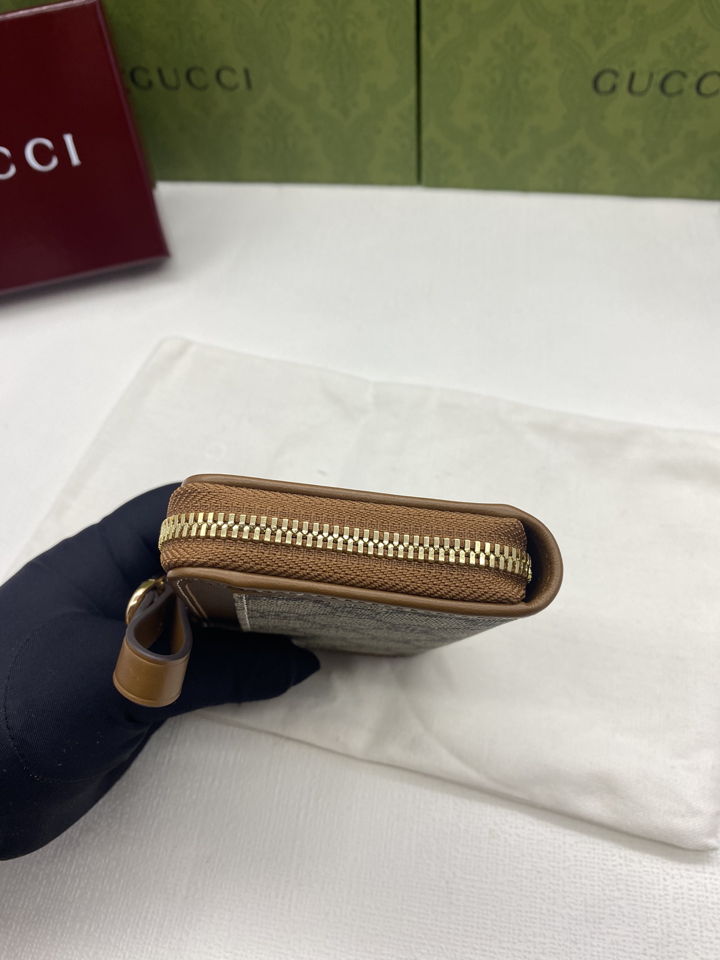 这款钱包是AAAAA 1:1 质量 (非常棒). 使用了和原版一模一样的材料. 商标部分也保持了和古奇/Gucci一样. 图片拍摄是实物钱包拍摄, 您所收到的实物保证和我们图片一模一样.