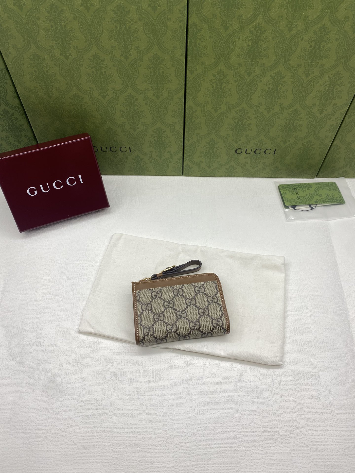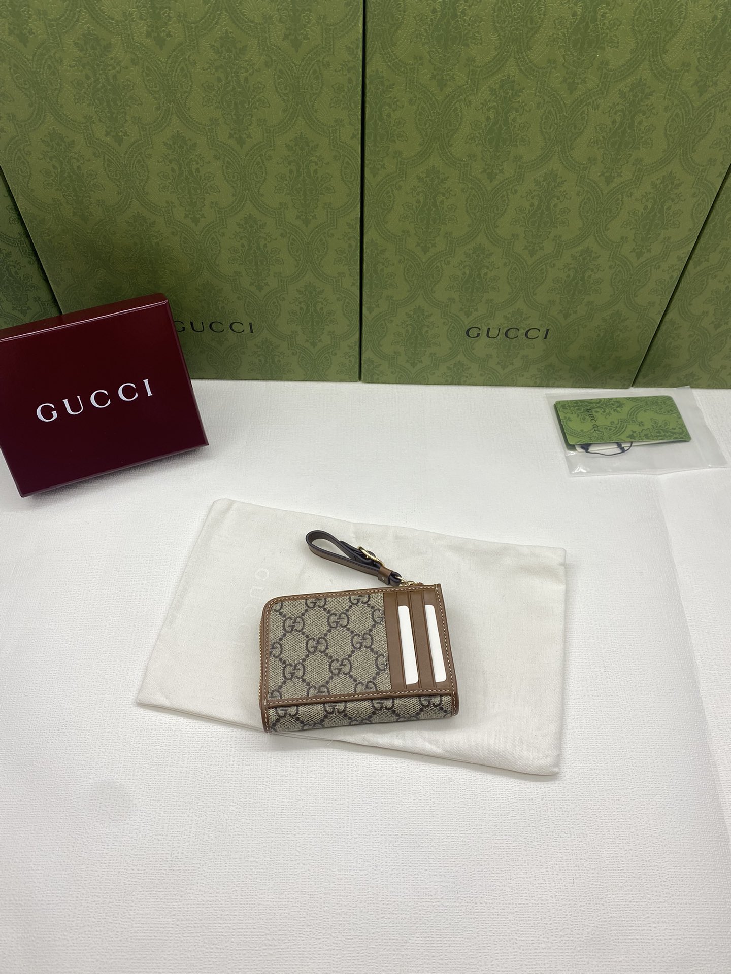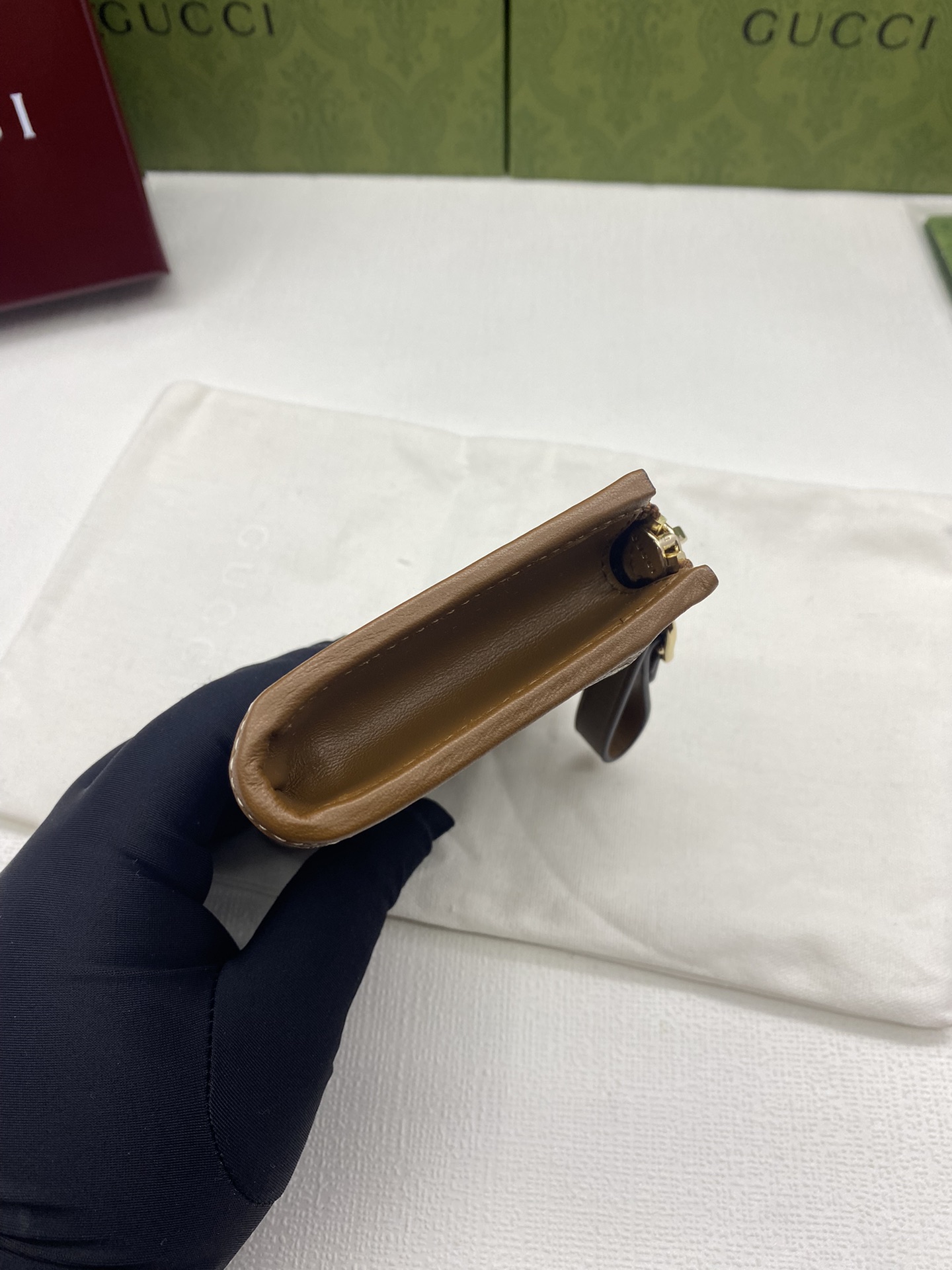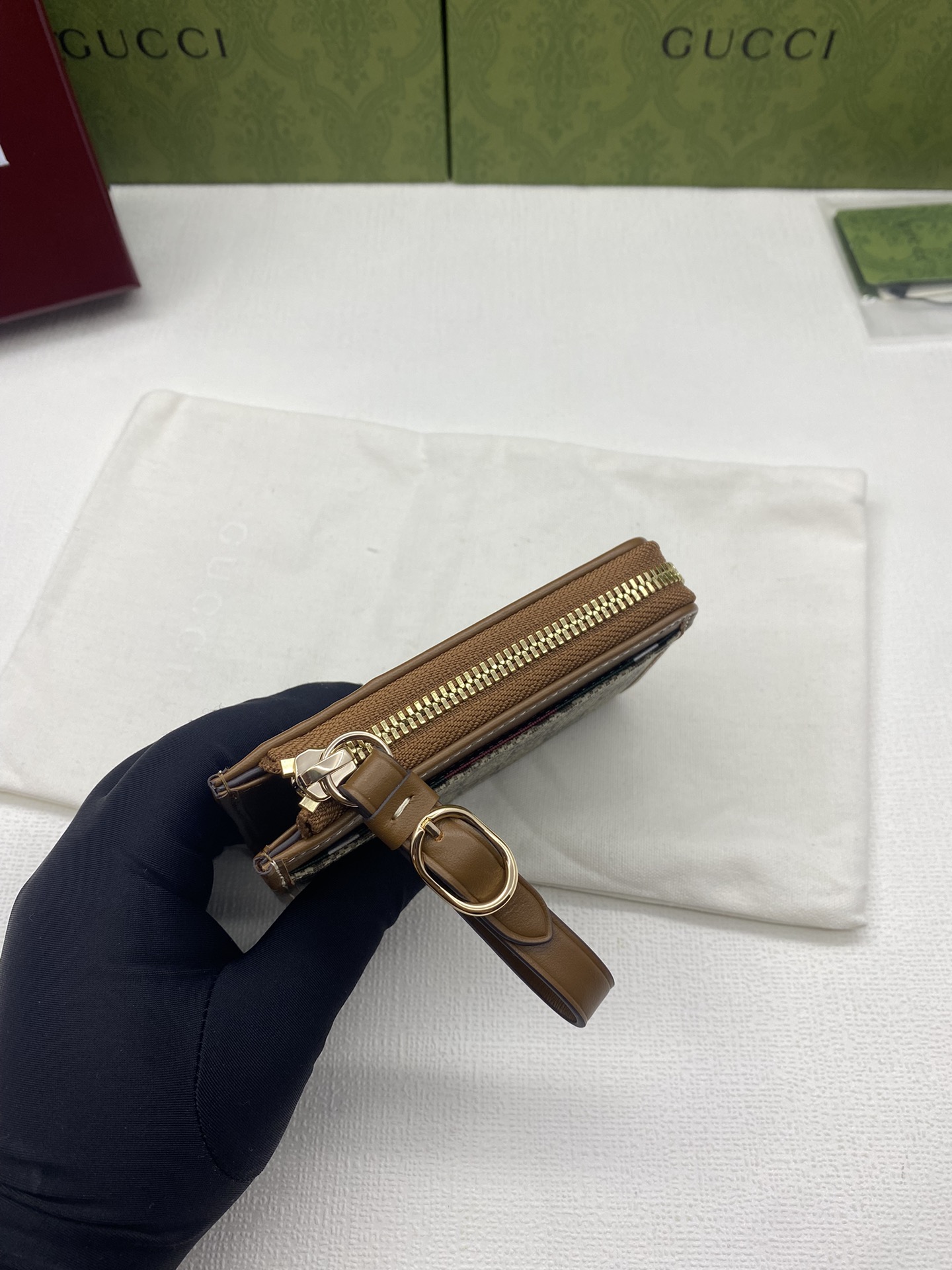 这款钱包是AAAAA 1:1 质量 (非常棒). 使用了和原版一模一样的材料. 商标部分也保持了和古奇/Gucci一样. 图片拍摄是实物钱包拍摄, 您所收到的实物保证和我们图片一模一样.