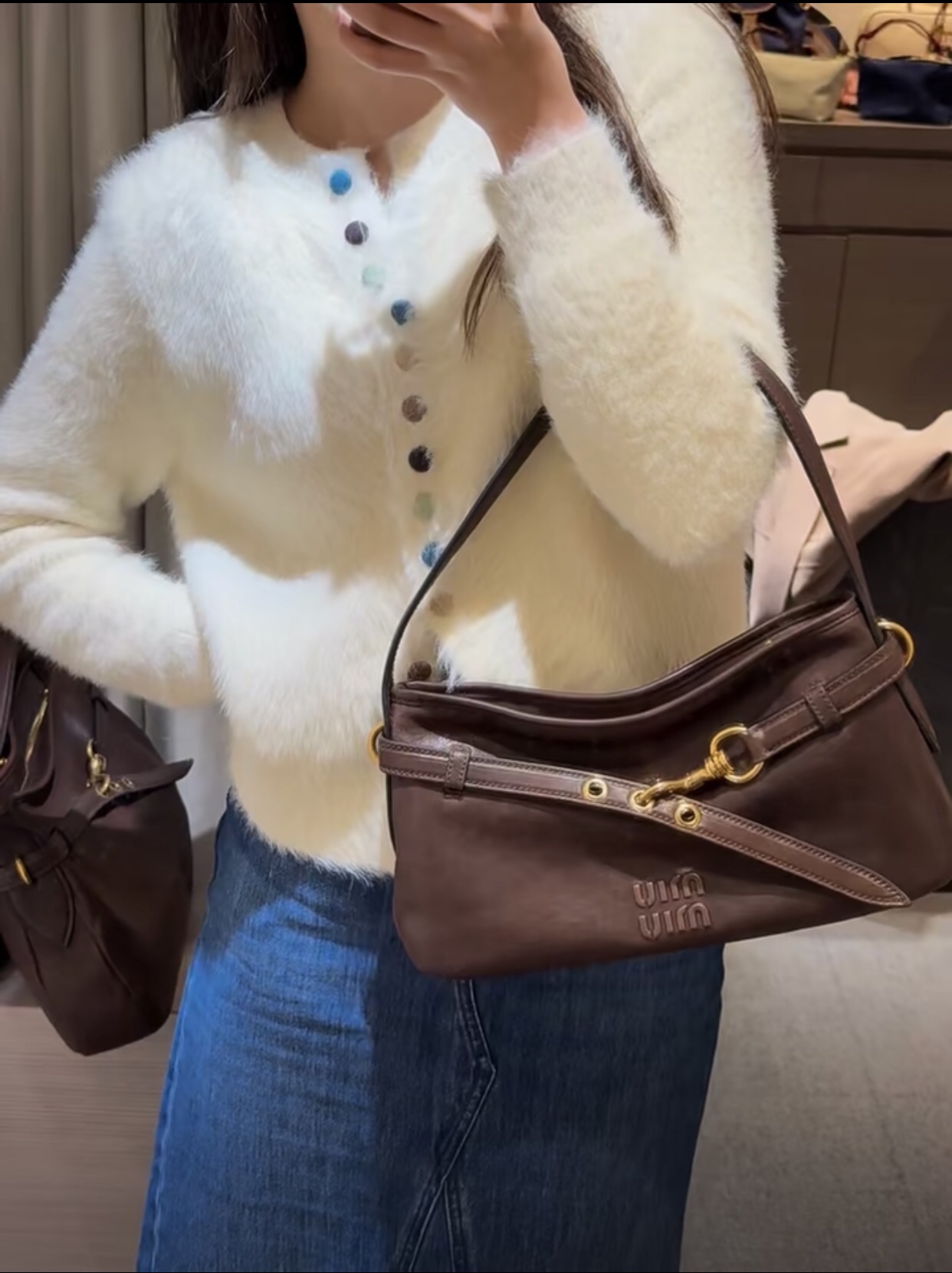 这款包包是AAAAA 1:1 质量 (非常棒). 使用了和原版一模一样的材料. 商标部分也保持了和缪缪/Miu Miu一样. 图片拍摄是实物包包拍摄, 您所收到的实物保证和我们图片一模一样.