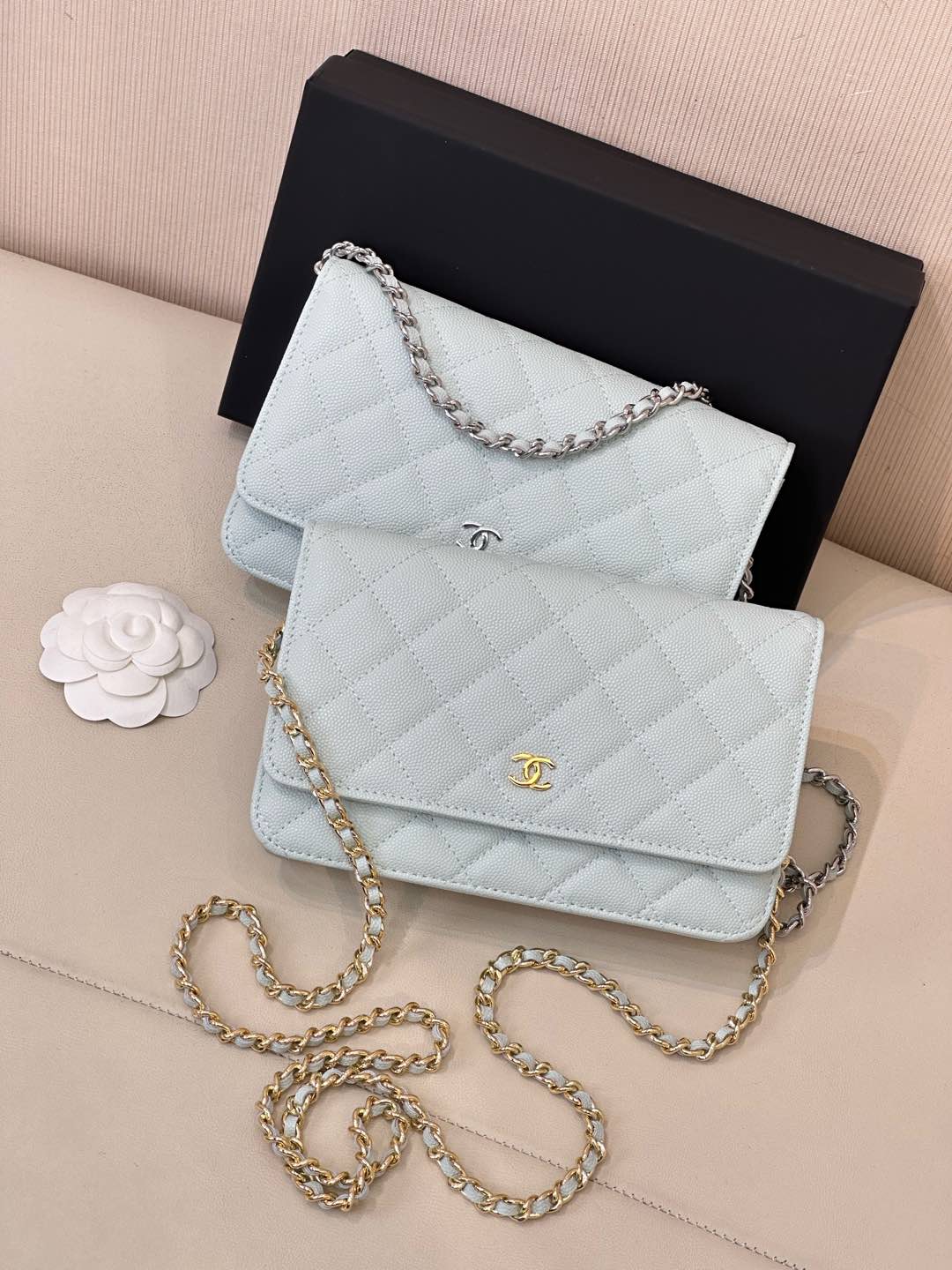 这款包包是AAAAA 1:1 质量 (非常棒). 使用了和原版一模一样的材料. 商标部分也保持了和香奈儿/Chanel一样. 图片拍摄是实物包包拍摄, 您所收到的实物保证和我们图片一模一样.