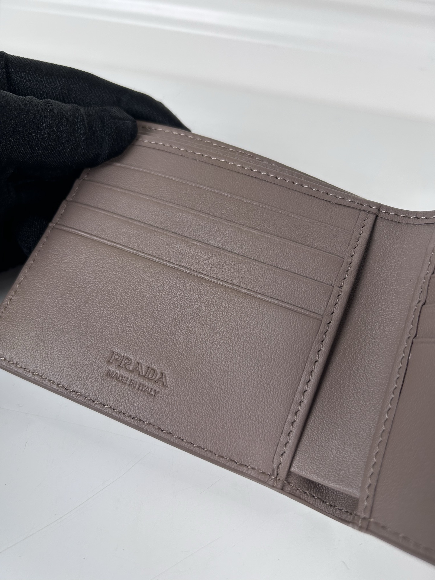 这款钱包是AAAAA 1:1 质量 (非常棒). 使用了和原版一模一样的材料. 商标部分也保持了和普拉达/Prada一样. 图片拍摄是实物钱包拍摄, 您所收到的实物保证和我们图片一模一样.
