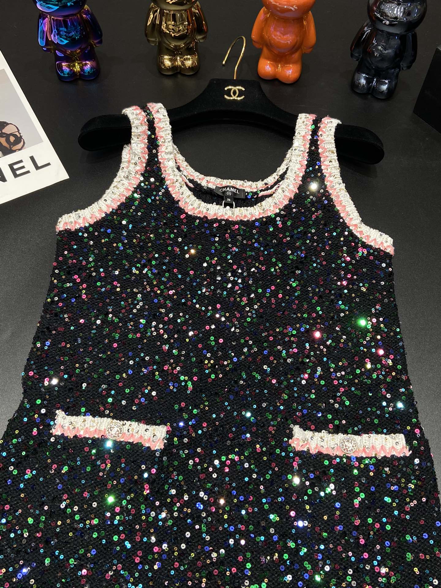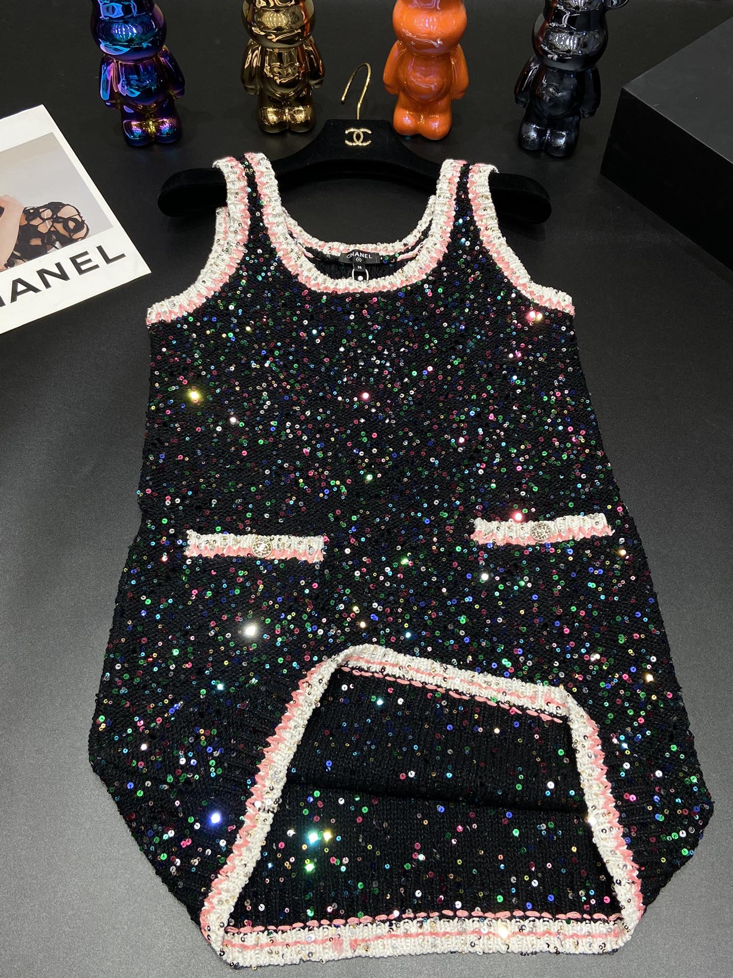 这款衣服是AAAAA 1:1 质量 (非常棒). 使用了和原版一模一样的材料. 商标部分也保持了和香奈儿/Chanel一样. 图片拍摄是实物衣服拍摄, 您所收到的实物保证和我们图片一模一样.