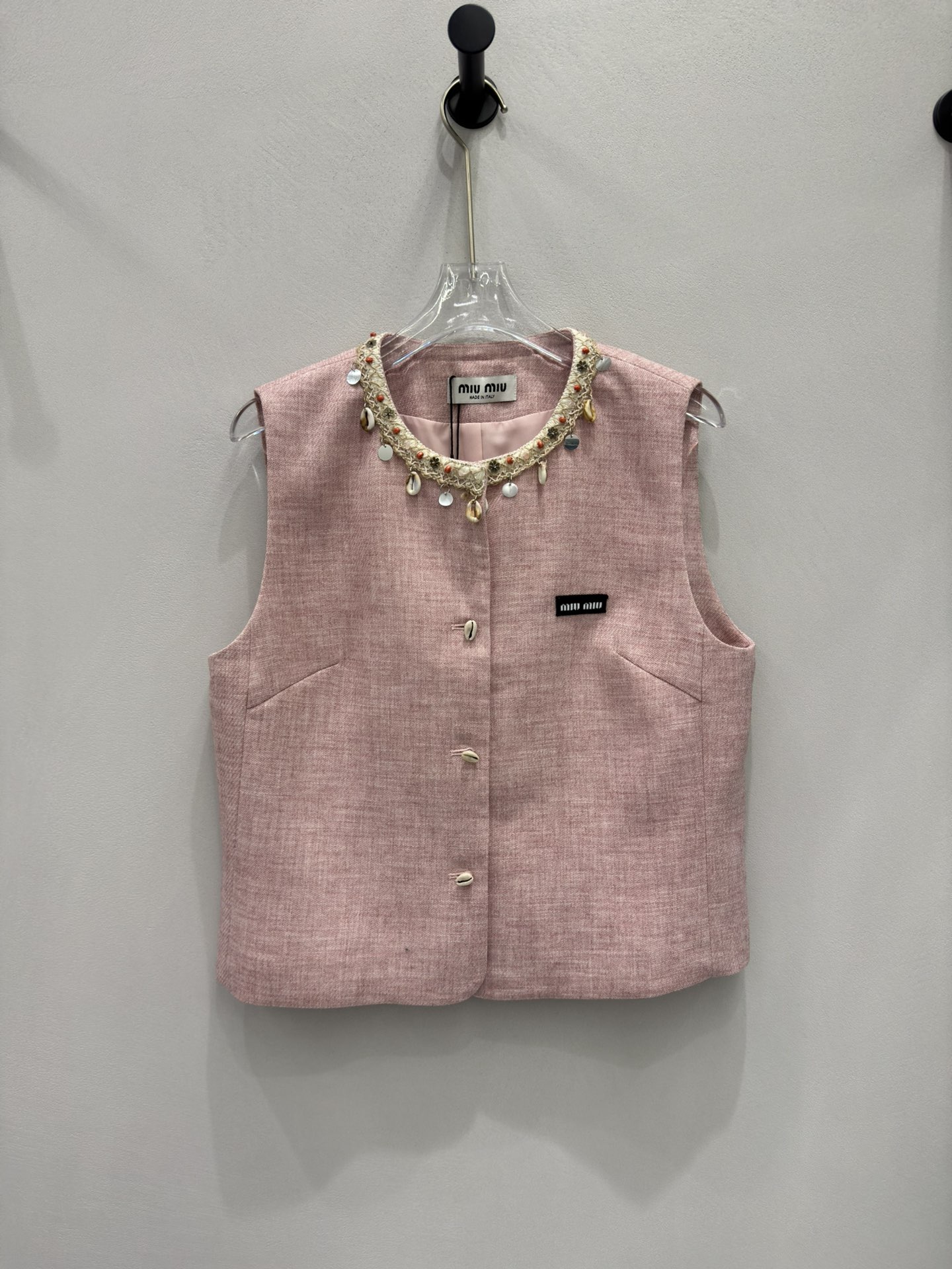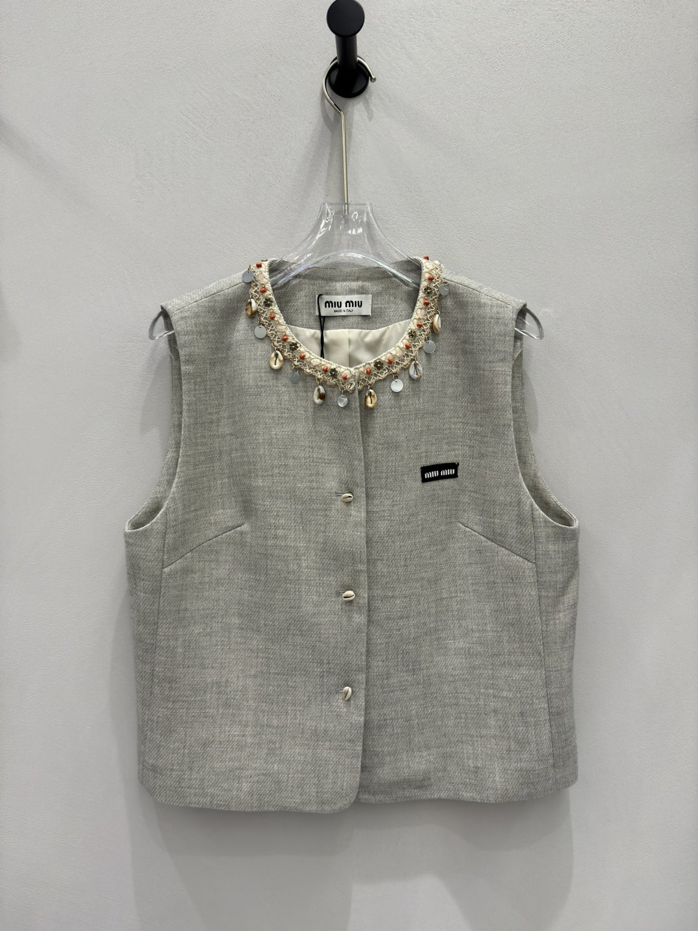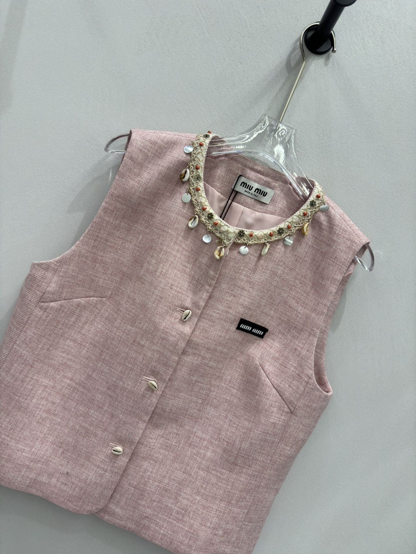 这款衣服是AAAAA 1:1 质量 (非常棒). 使用了和原版一模一样的材料. 商标部分也保持了和缪缪/Miu Miu一样. 图片拍摄是实物衣服拍摄, 您所收到的实物保证和我们图片一模一样.