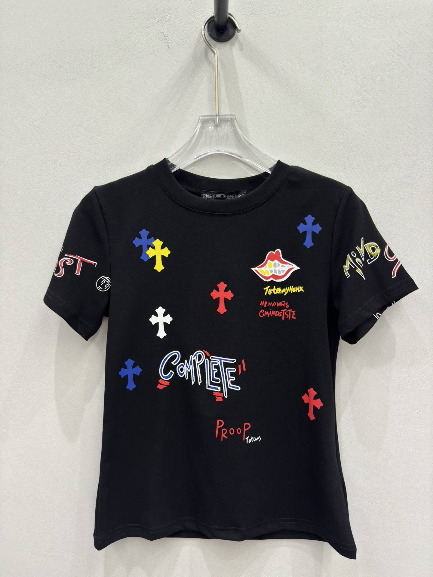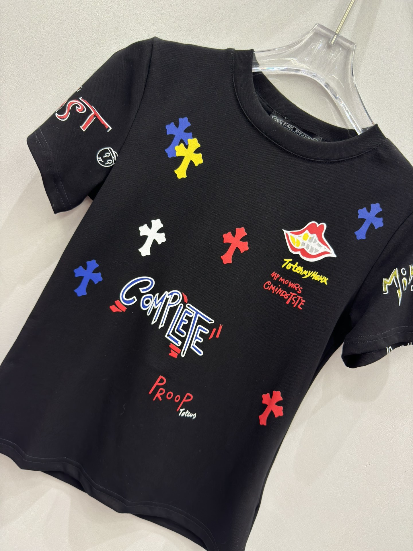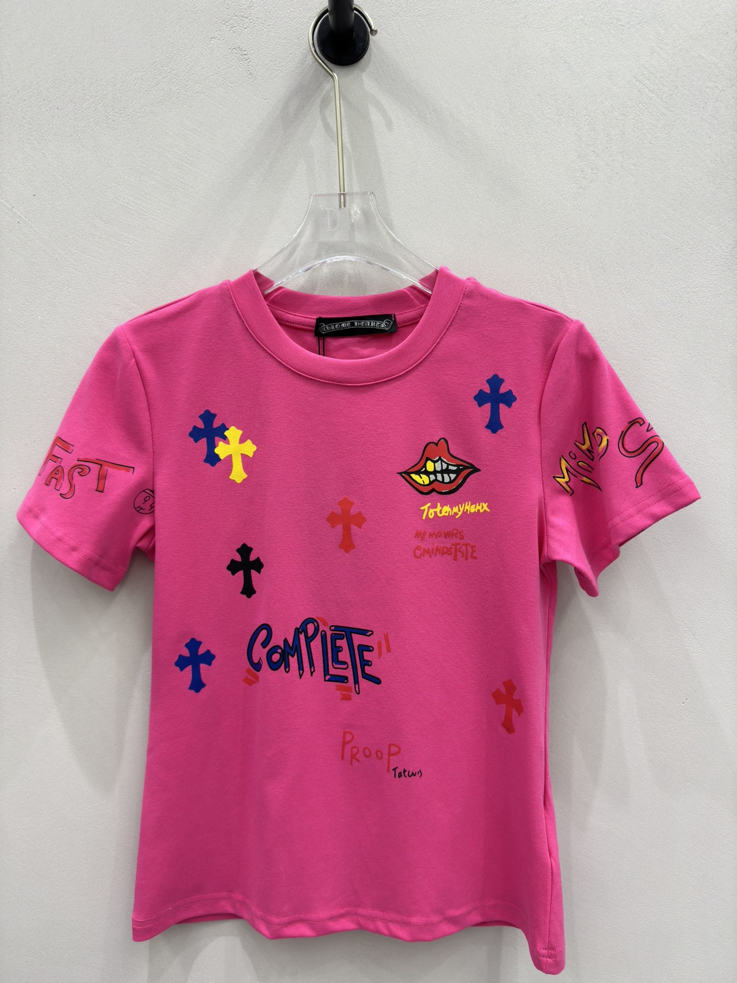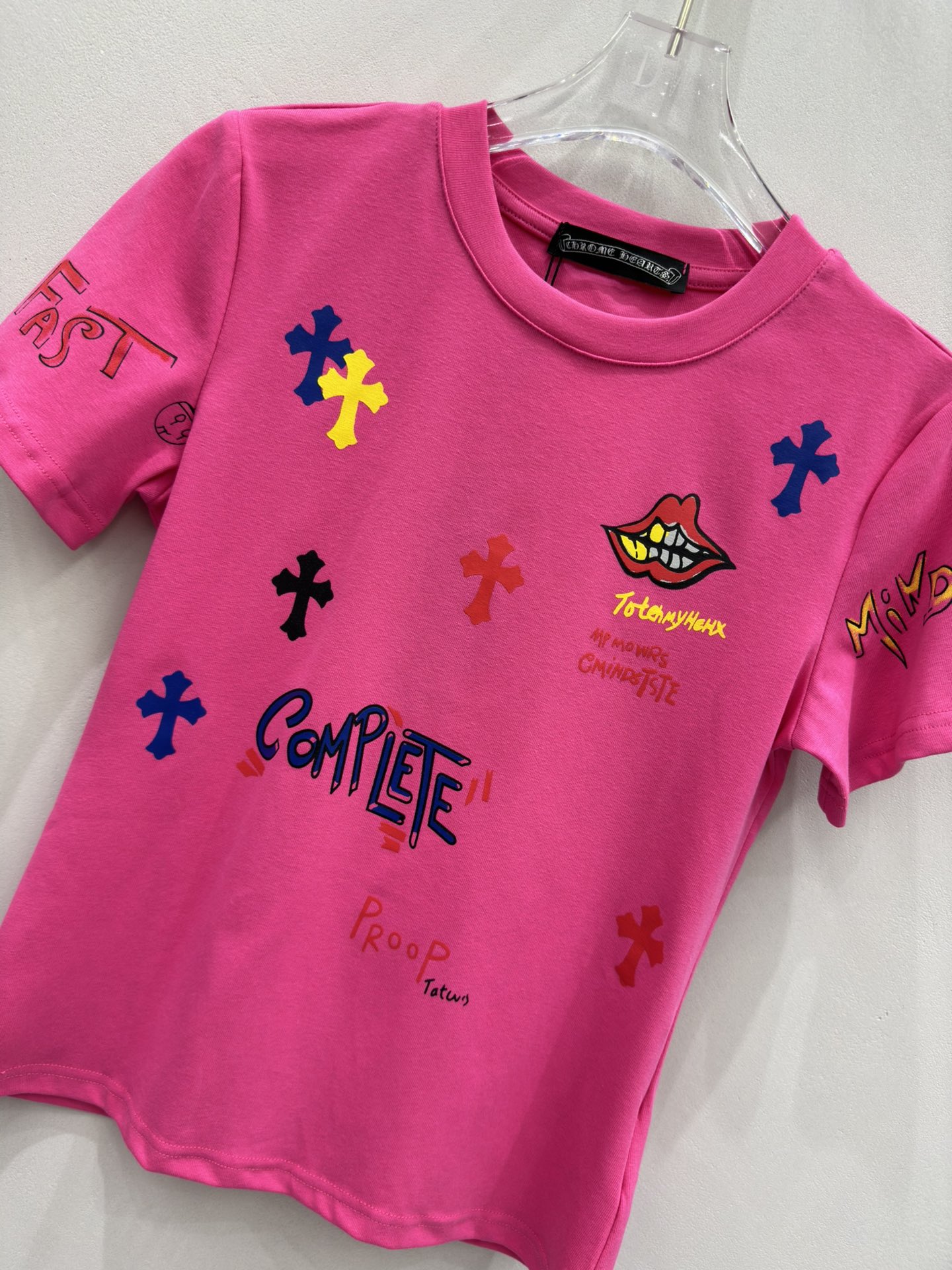 这款衣服是AAAAA 1:1 质量 (非常棒). 使用了和原版一模一样的材料. 商标部分也保持了和克罗心/Chrome Hearts一样. 图片拍摄是实物衣服拍摄, 您所收到的实物保证和我们图片一模一样.