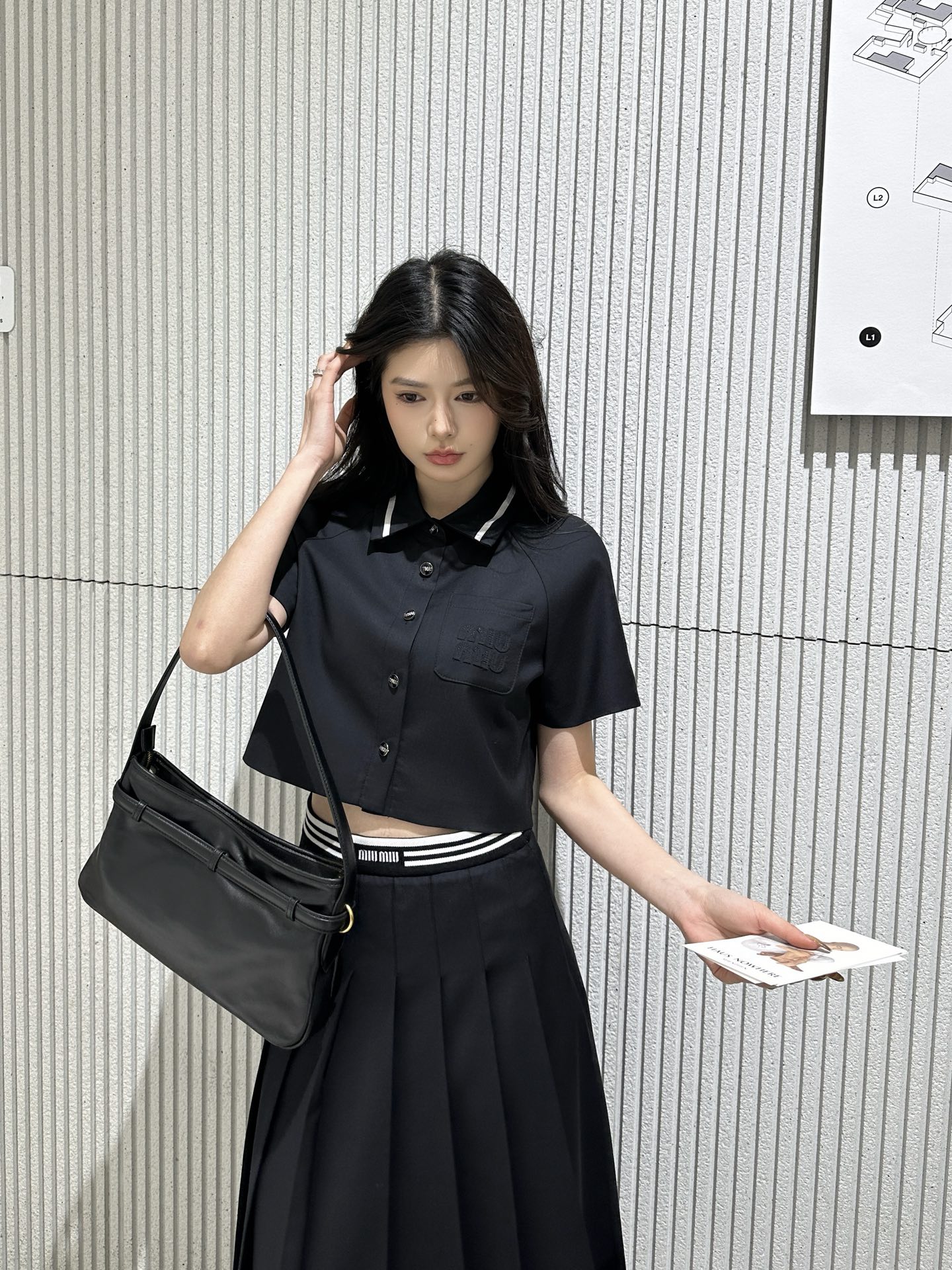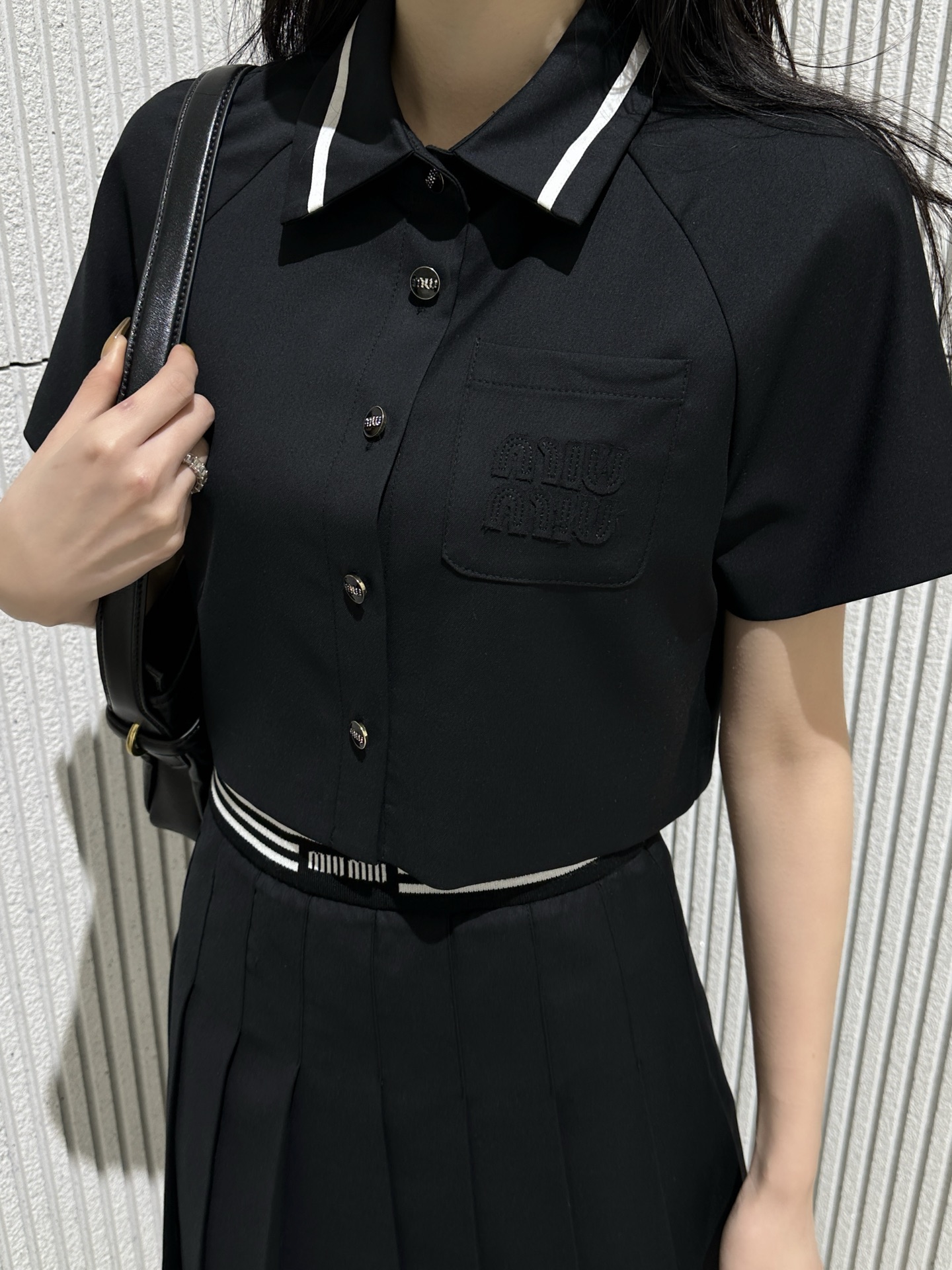 这款衣服是AAAAA 1:1 质量 (非常棒). 使用了和原版一模一样的材料. 商标部分也保持了和缪缪/Miu Miu一样. 图片拍摄是实物衣服拍摄, 您所收到的实物保证和我们图片一模一样.