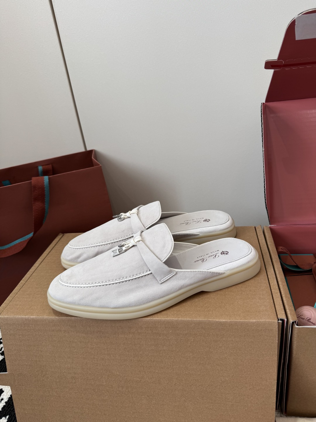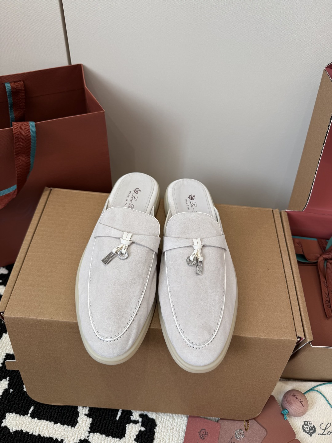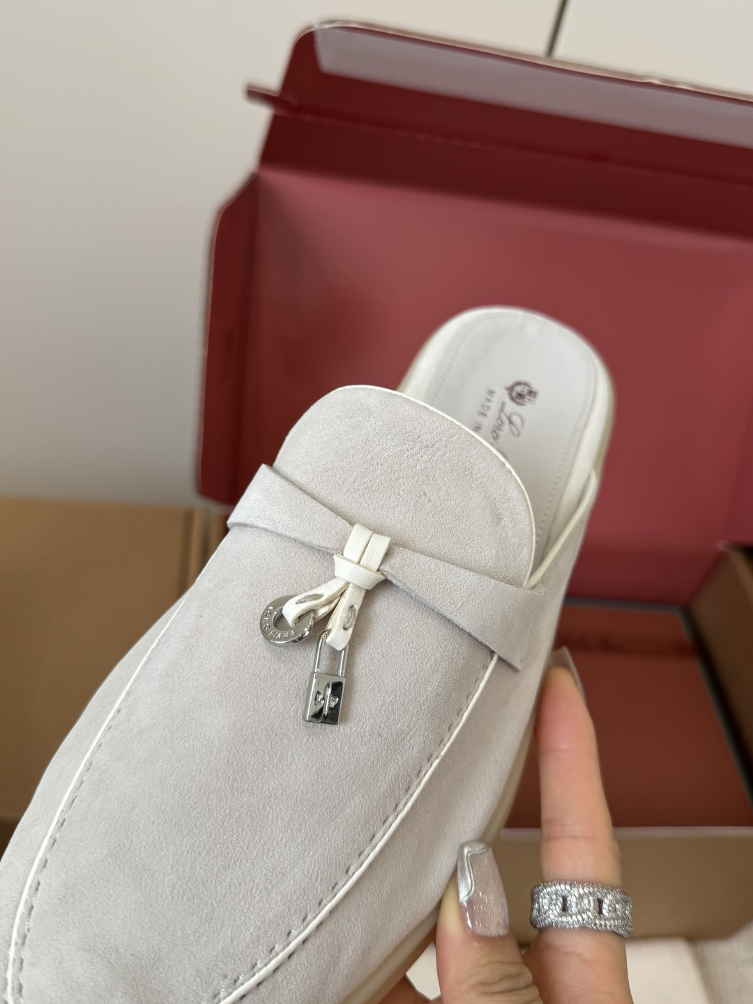 这款鞋子是AAAAA 1:1 质量 (非常棒). 使用了和原版一模一样的材料. 商标部分也保持了和洛罗皮亚纳/Loro Piana一样. 图片拍摄是实物鞋子拍摄, 您所收到的实物保证和我们图片一模一样.