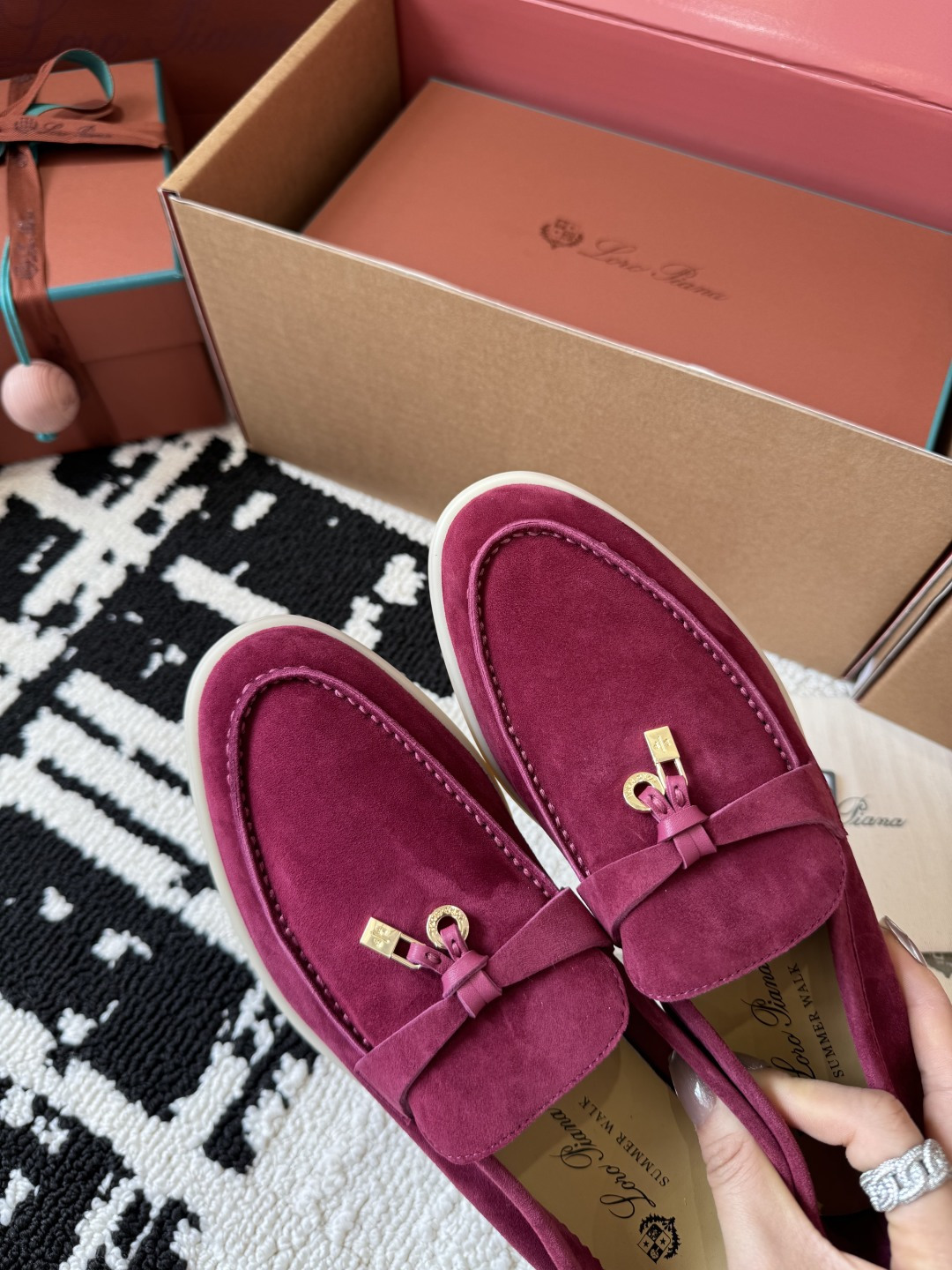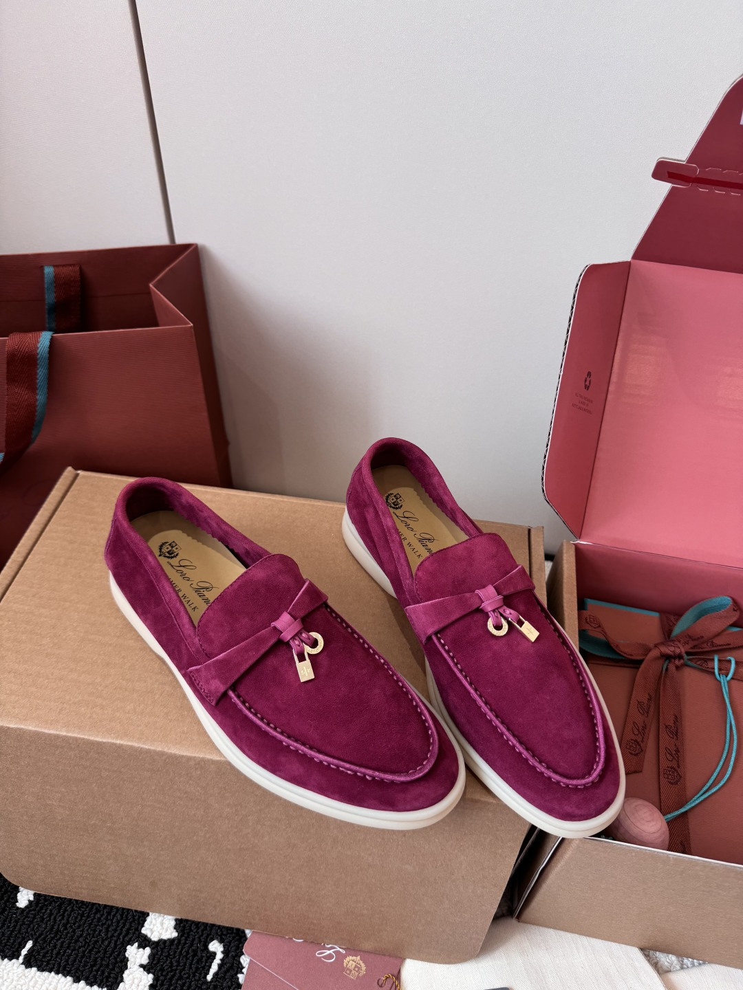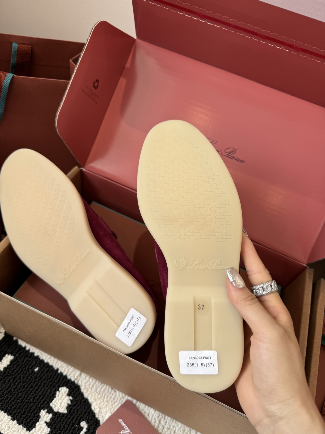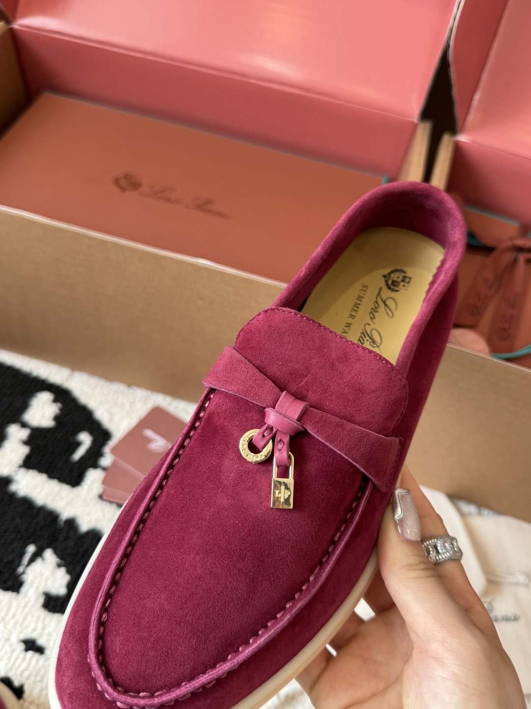 这款鞋子是AAAAA 1:1 质量 (非常棒). 使用了和原版一模一样的材料. 商标部分也保持了和洛罗皮亚纳/Loro Piana一样. 图片拍摄是实物鞋子拍摄, 您所收到的实物保证和我们图片一模一样.