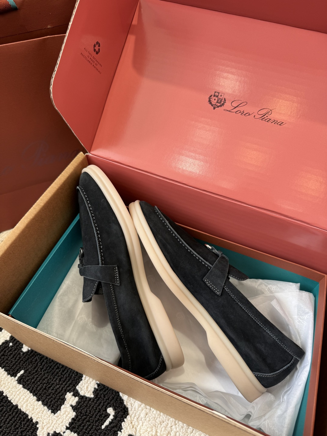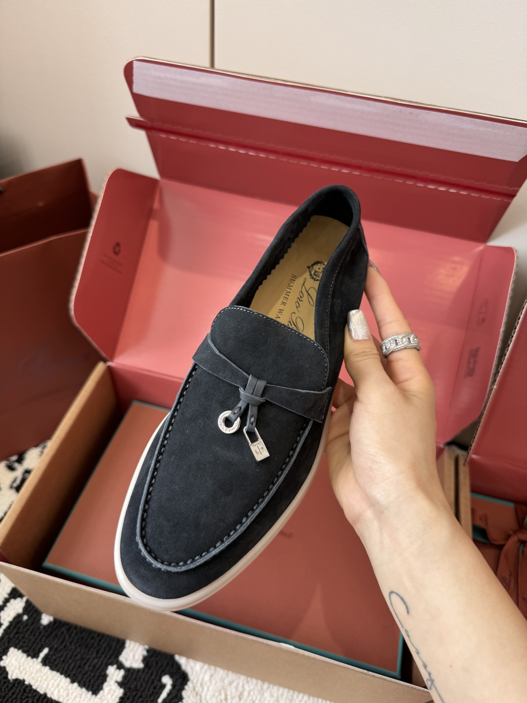 这款鞋子是AAAAA 1:1 质量 (非常棒). 使用了和原版一模一样的材料. 商标部分也保持了和洛罗皮亚纳/Loro Piana一样. 图片拍摄是实物鞋子拍摄, 您所收到的实物保证和我们图片一模一样.