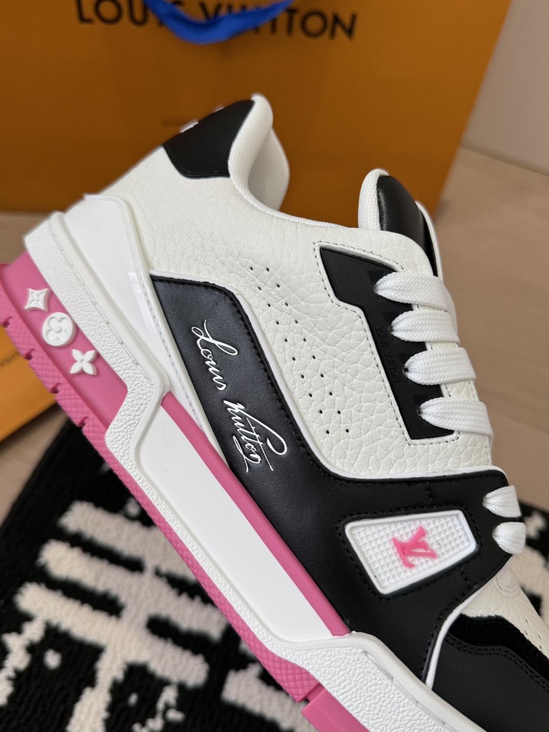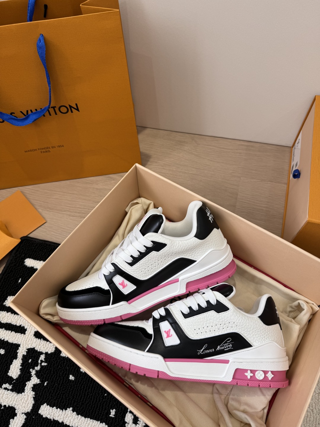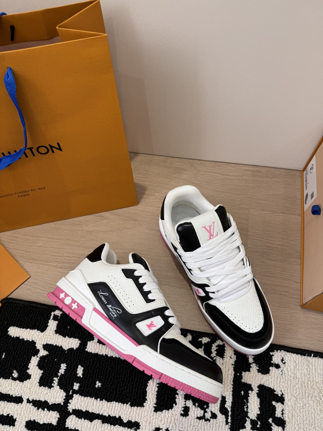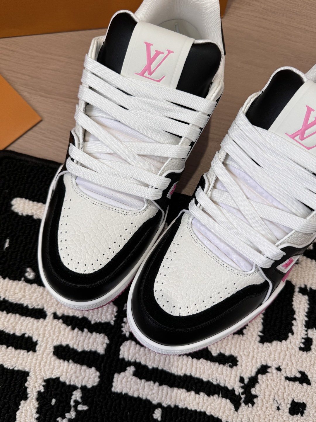 这款鞋子是AAAAA 1:1 质量 (非常棒). 使用了和原版一模一样的材料. 商标部分也保持了和路易威登/Louis Vuitton一样. 图片拍摄是实物鞋子拍摄, 您所收到的实物保证和我们图片一模一样.