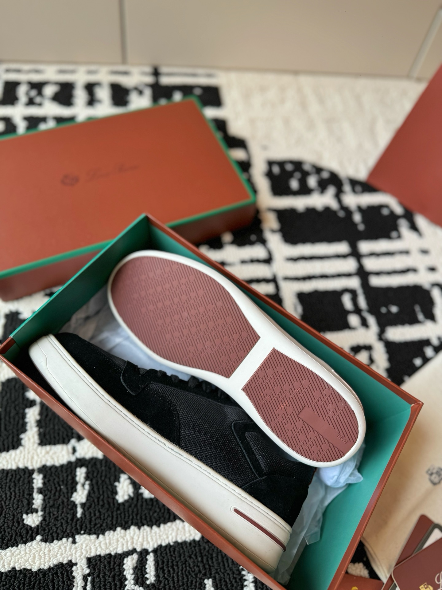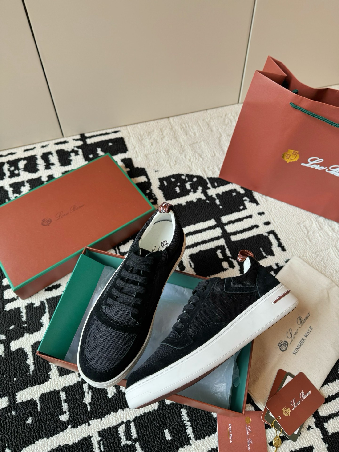这款鞋子是AAAAA 1:1 质量 (非常棒). 使用了和原版一模一样的材料. 商标部分也保持了和洛罗皮亚纳/Loro Piana一样. 图片拍摄是实物鞋子拍摄, 您所收到的实物保证和我们图片一模一样.
