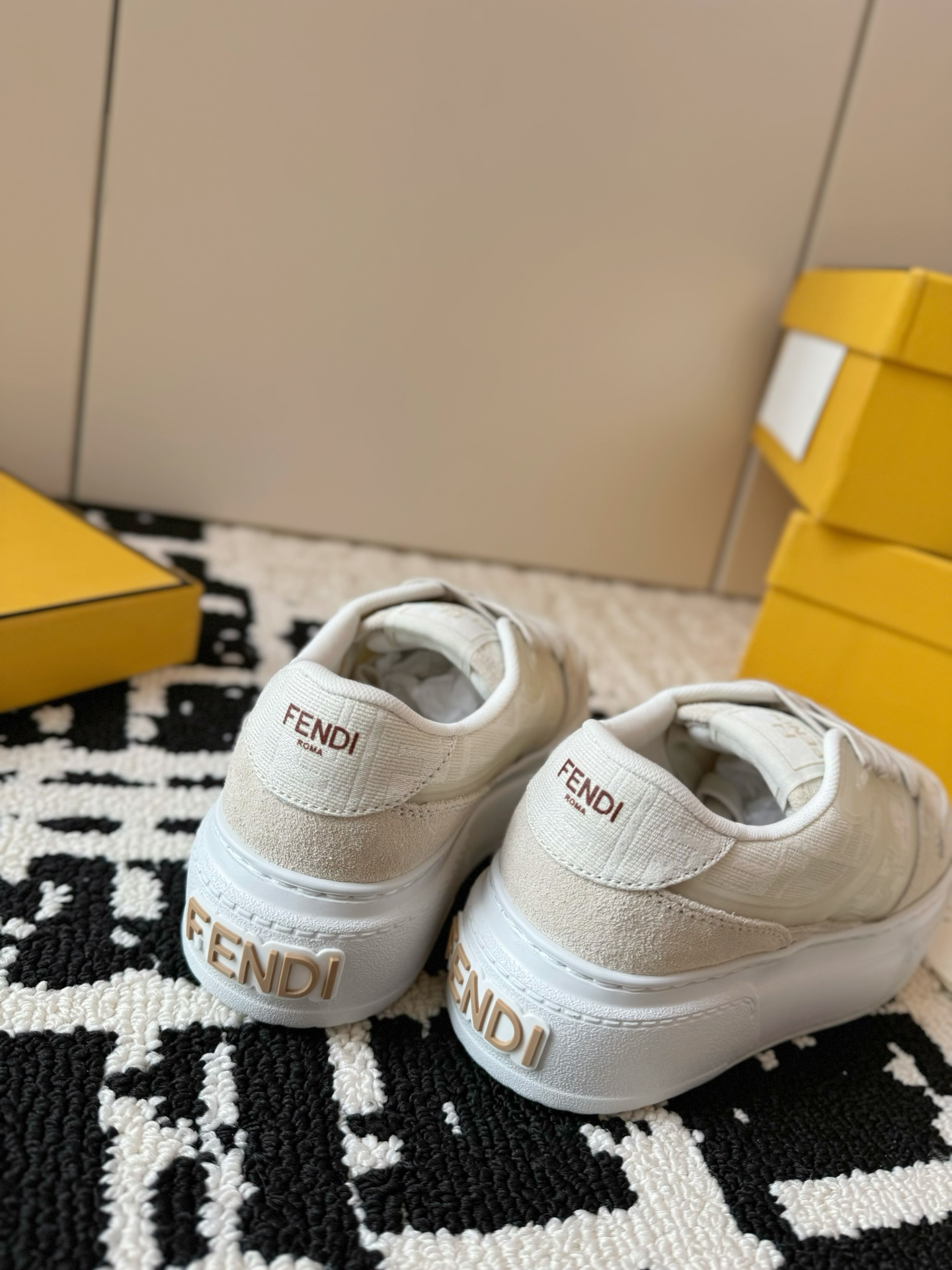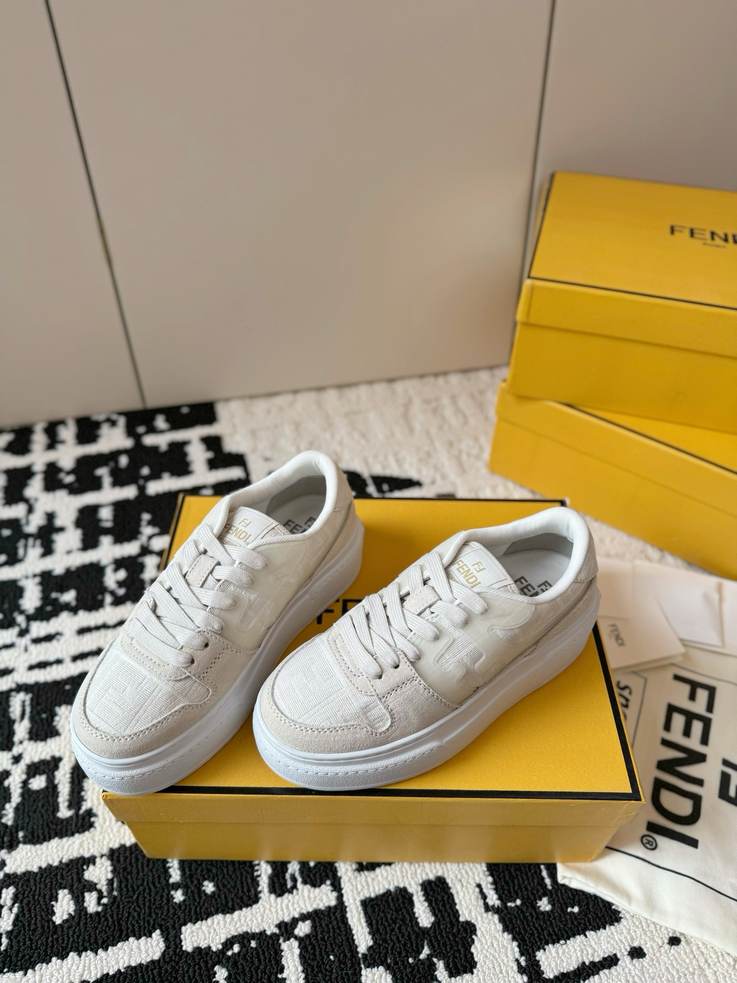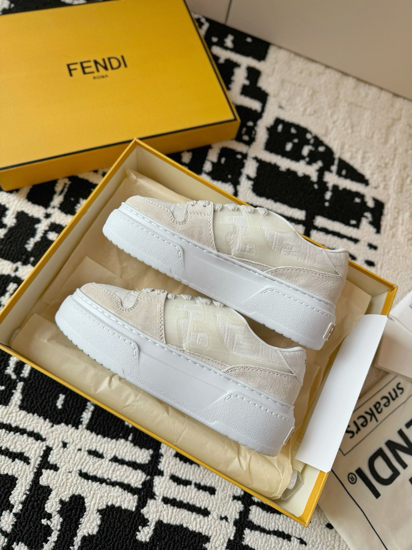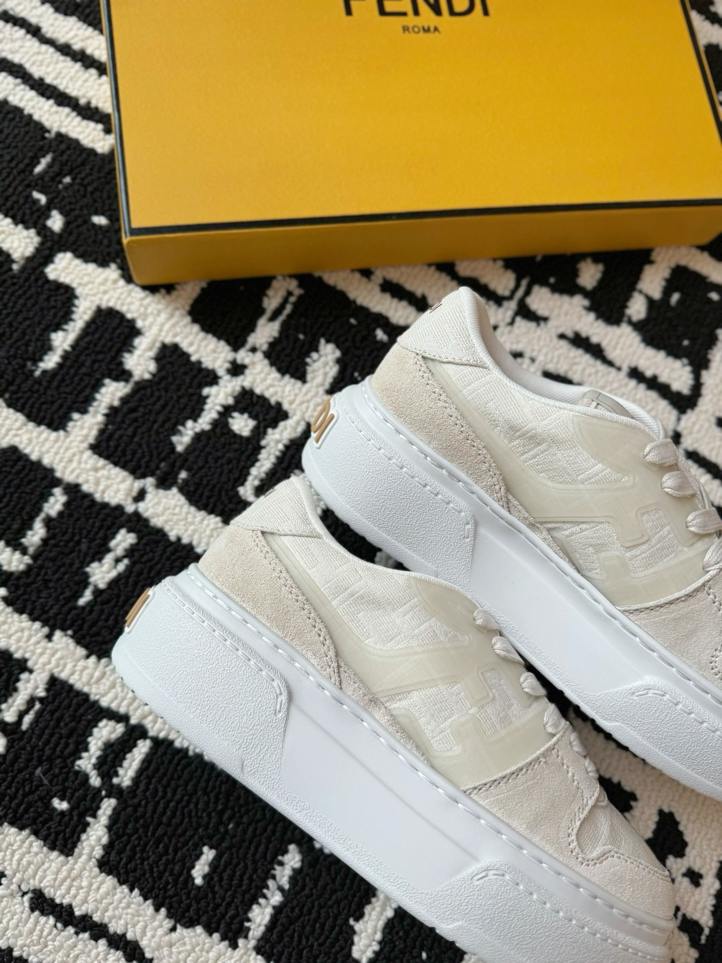 这款鞋子是AAAAA 1:1 质量 (非常棒). 使用了和原版一模一样的材料. 商标部分也保持了和芬迪/Fendi一样. 图片拍摄是实物鞋子拍摄, 您所收到的实物保证和我们图片一模一样.