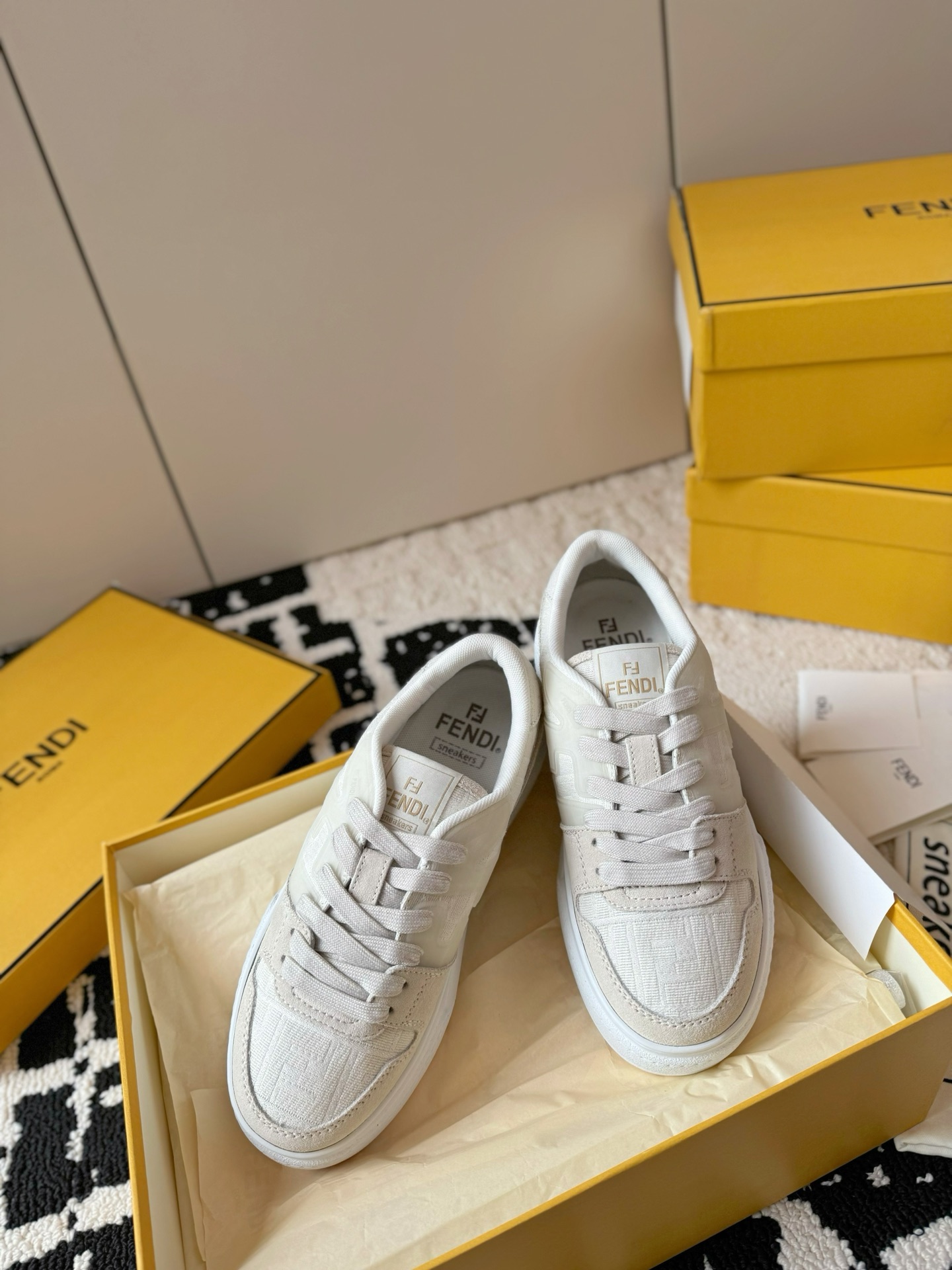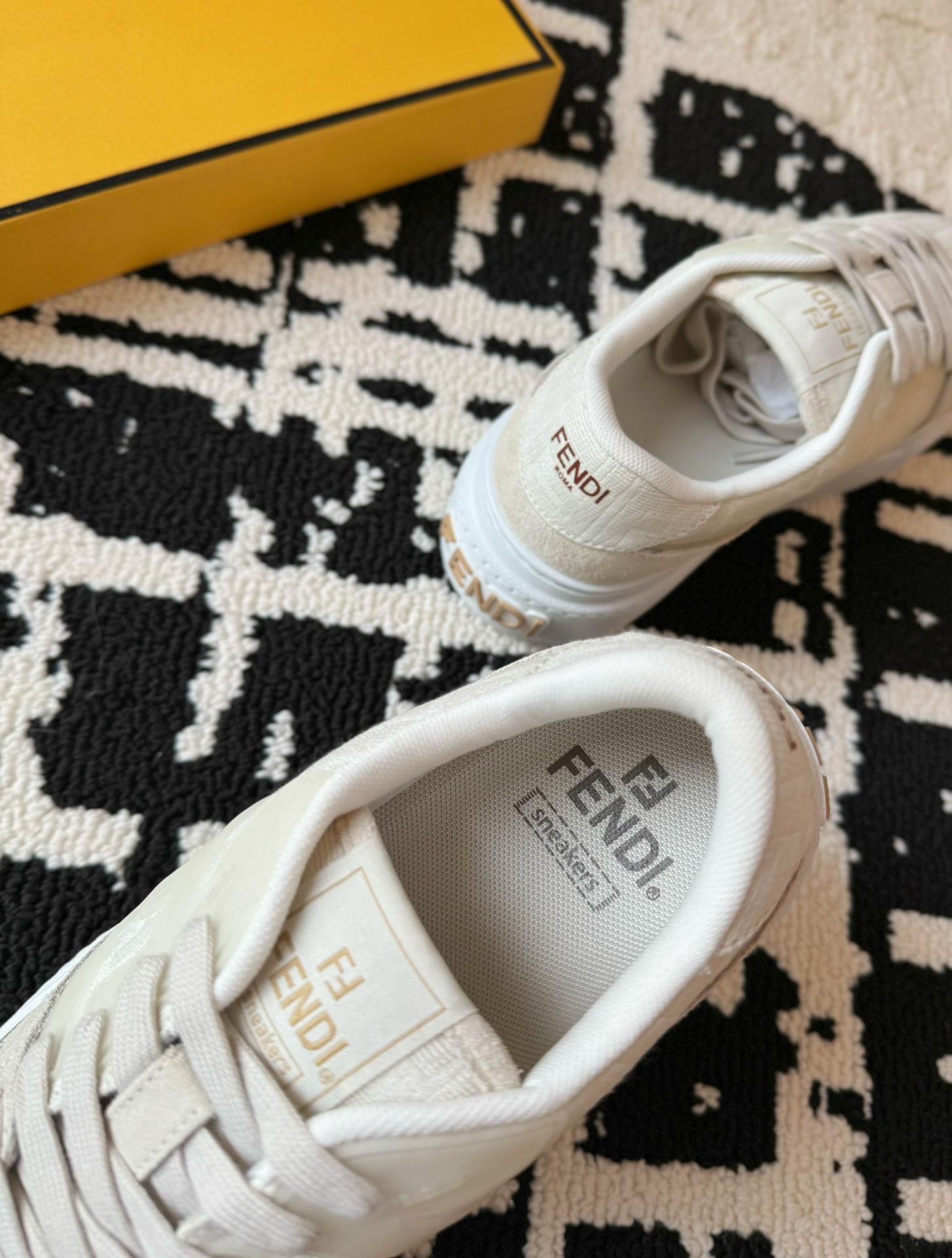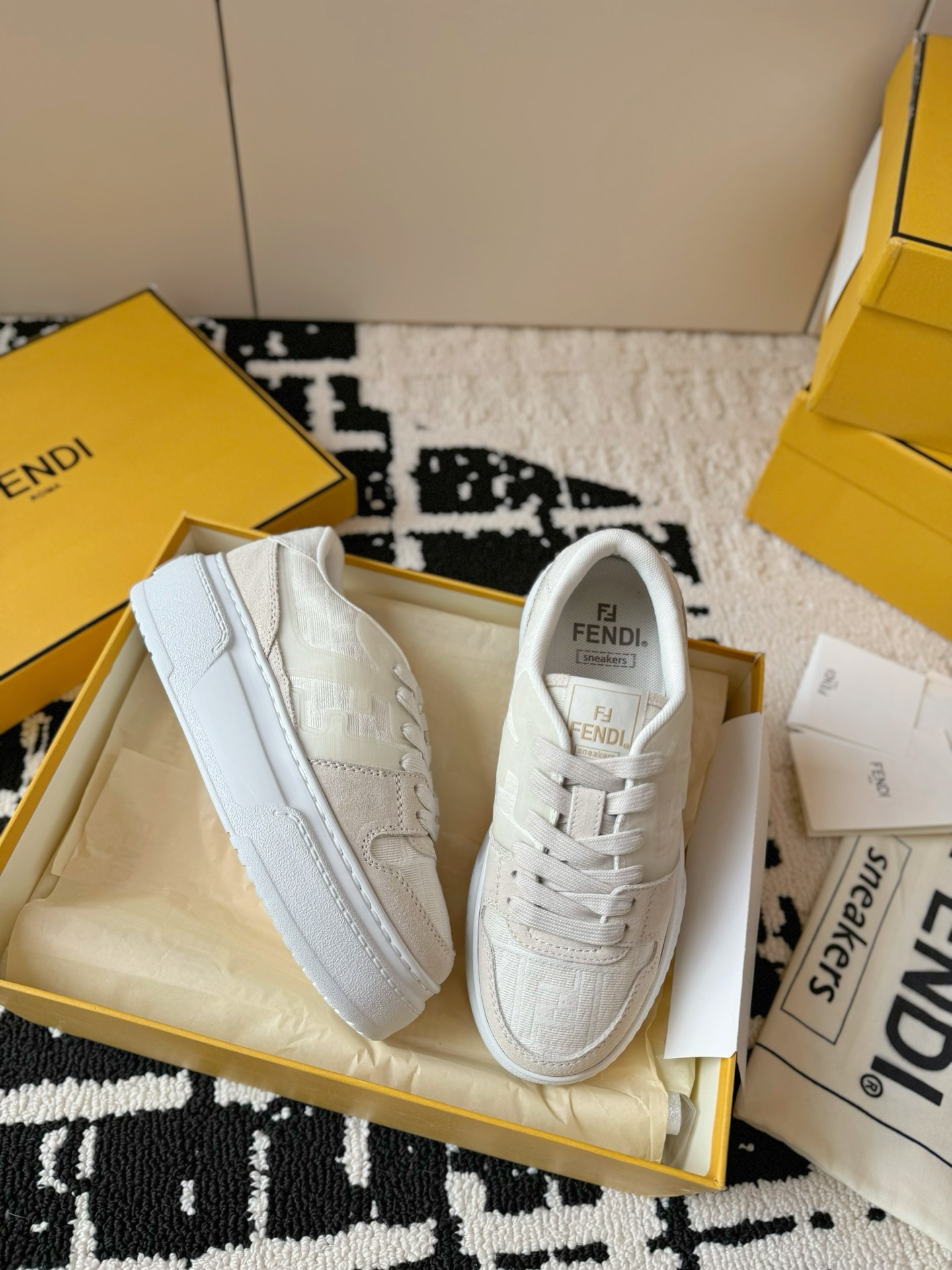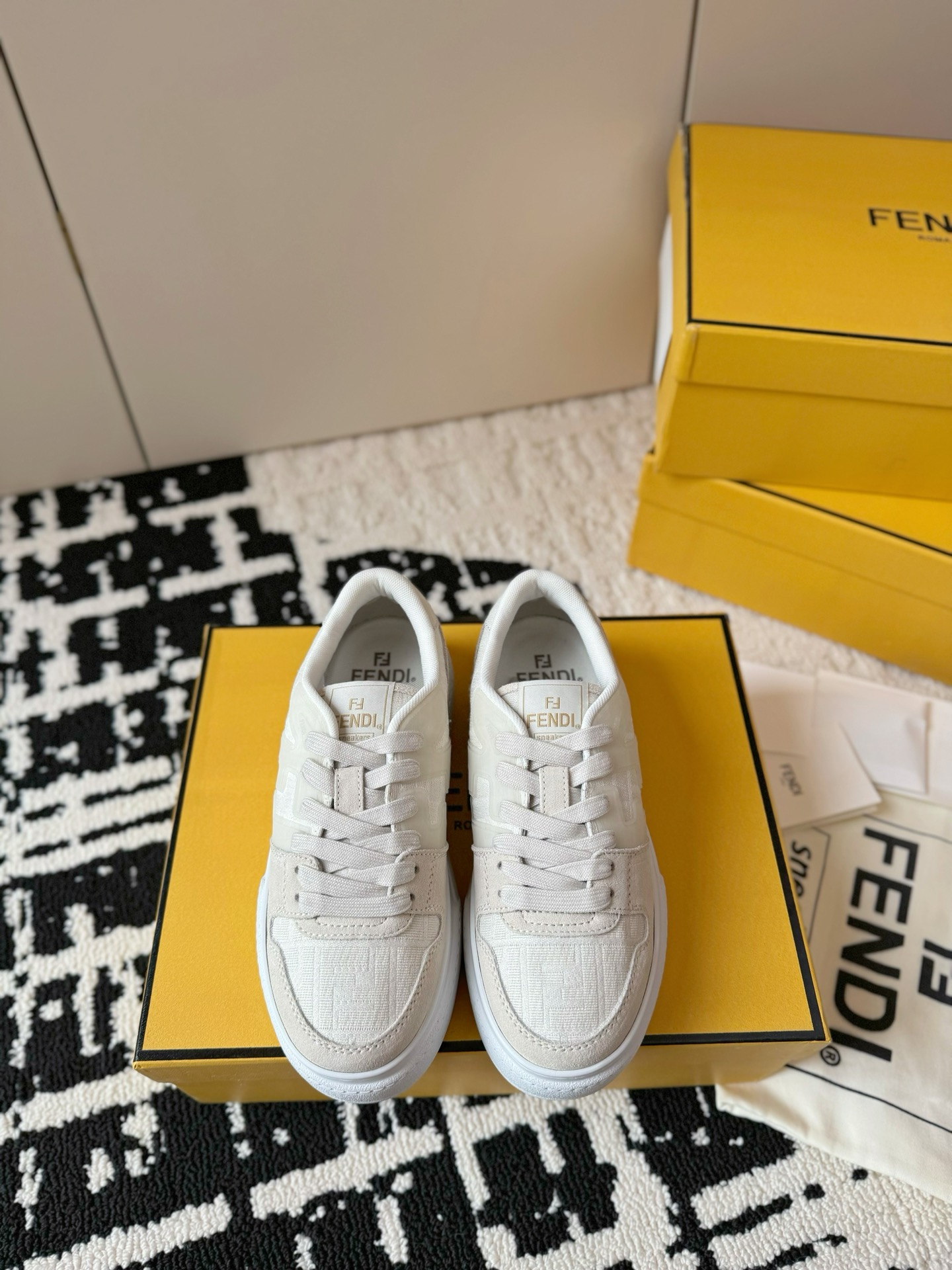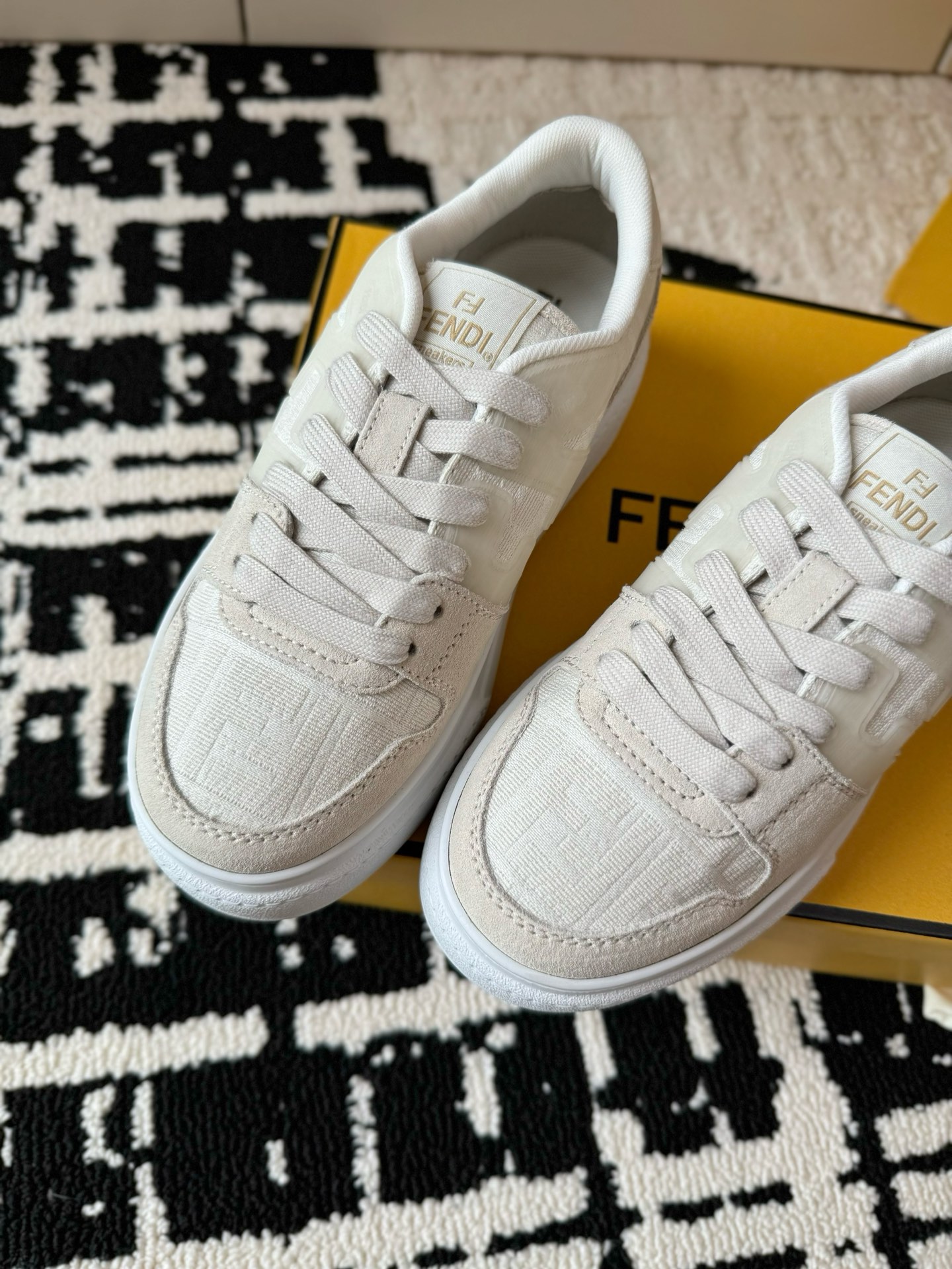 这款鞋子是AAAAA 1:1 质量 (非常棒). 使用了和原版一模一样的材料. 商标部分也保持了和芬迪/Fendi一样. 图片拍摄是实物鞋子拍摄, 您所收到的实物保证和我们图片一模一样.