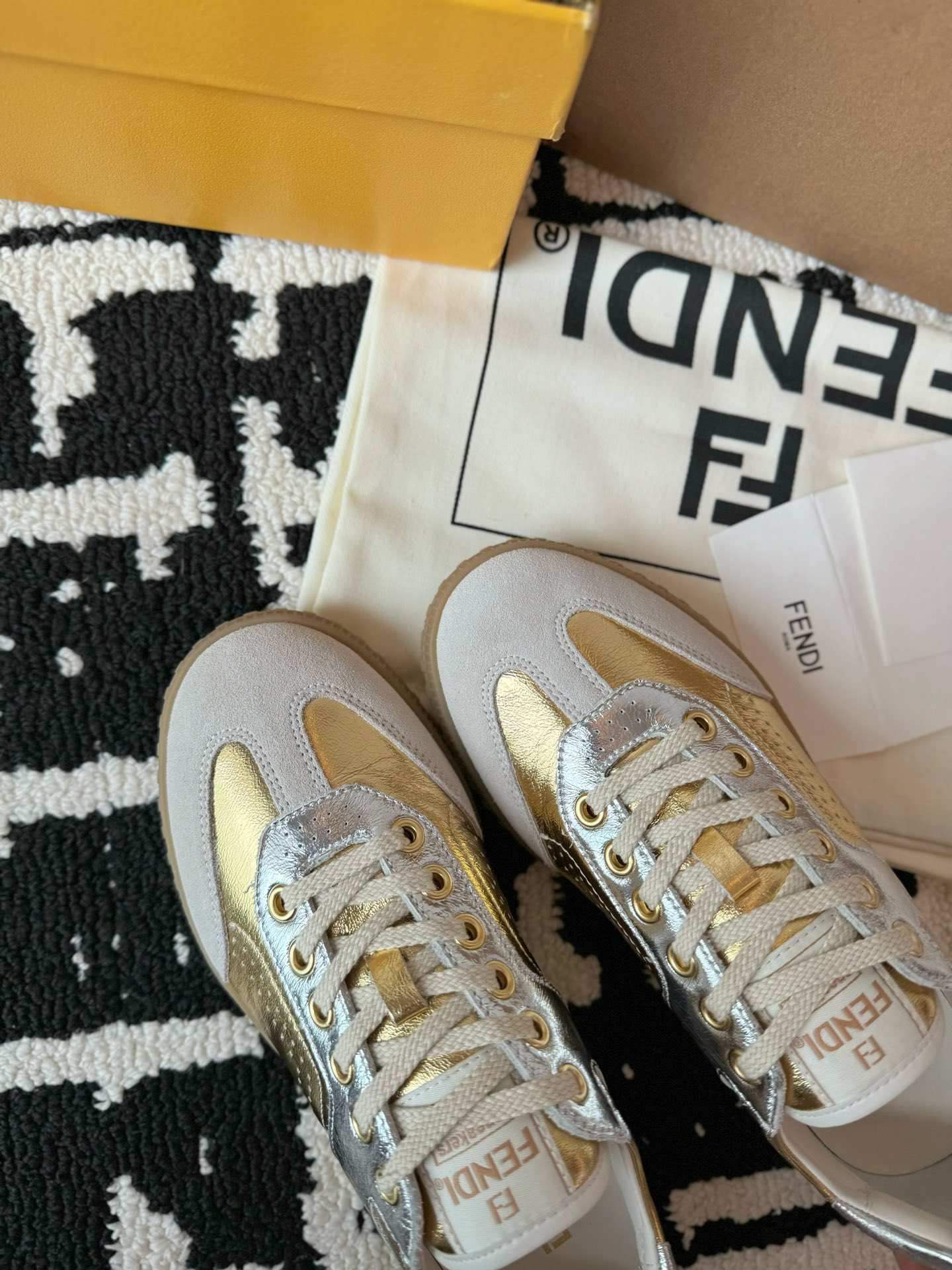 这款鞋子是AAAAA 1:1 质量 (非常棒). 使用了和原版一模一样的材料. 商标部分也保持了和芬迪/Fendi一样. 图片拍摄是实物鞋子拍摄, 您所收到的实物保证和我们图片一模一样.