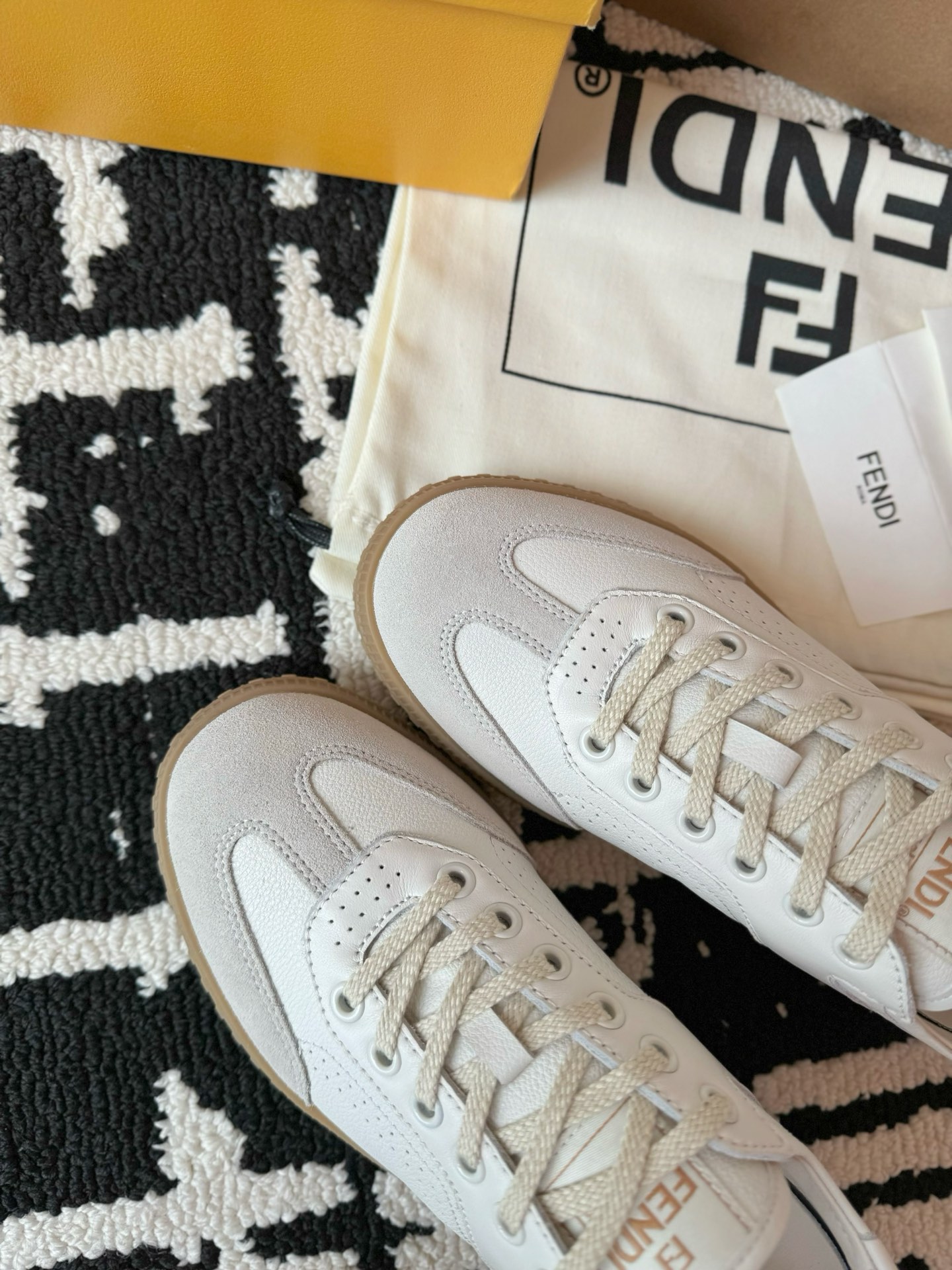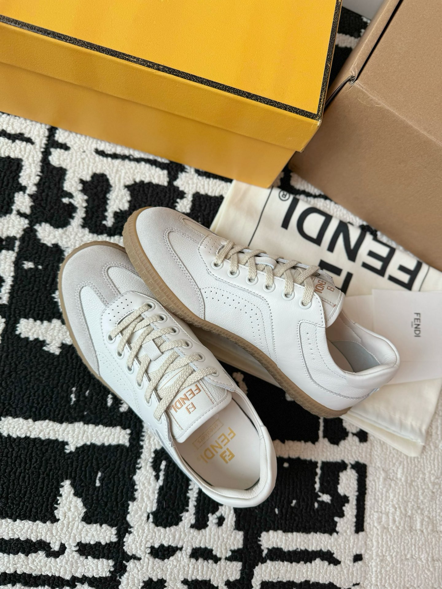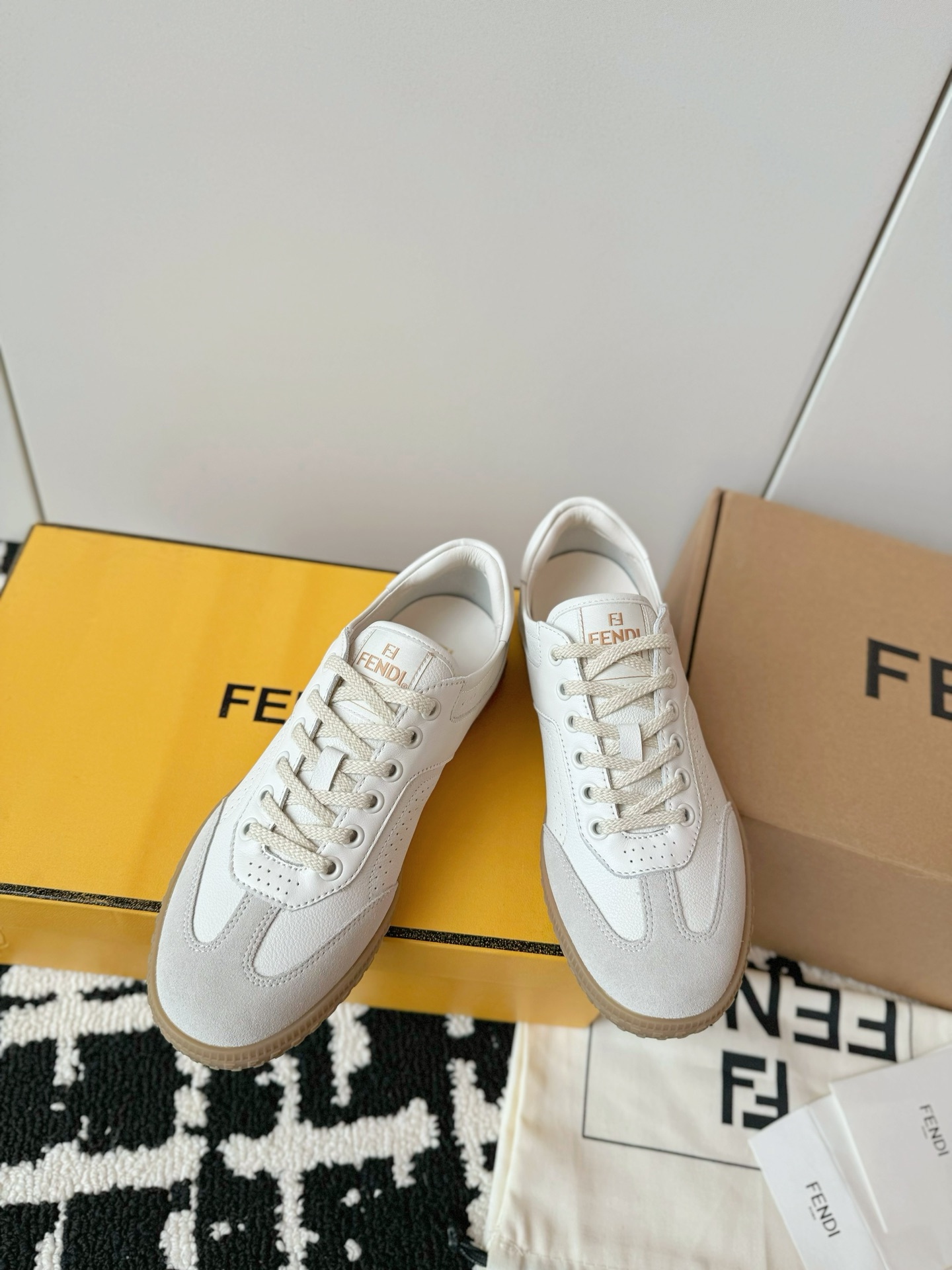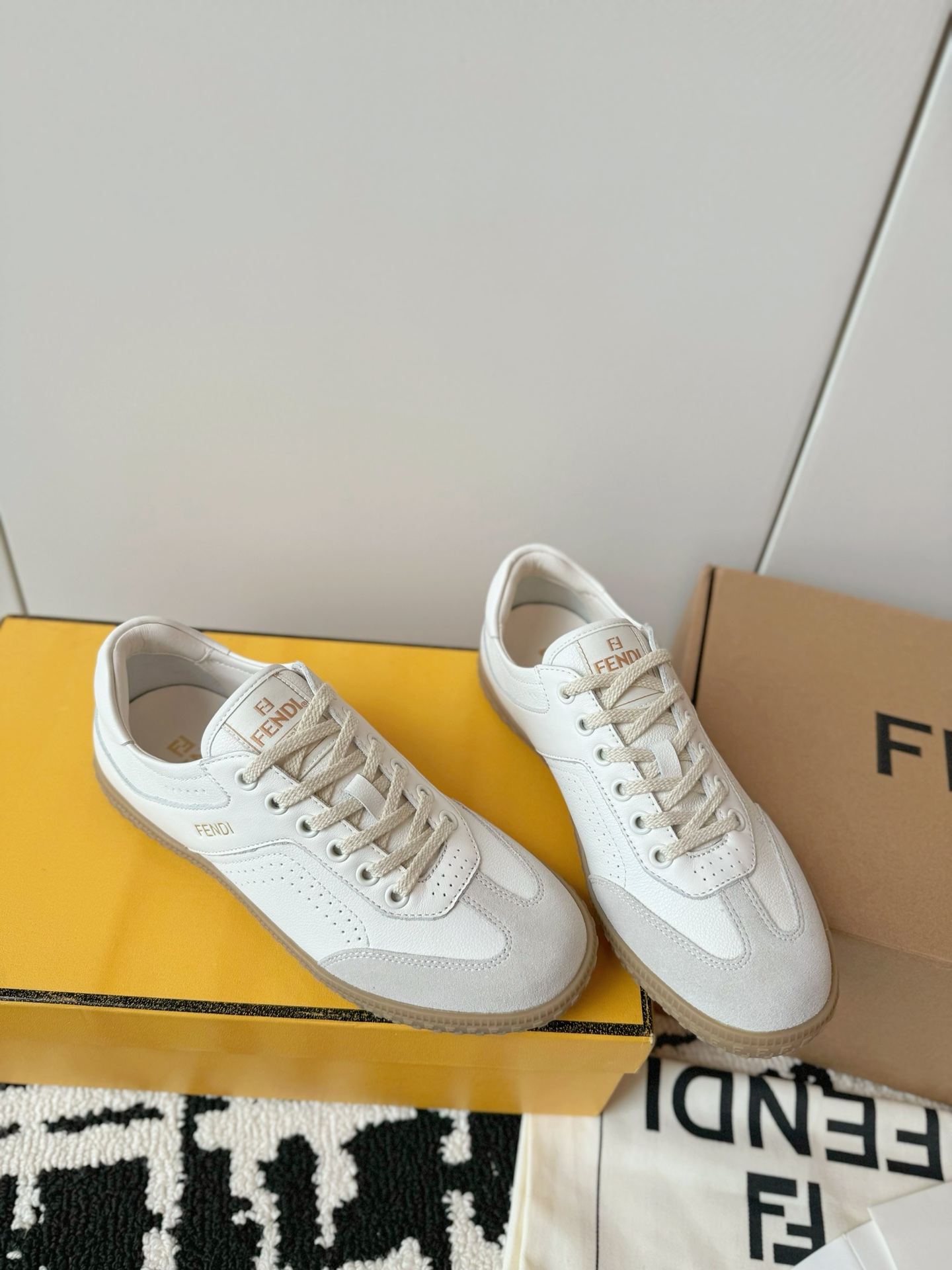 这款鞋子是AAAAA 1:1 质量 (非常棒). 使用了和原版一模一样的材料. 商标部分也保持了和芬迪/Fendi一样. 图片拍摄是实物鞋子拍摄, 您所收到的实物保证和我们图片一模一样.