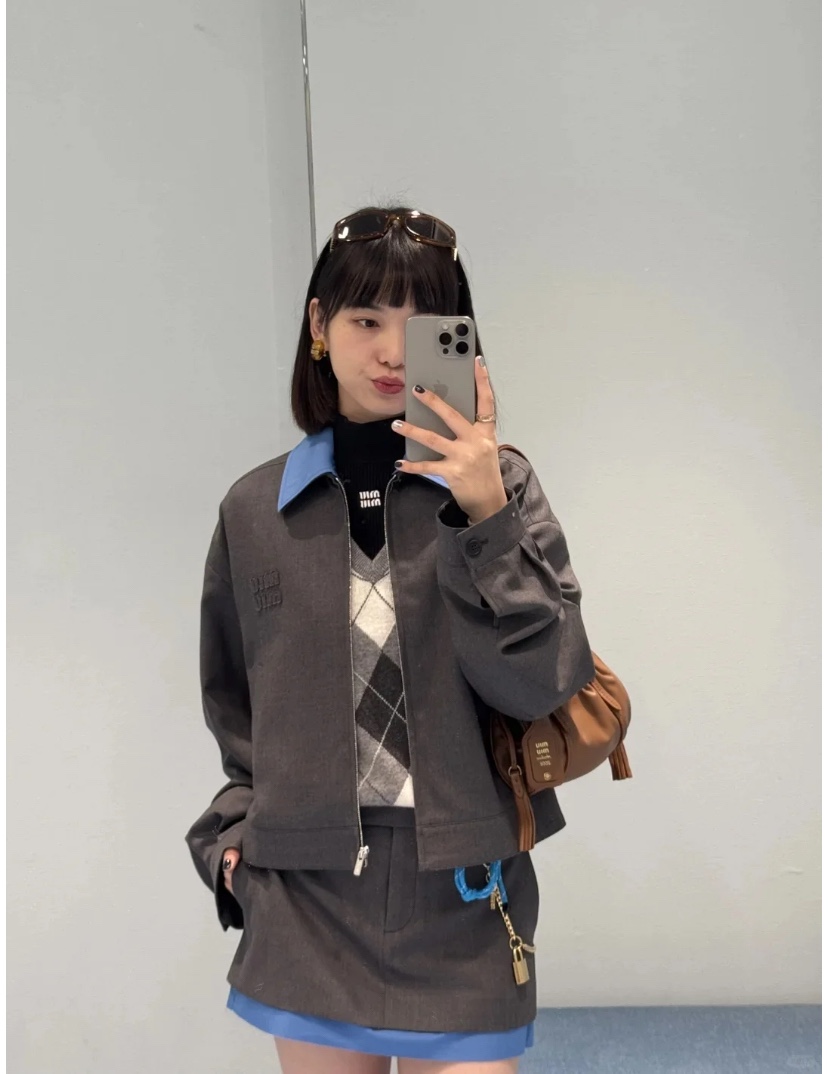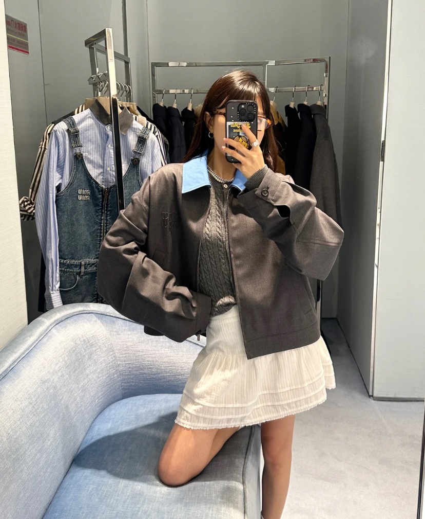这款衣服是AAAAA 1:1 质量 (非常棒). 使用了和原版一模一样的材料. 商标部分也保持了和缪缪/Miu Miu一样. 图片拍摄是实物衣服拍摄, 您所收到的实物保证和我们图片一模一样.