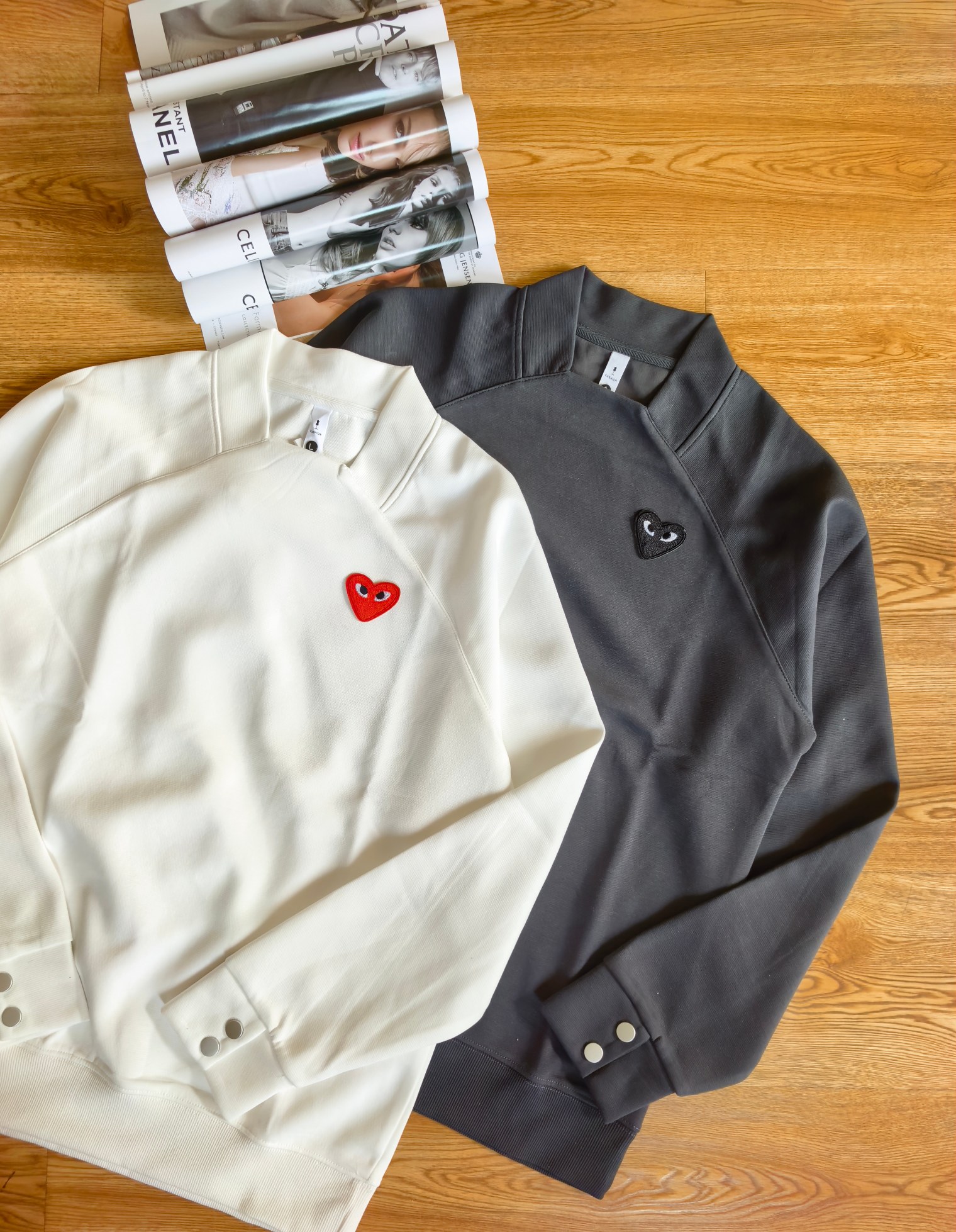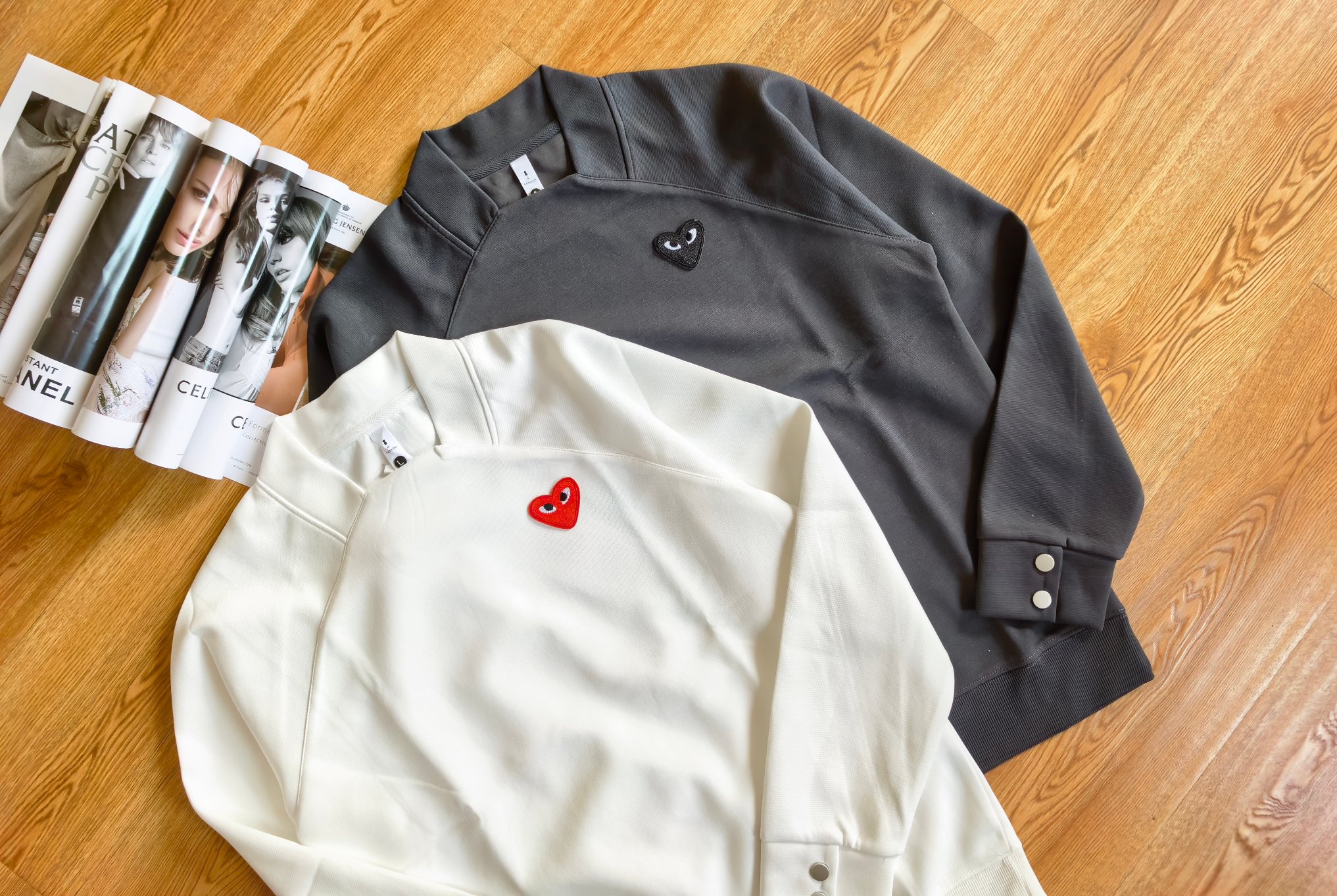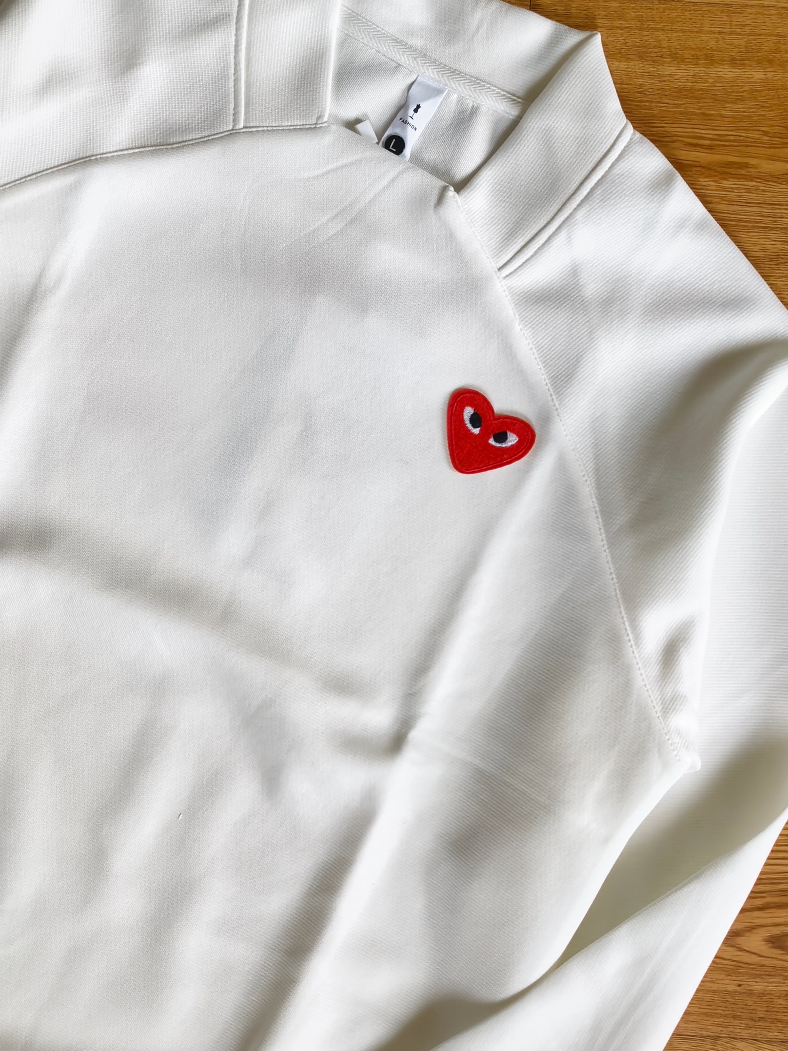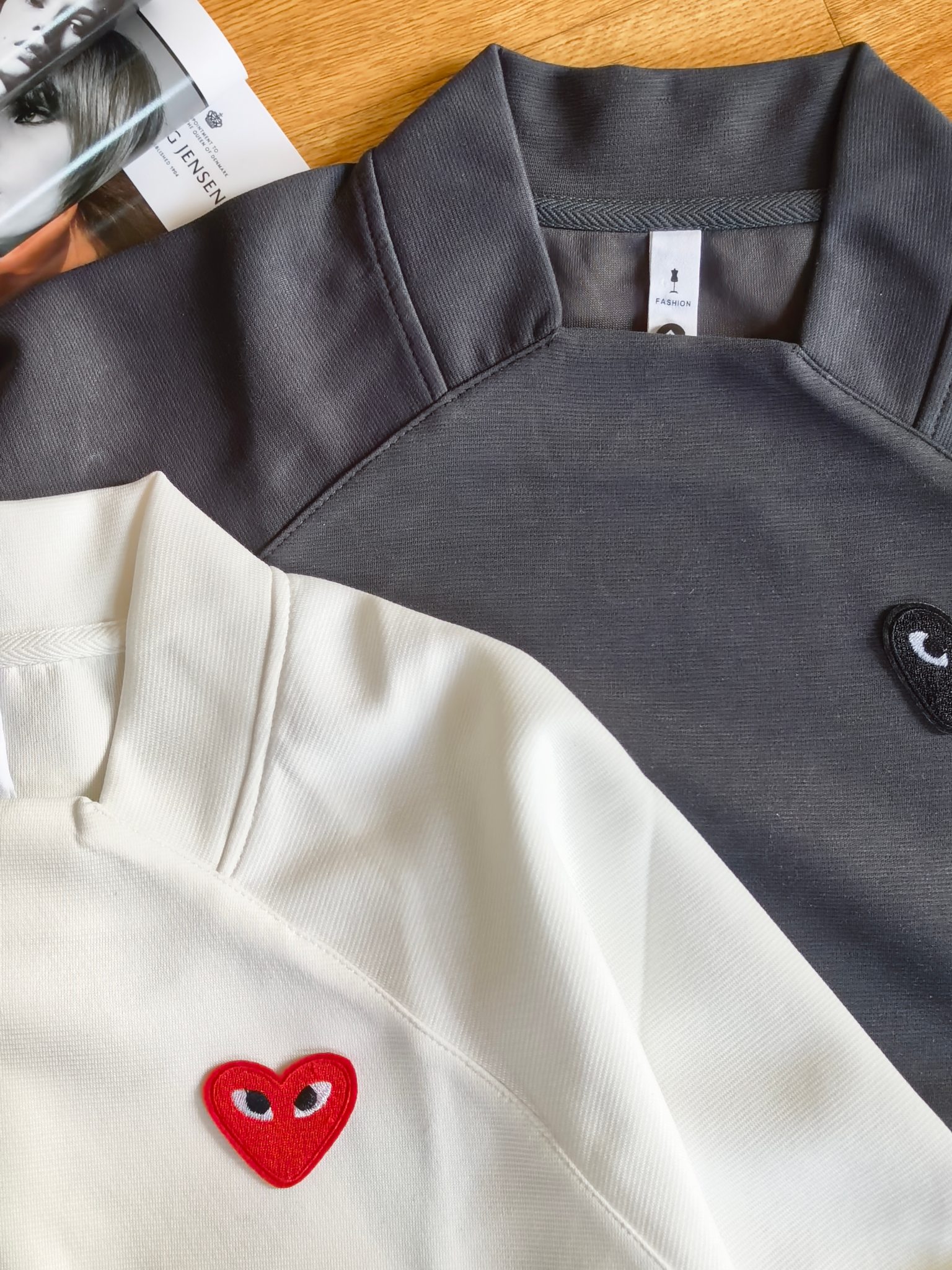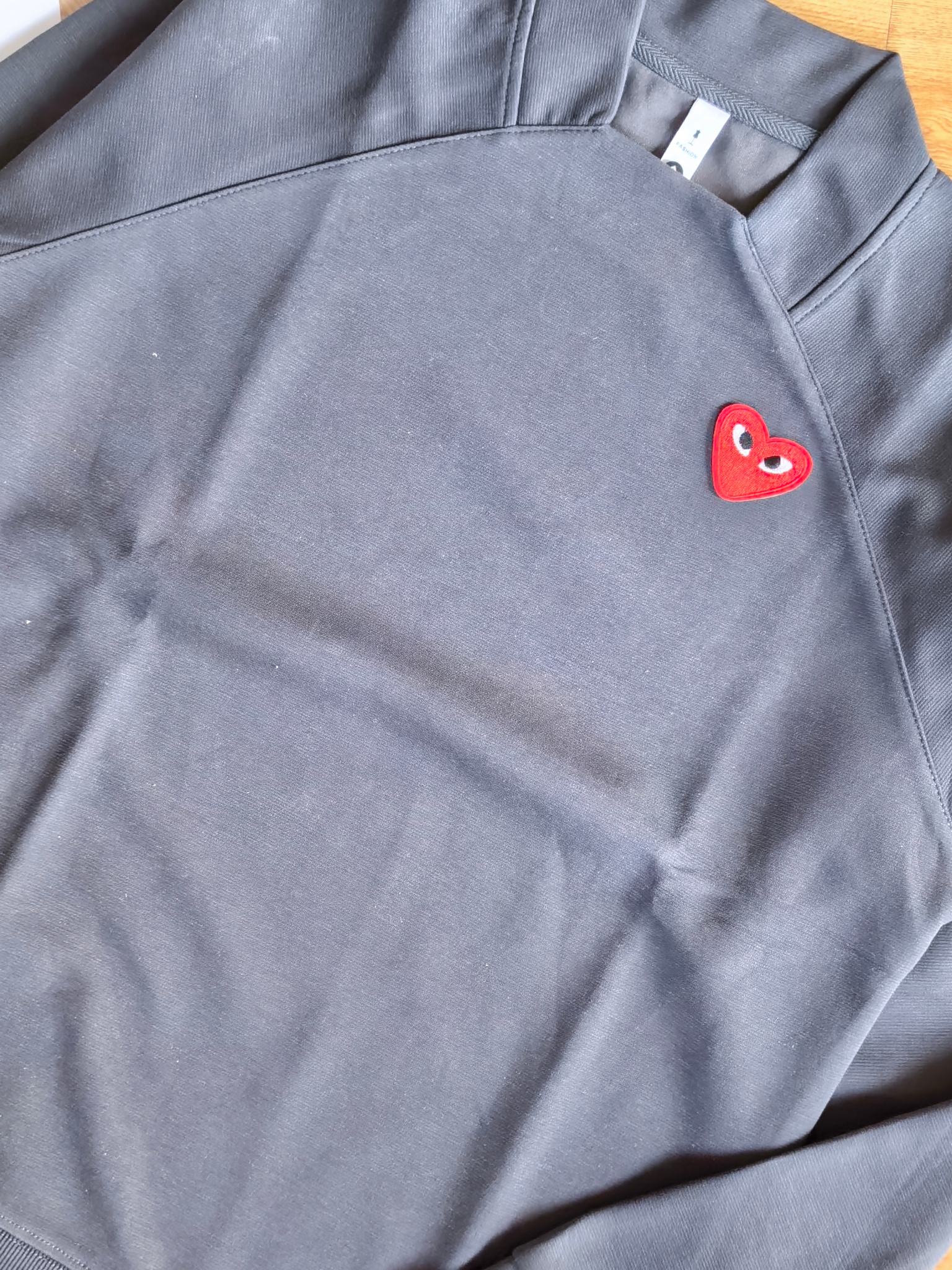 这款衣服是AAAAA 1:1 质量 (非常棒). 使用了和原版一模一样的材料. 商标部分也保持了和Comme Des Garcons一样. 图片拍摄是实物衣服拍摄, 您所收到的实物保证和我们图片一模一样.