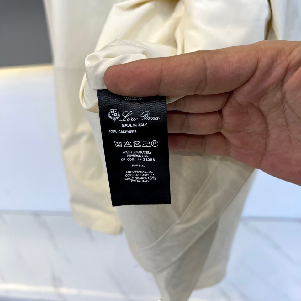 这款衣服是AAAAA 1:1 质量 (非常棒). 使用了和原版一模一样的材料. 商标部分也保持了和洛罗皮亚纳/Loro Piana一样. 图片拍摄是实物衣服拍摄, 您所收到的实物保证和我们图片一模一样.