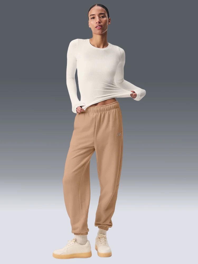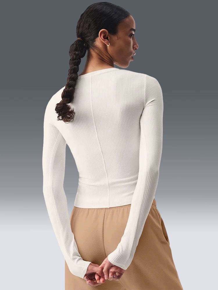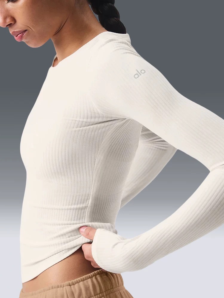 这款衣服是AAAAA 1:1 质量 (非常棒). 使用了和原版一模一样的材料. 商标部分也保持了和Alo Yoga一样. 图片拍摄是实物衣服拍摄, 您所收到的实物保证和我们图片一模一样.