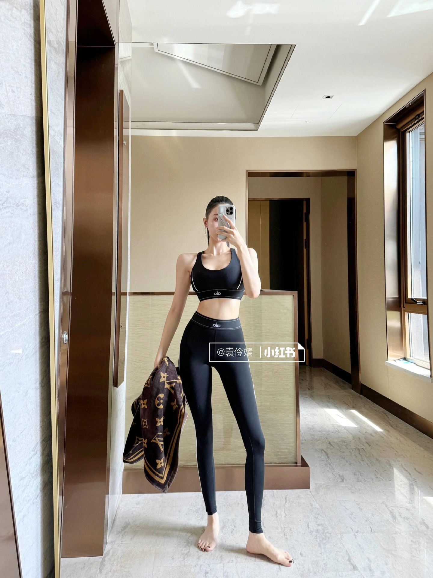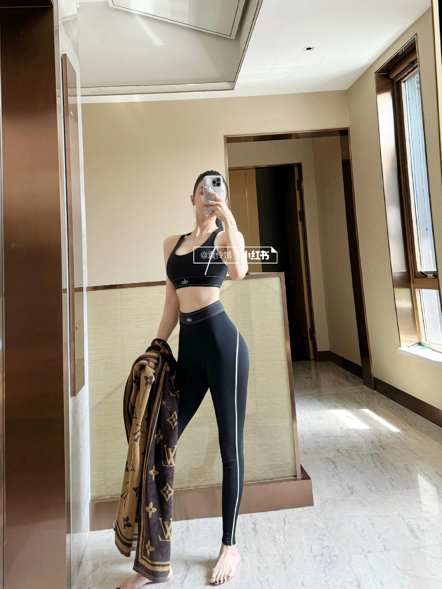 这款衣服是AAAAA 1:1 质量 (非常棒). 使用了和原版一模一样的材料. 商标部分也保持了和Alo Yoga一样. 图片拍摄是实物衣服拍摄, 您所收到的实物保证和我们图片一模一样.