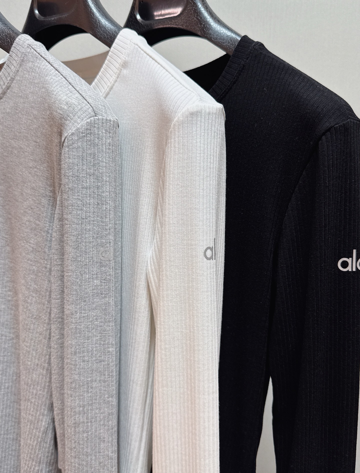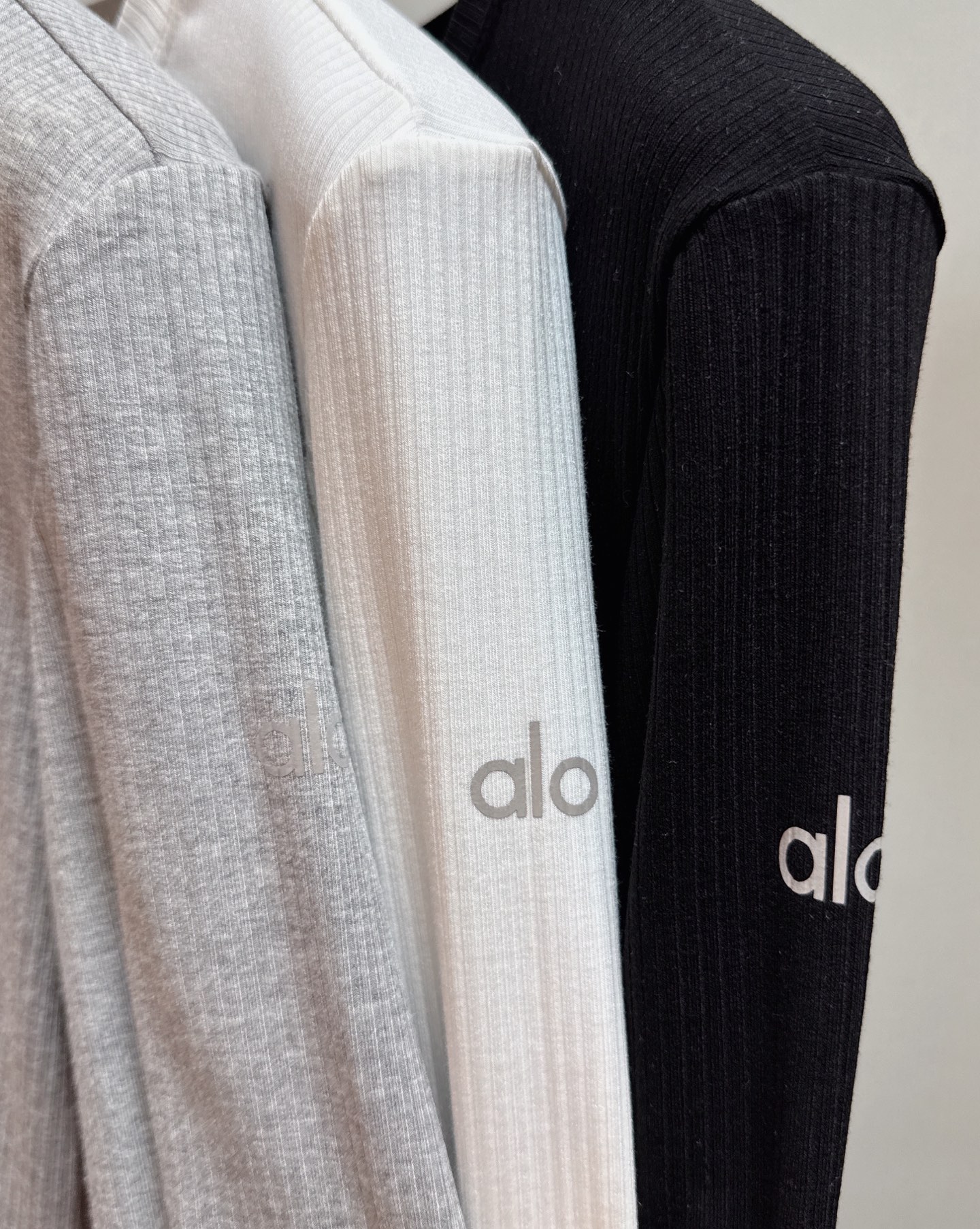 这款衣服是AAAAA 1:1 质量 (非常棒). 使用了和原版一模一样的材料. 商标部分也保持了和Alo Yoga一样. 图片拍摄是实物衣服拍摄, 您所收到的实物保证和我们图片一模一样.