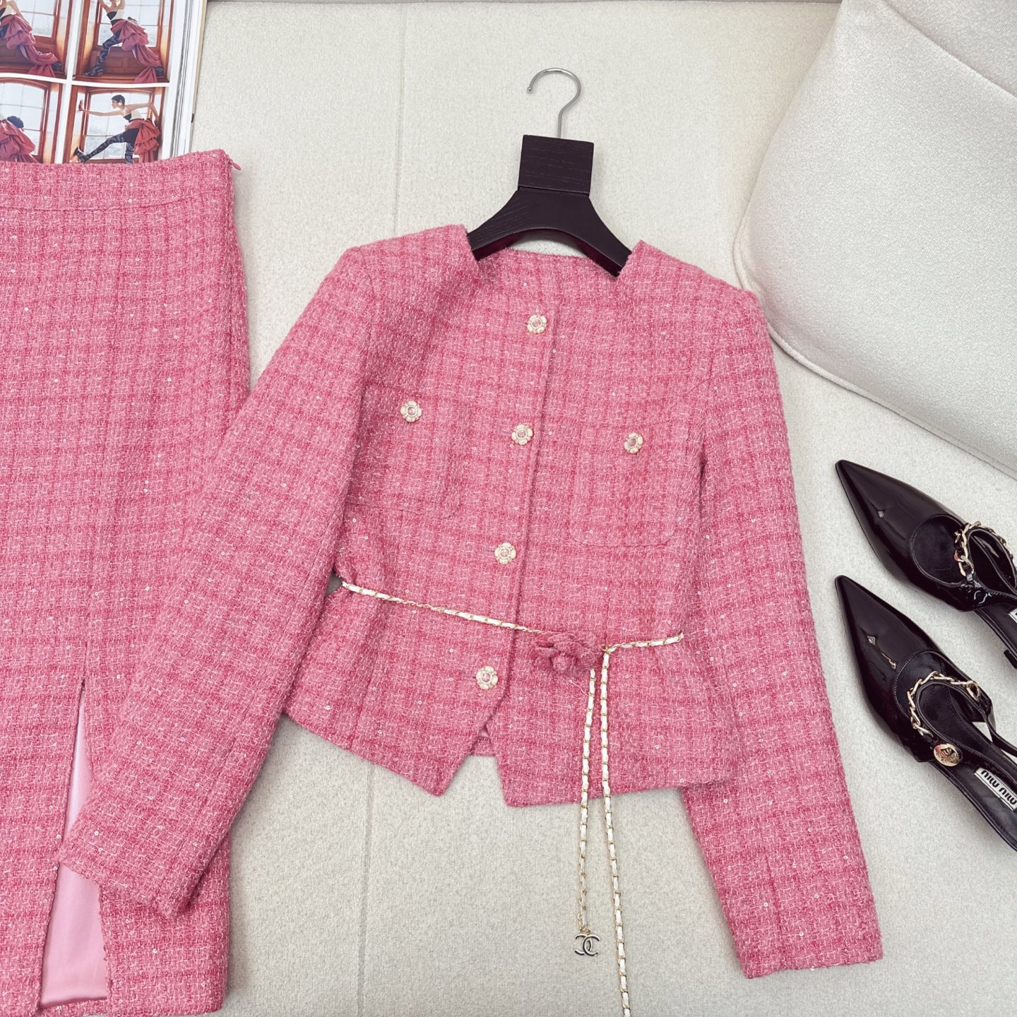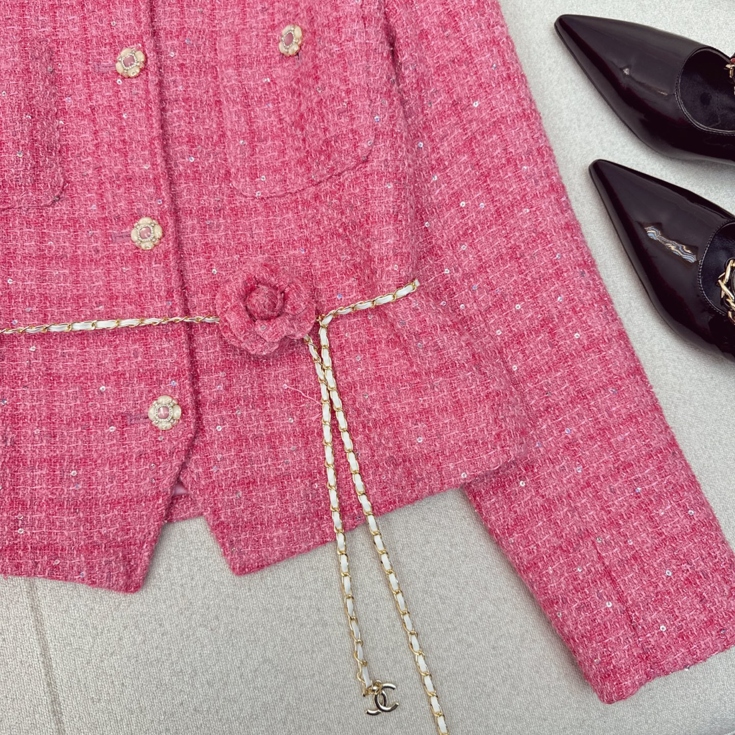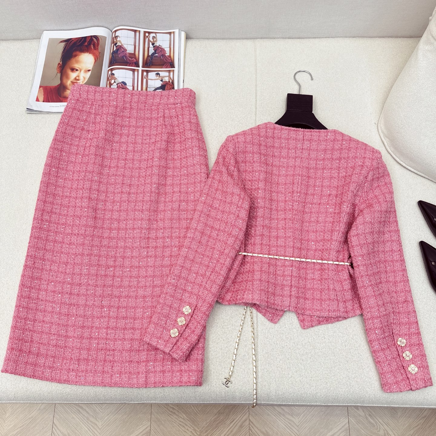 这款衣服是AAAAA 1:1 质量 (非常棒). 使用了和原版一模一样的材料. 商标部分也保持了和香奈儿/Chanel一样. 图片拍摄是实物衣服拍摄, 您所收到的实物保证和我们图片一模一样.