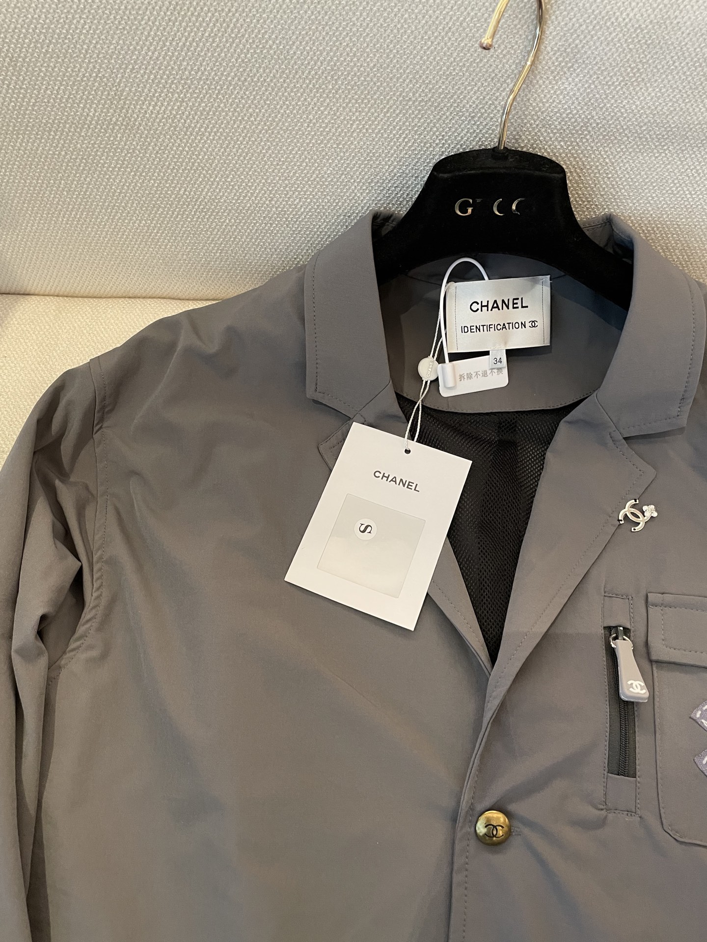 这款衣服是AAAAA 1:1 质量 (非常棒). 使用了和原版一模一样的材料. 商标部分也保持了和香奈儿/Chanel一样. 图片拍摄是实物衣服拍摄, 您所收到的实物保证和我们图片一模一样.