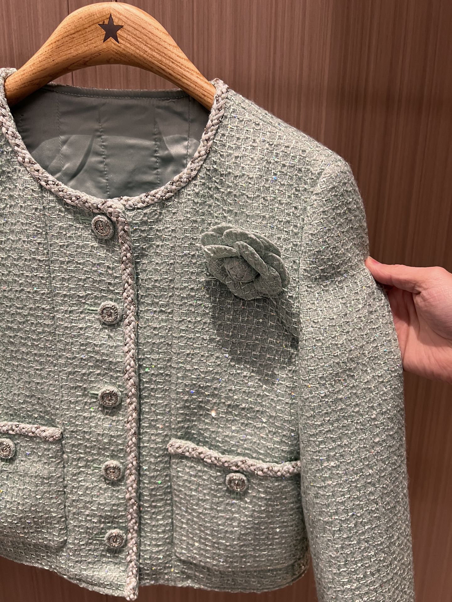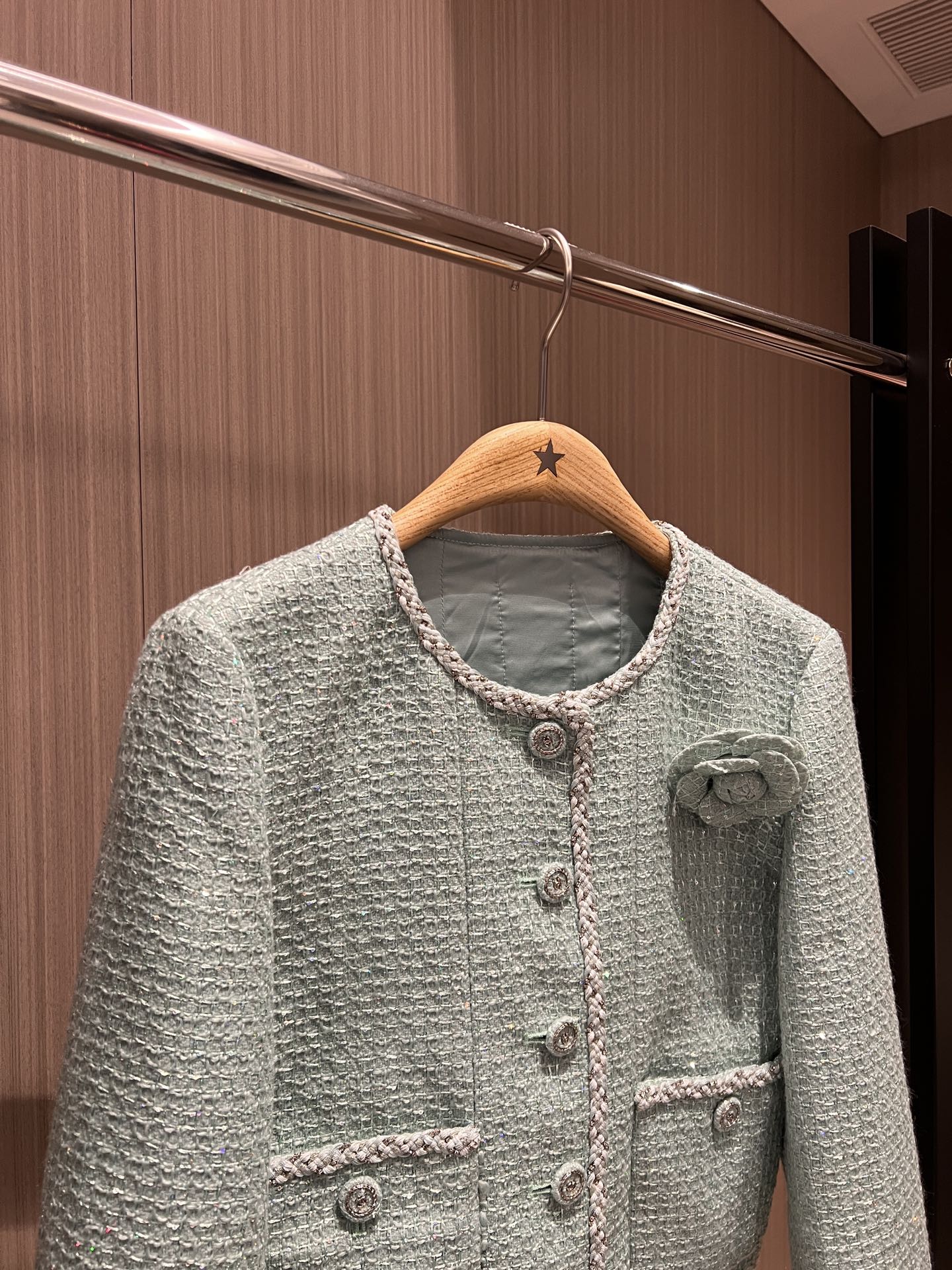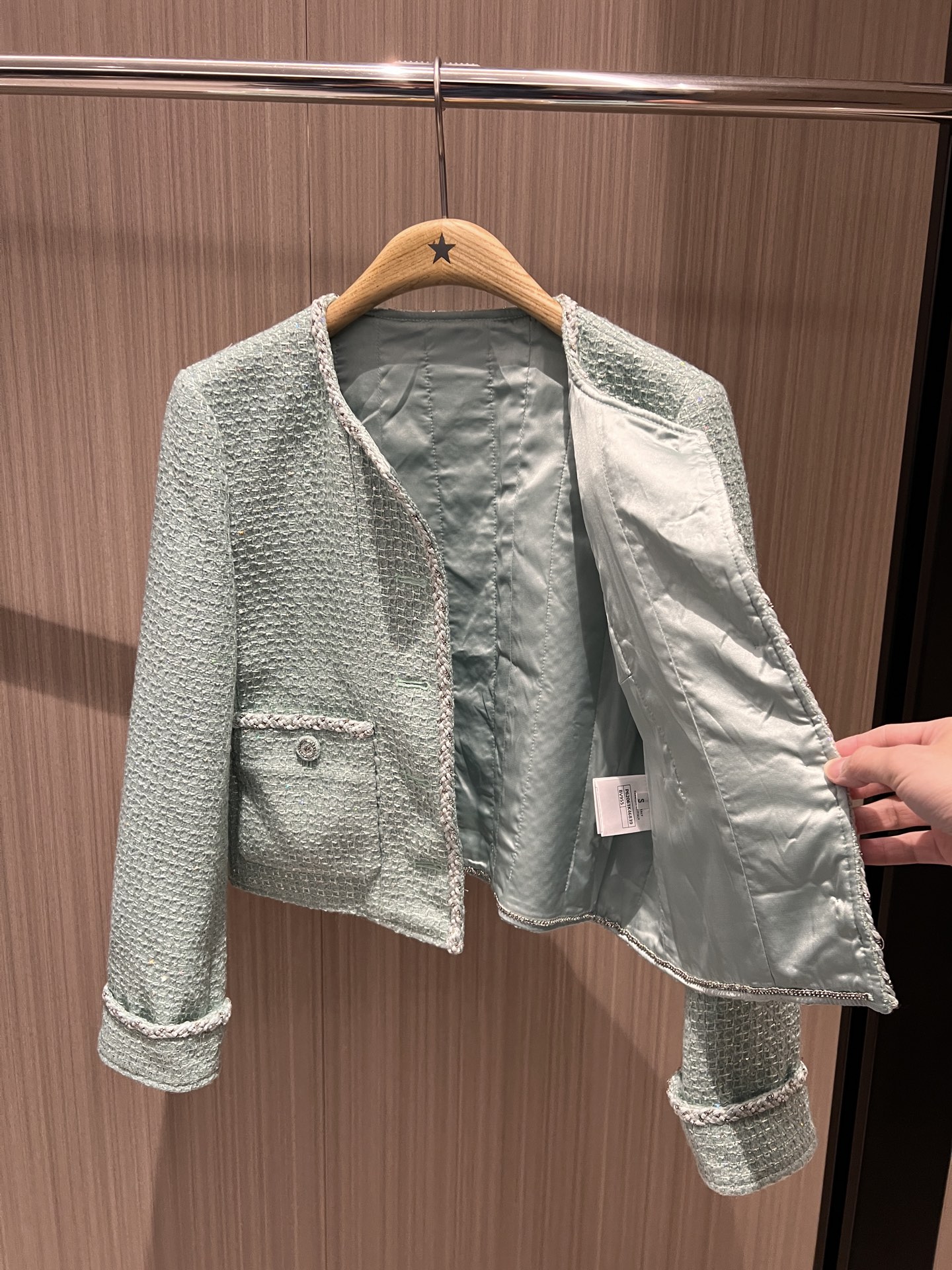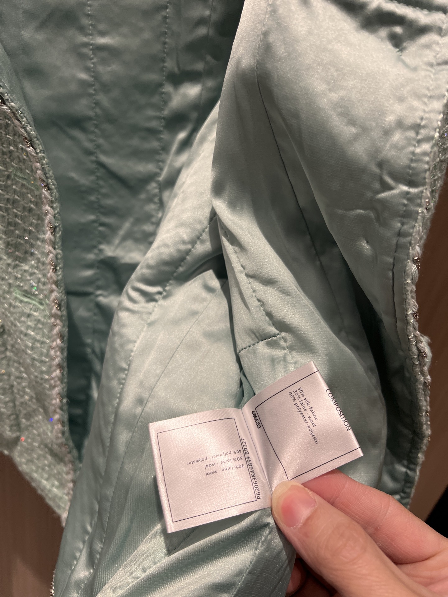 这款衣服是AAAAA 1:1 质量 (非常棒). 使用了和原版一模一样的材料. 商标部分也保持了和香奈儿/Chanel一样. 图片拍摄是实物衣服拍摄, 您所收到的实物保证和我们图片一模一样.