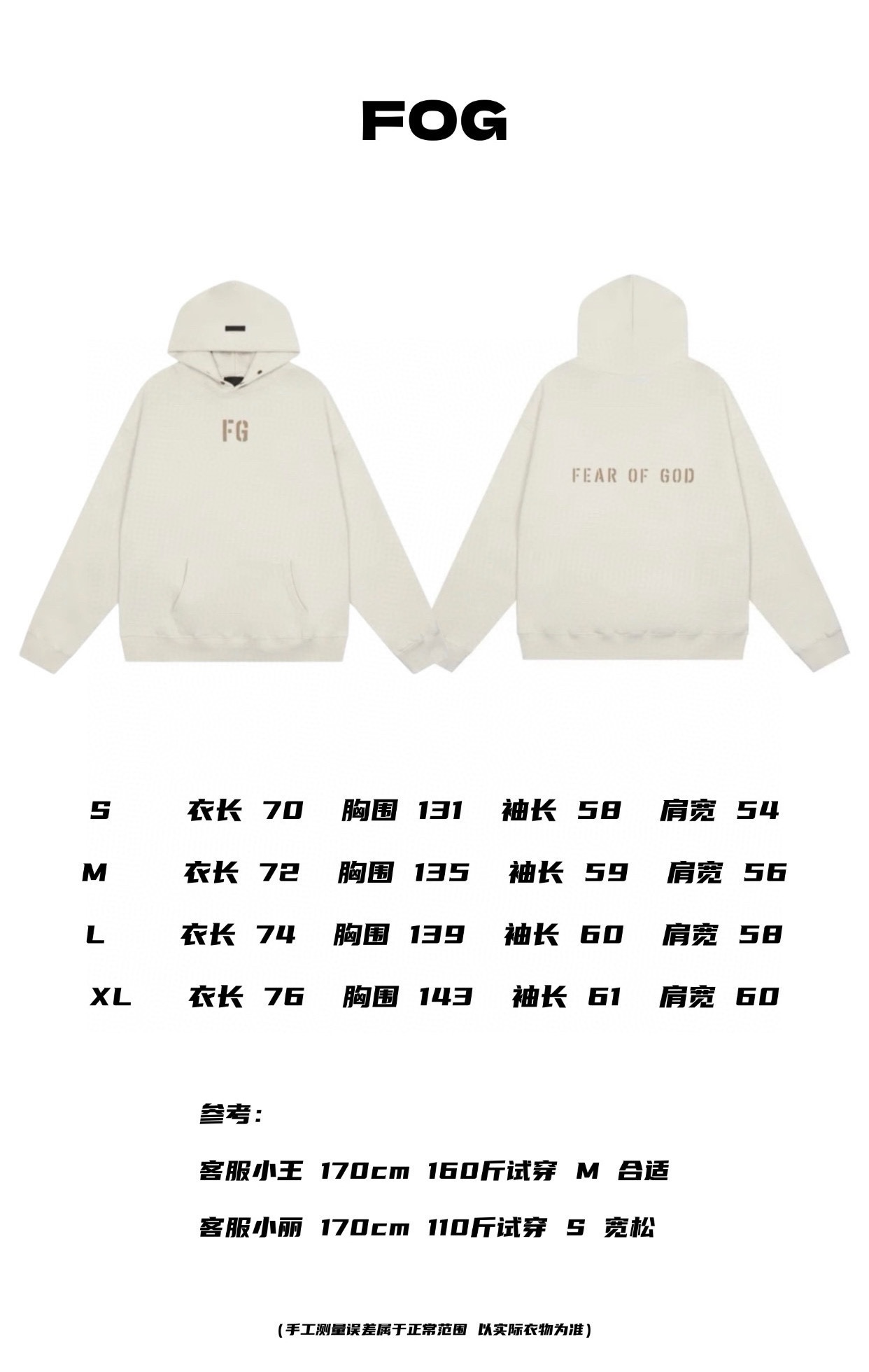 这款衣服是AAAAA 1:1 质量 (非常棒). 使用了和原版一模一样的材料. 商标部分也保持了和ESSENTIALS一样. 图片拍摄是实物衣服拍摄, 您所收到的实物保证和我们图片一模一样.