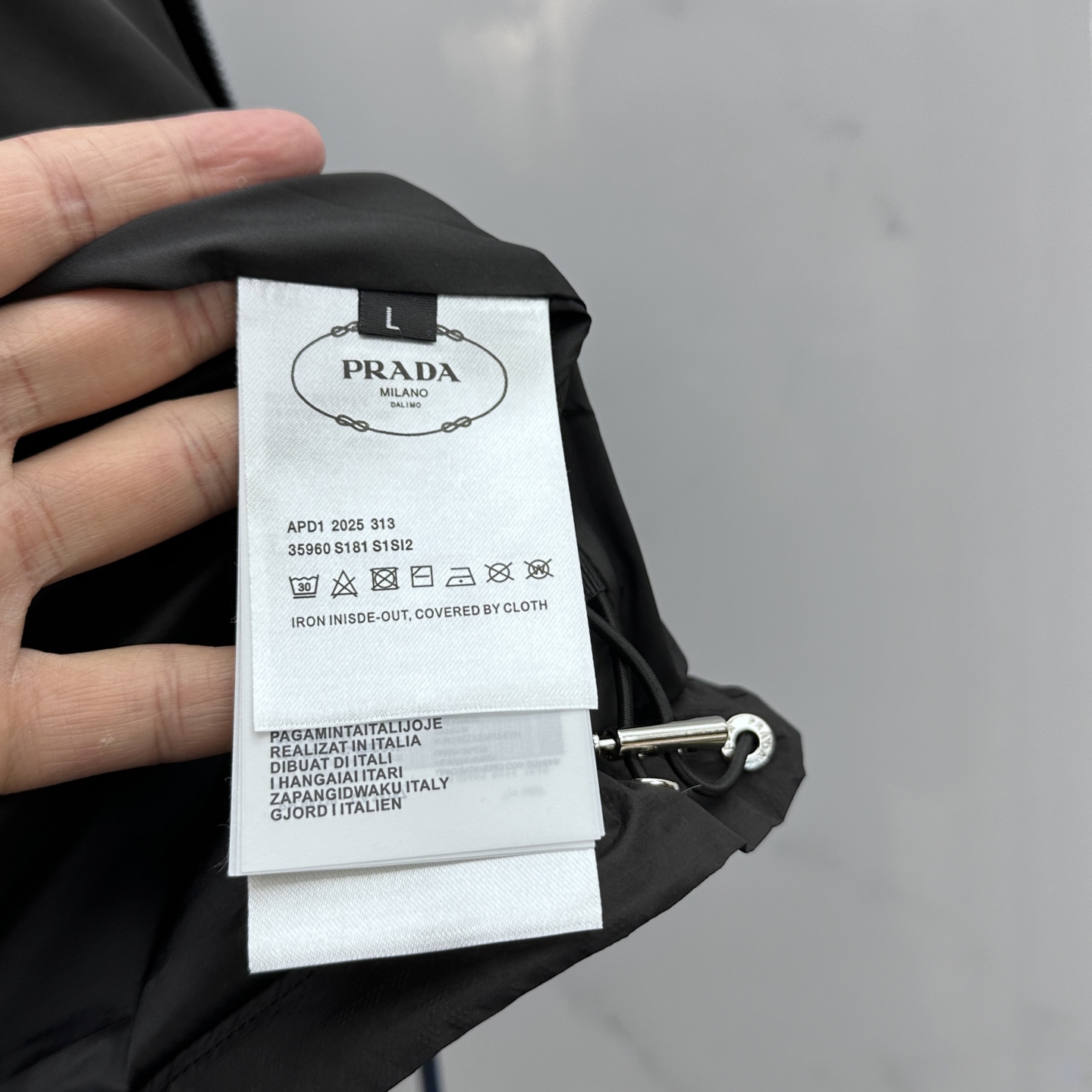 这款衣服是AAAAA 1:1 质量 (非常棒). 使用了和原版一模一样的材料. 商标部分也保持了和普拉达/Prada一样. 图片拍摄是实物衣服拍摄, 您所收到的实物保证和我们图片一模一样.