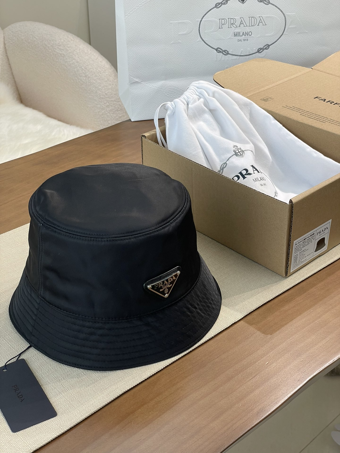这款帽子是AAAAA 1:1 质量 (非常棒). 使用了和原版一模一样的材料. 商标部分也保持了和普拉达/Prada一样. 图片拍摄是实物帽子拍摄, 您所收到的实物保证和我们图片一模一样.