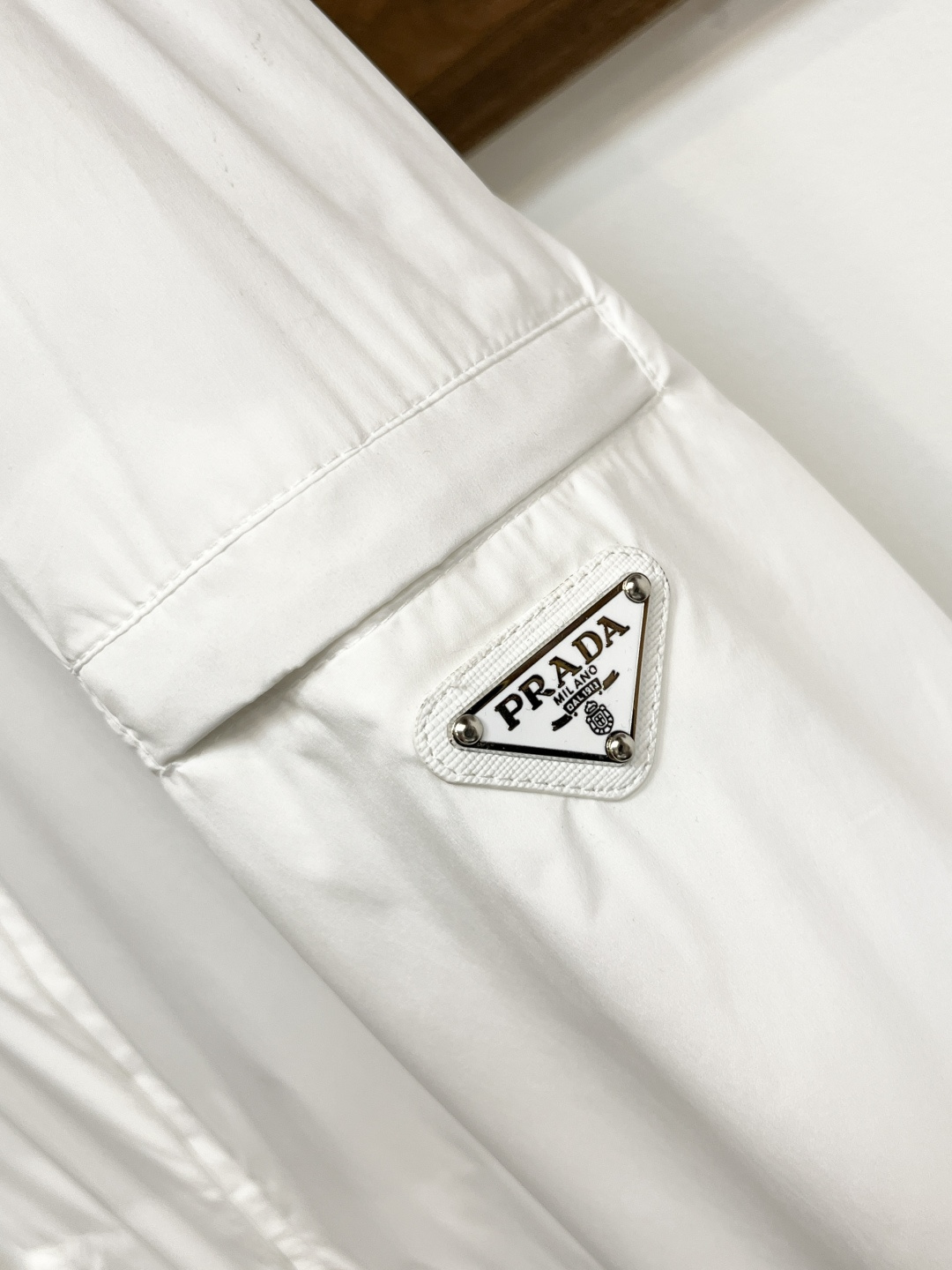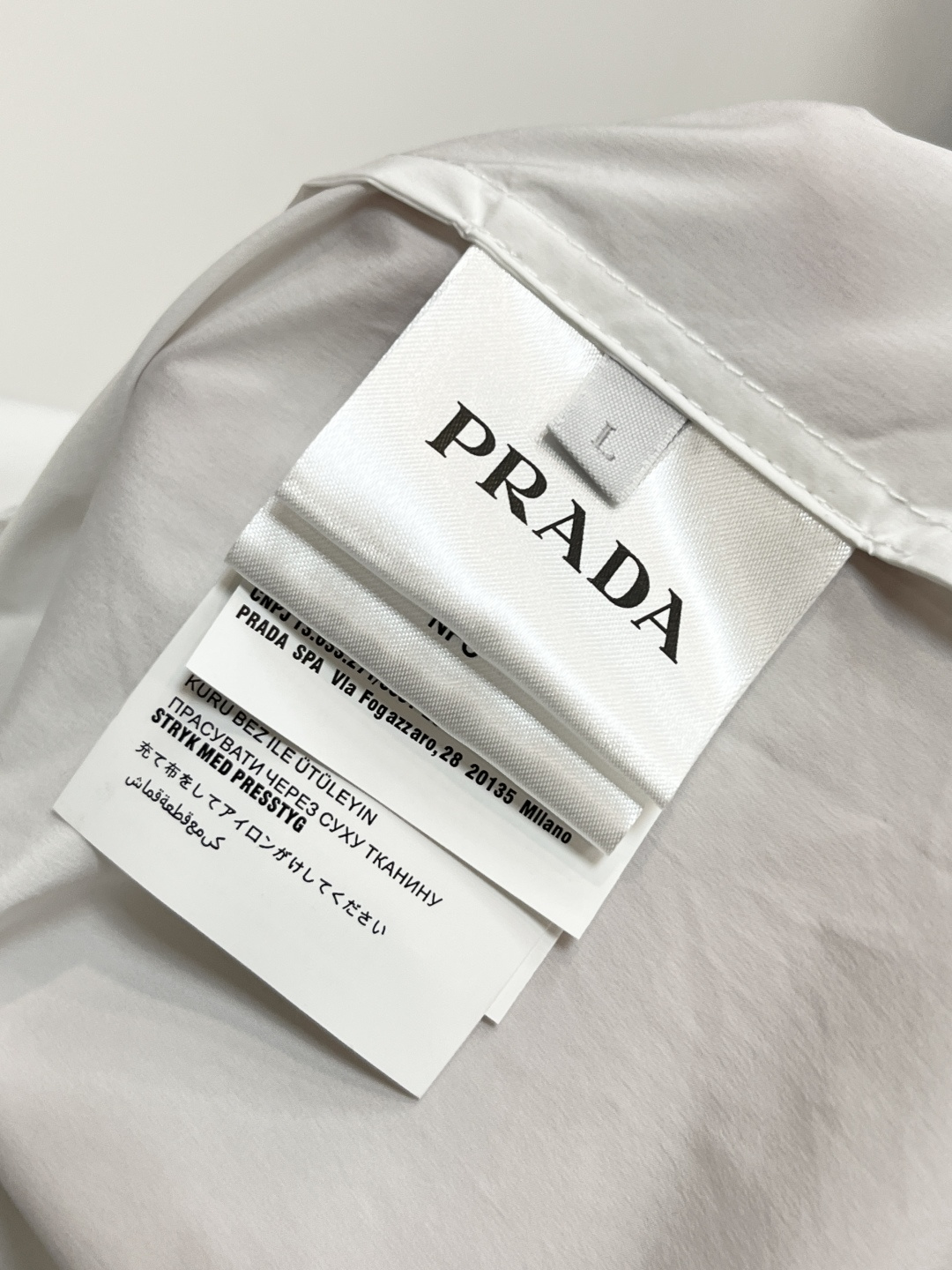 这款衣服是AAAAA 1:1 质量 (非常棒). 使用了和原版一模一样的材料. 商标部分也保持了和普拉达/Prada一样. 图片拍摄是实物衣服拍摄, 您所收到的实物保证和我们图片一模一样.